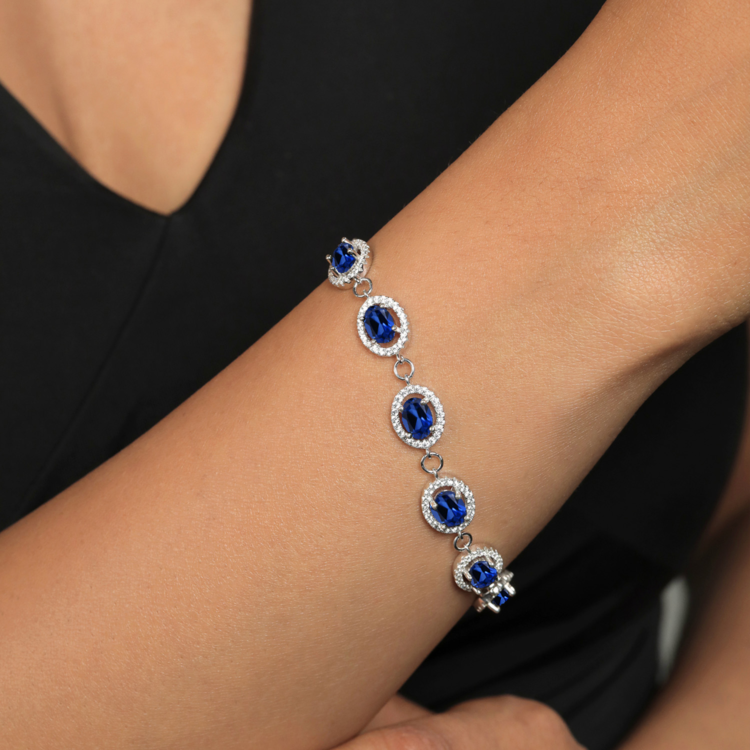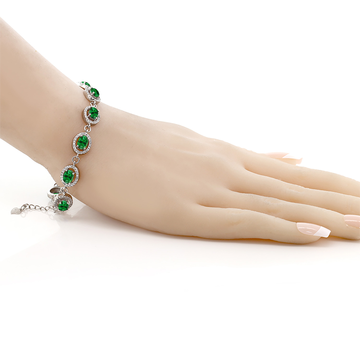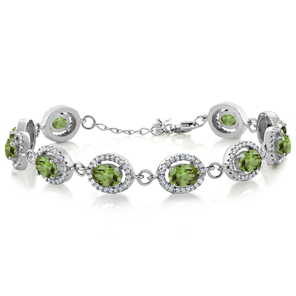 Oval Halo Statement Tennis Bracelet For Women | 925 Sterling Silver | 7X5MM Oval Gemstone Birthstone | Size 7.5 Inch | Fine Jewelry Gifts for Her Mom Women Wife