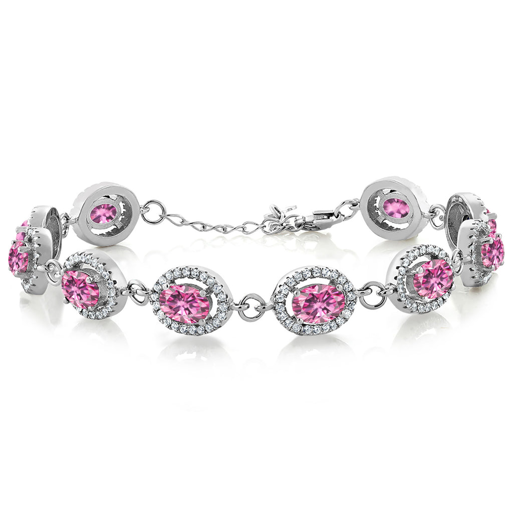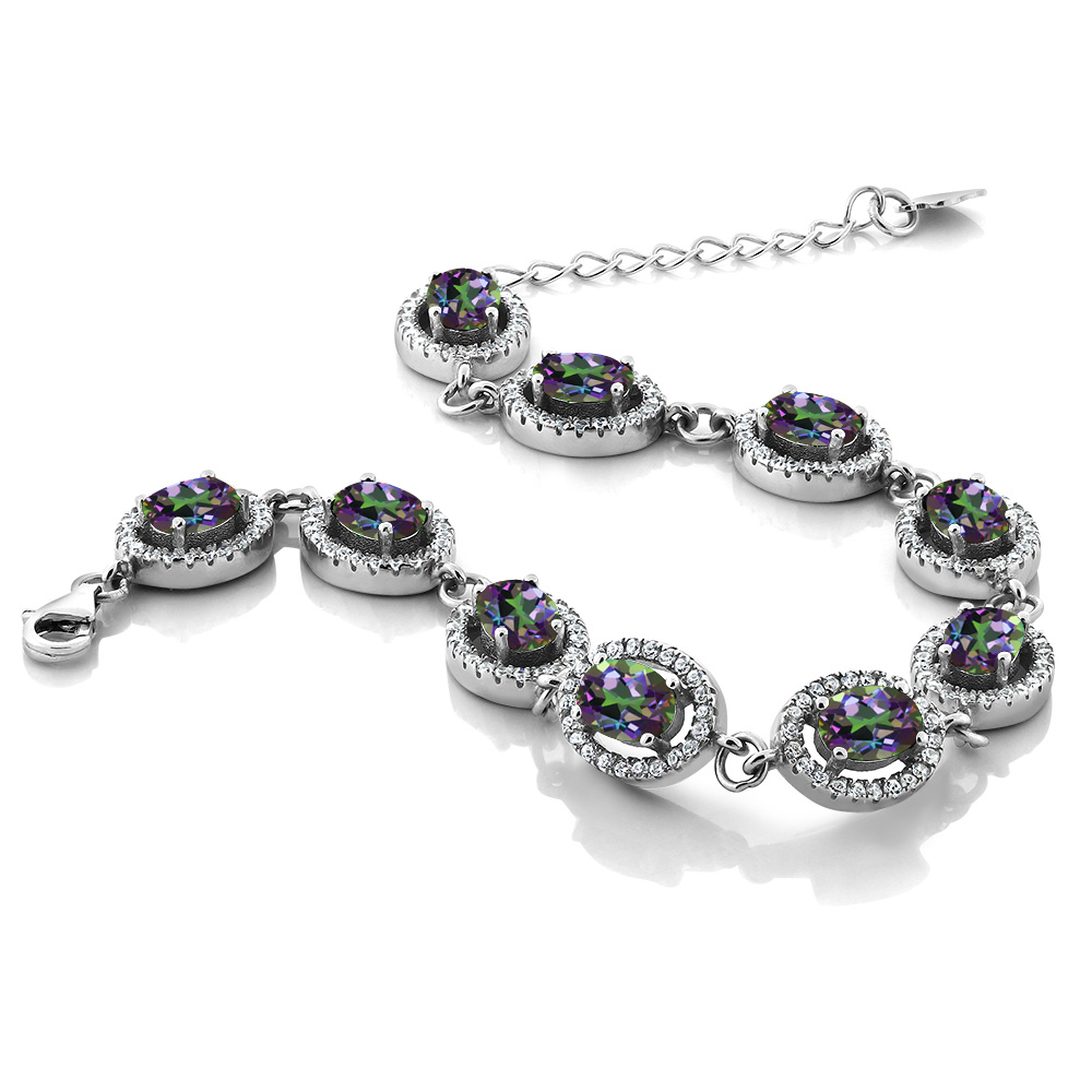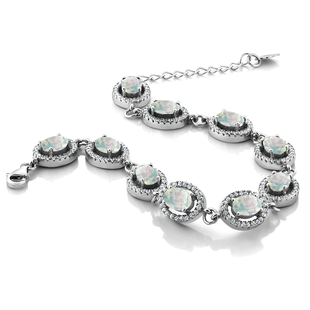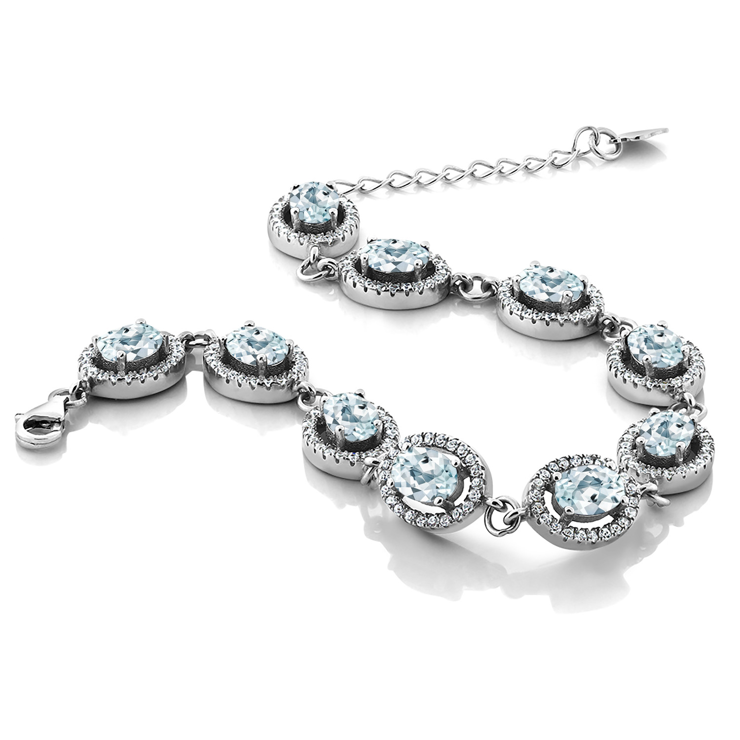Oval Halo Statement Tennis Bracelet For Women | 925 Sterling Silver | 7X5MM Oval Gemstone Birthstone | Size 7.5 Inch | Fine Jewelry Gifts for Her Mom Women Wife