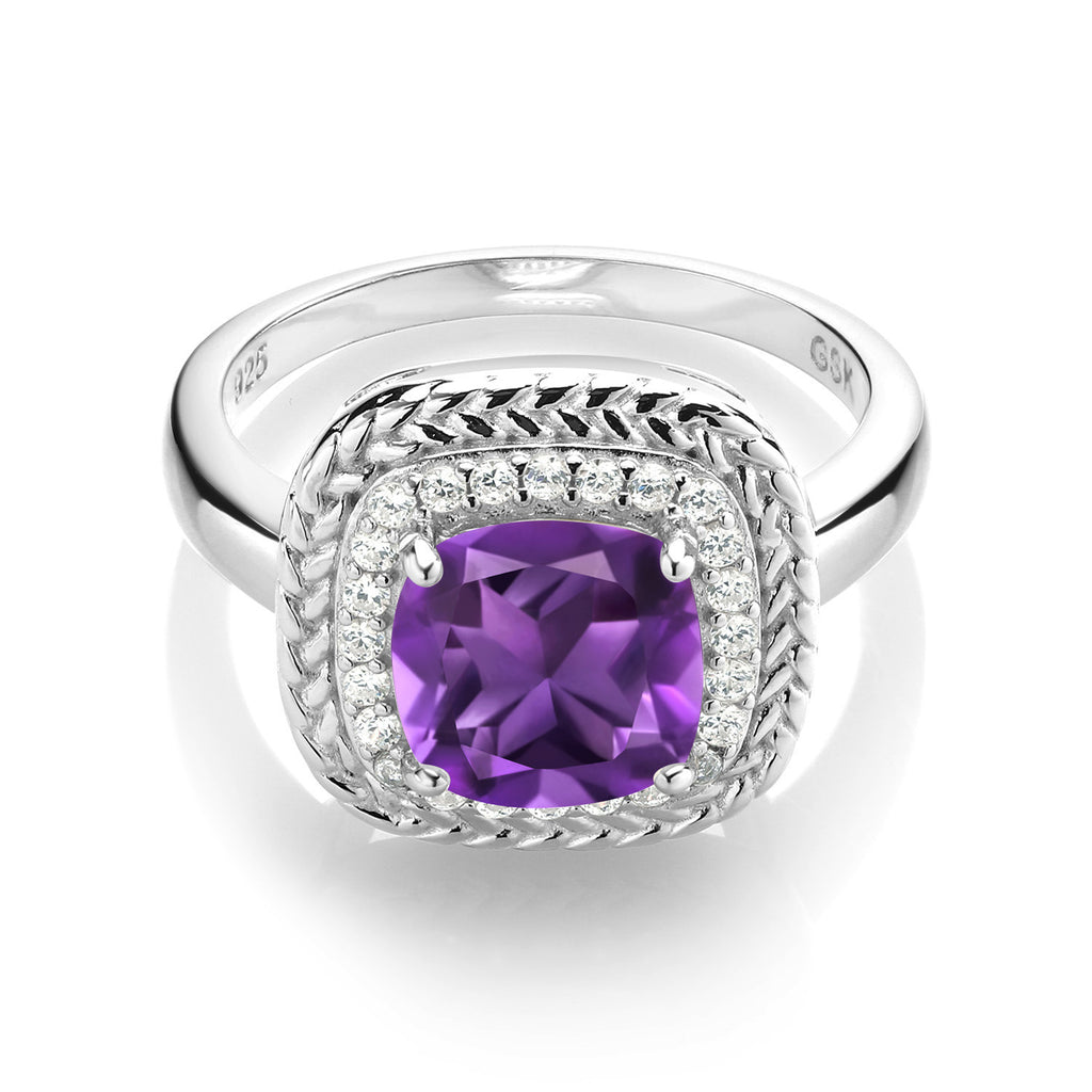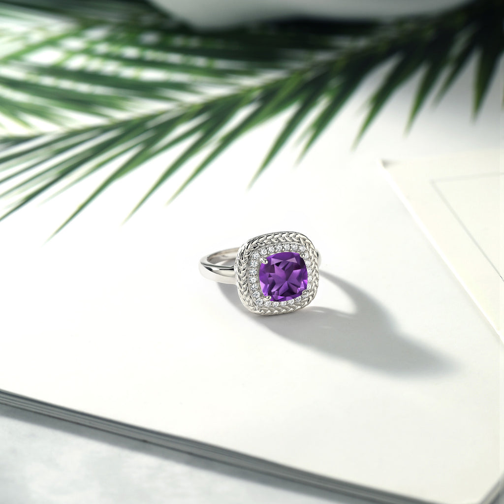 925 Sterling Silver 8MM Cushion Gemstone Birthstone Halo Engagement Ring | Wedding Engagement Anniversary Promise Ring For Women | Available In Size 5, 6, 7, 8, 9