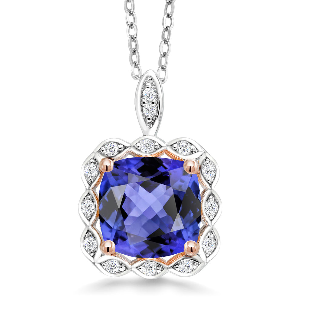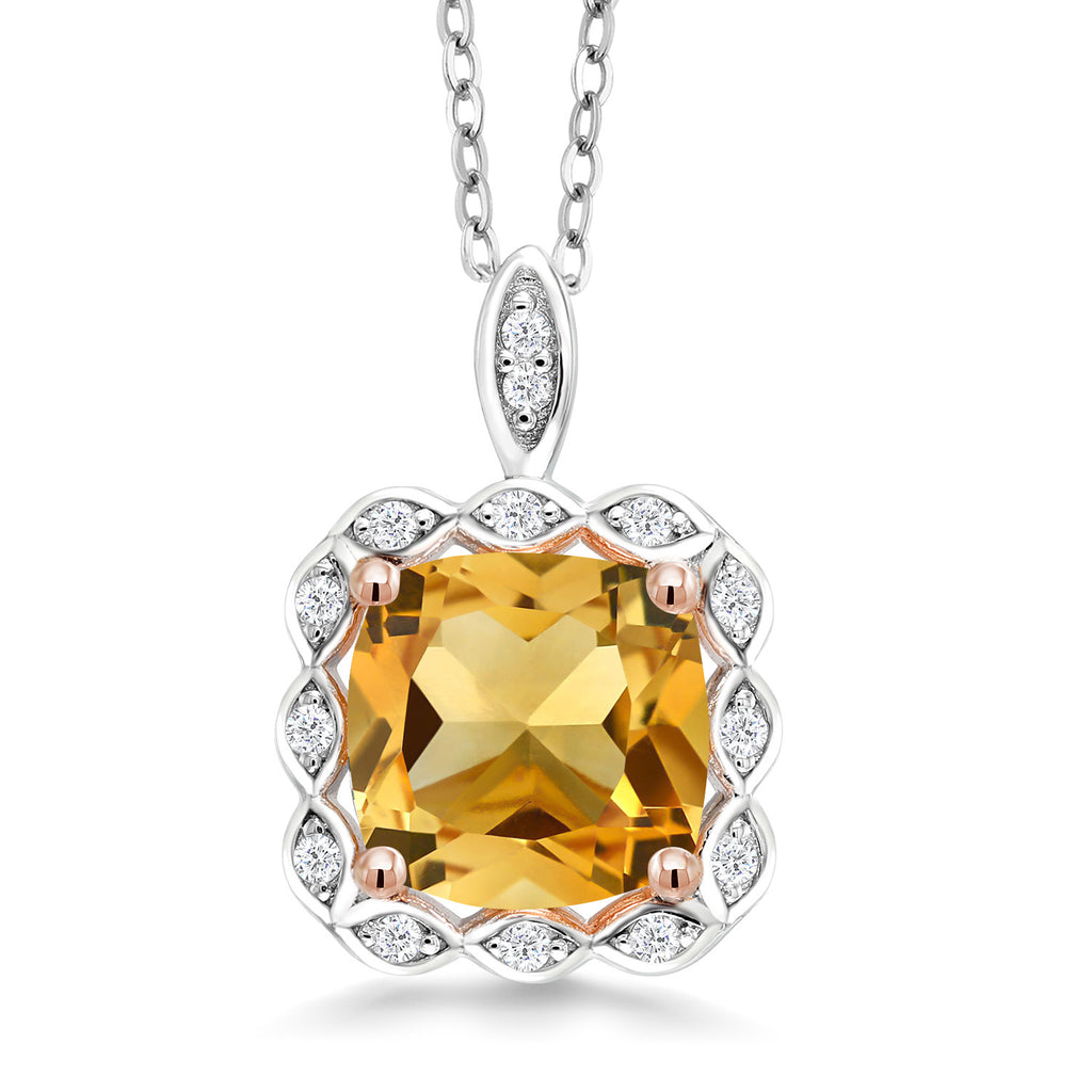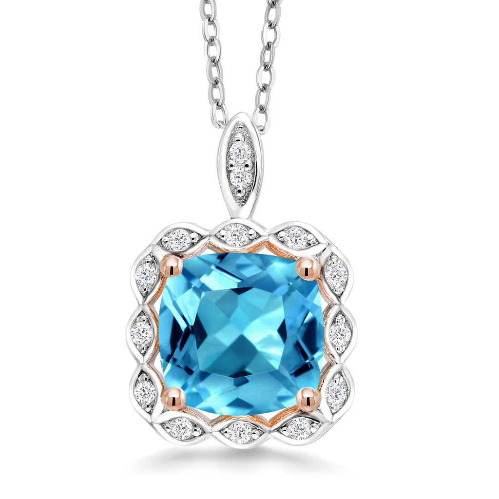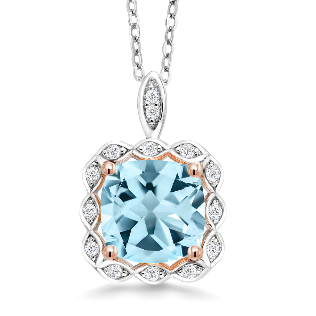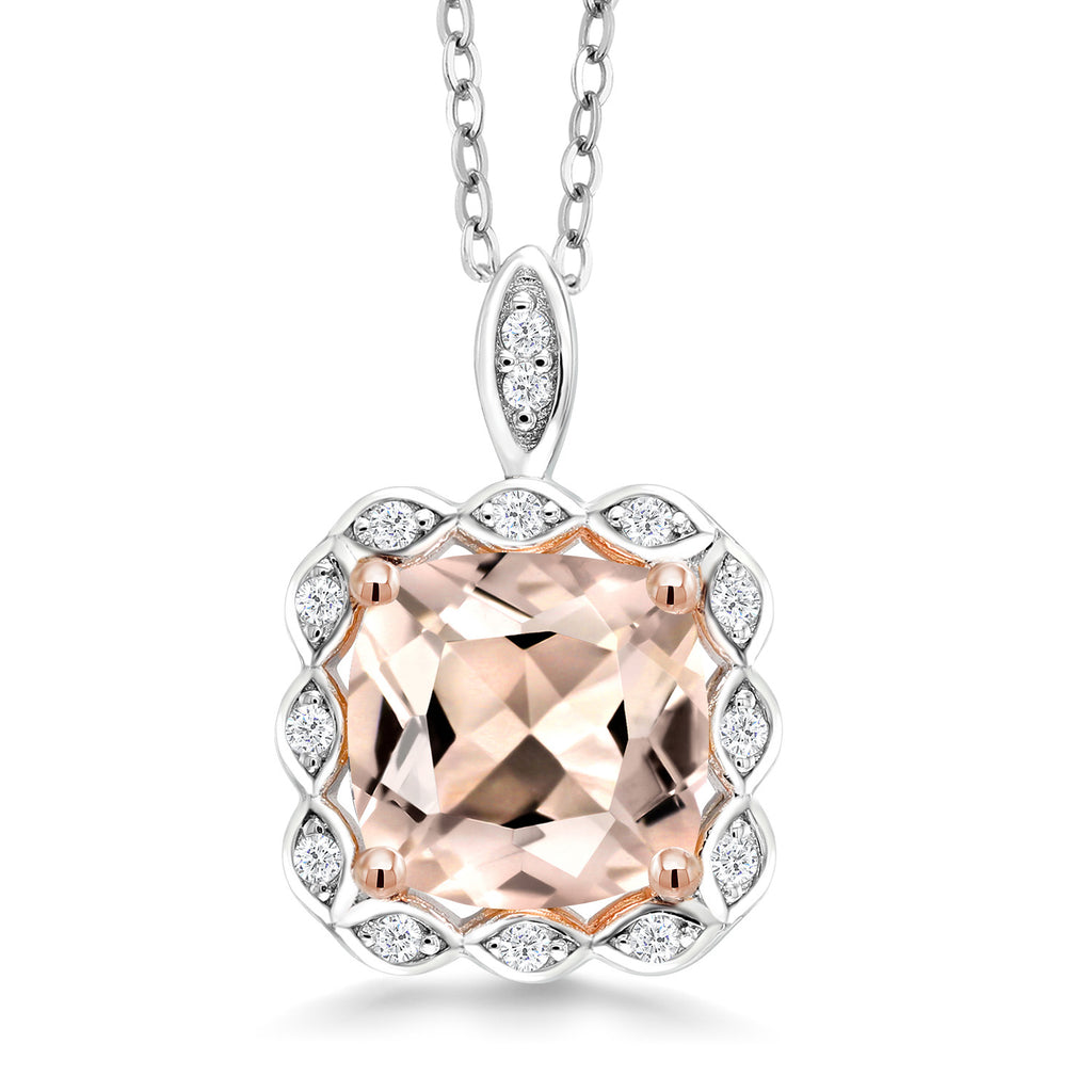 2 to 3 Cttw 8MM Cushion Cut Gemstone Birthstone Pendant Necklace For Women | 925 Sterling Silver | With 18 Inch Silver Chain | Fine Jewelry Gifts for Her Mom Women Wife