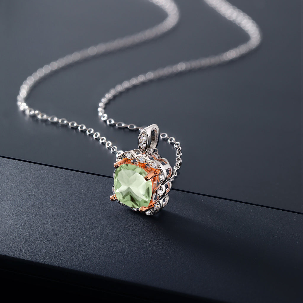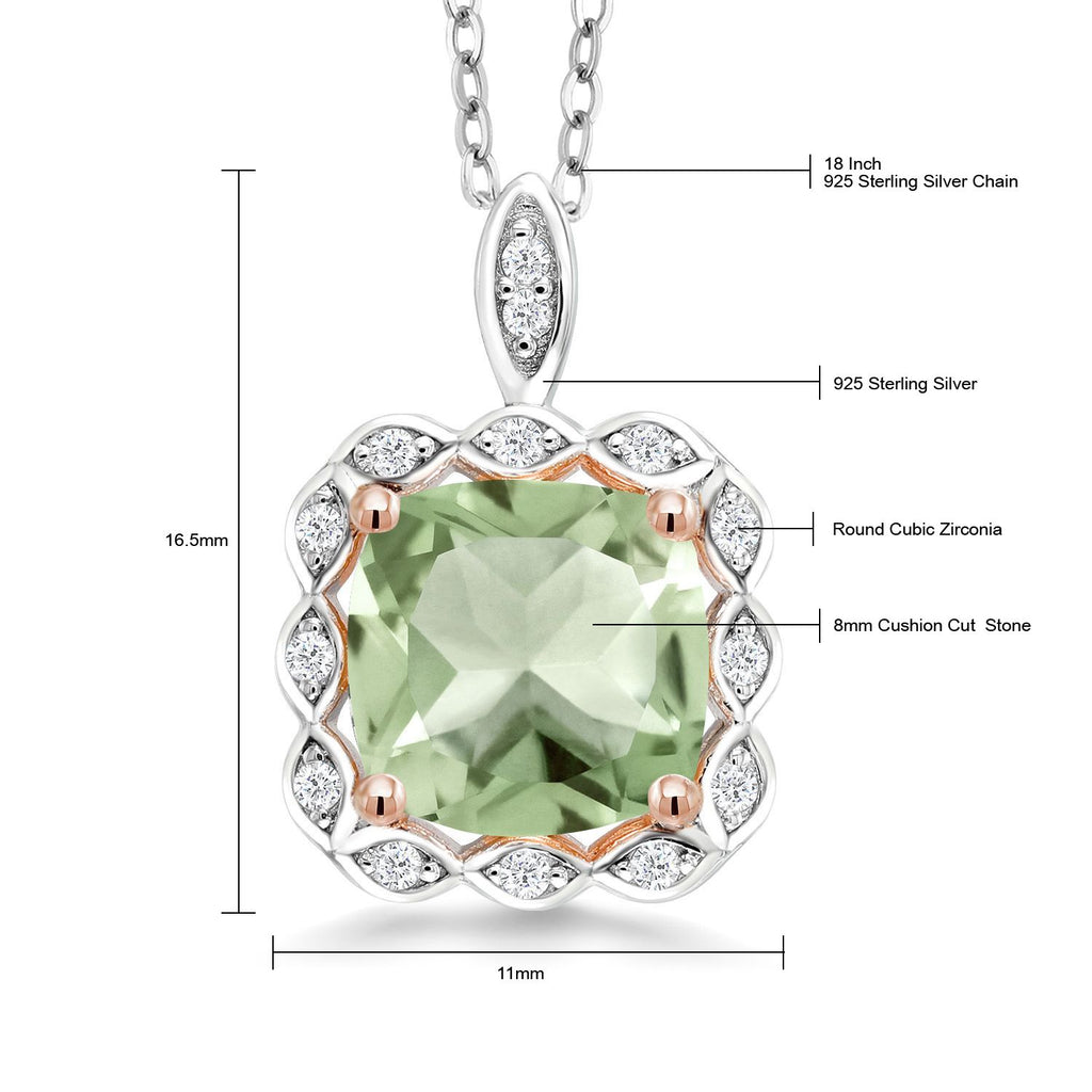 2 to 3 Cttw 8MM Cushion Cut Gemstone Birthstone Pendant Necklace For Women | 925 Sterling Silver | With 18 Inch Silver Chain | Fine Jewelry Gifts for Her Mom Women Wife