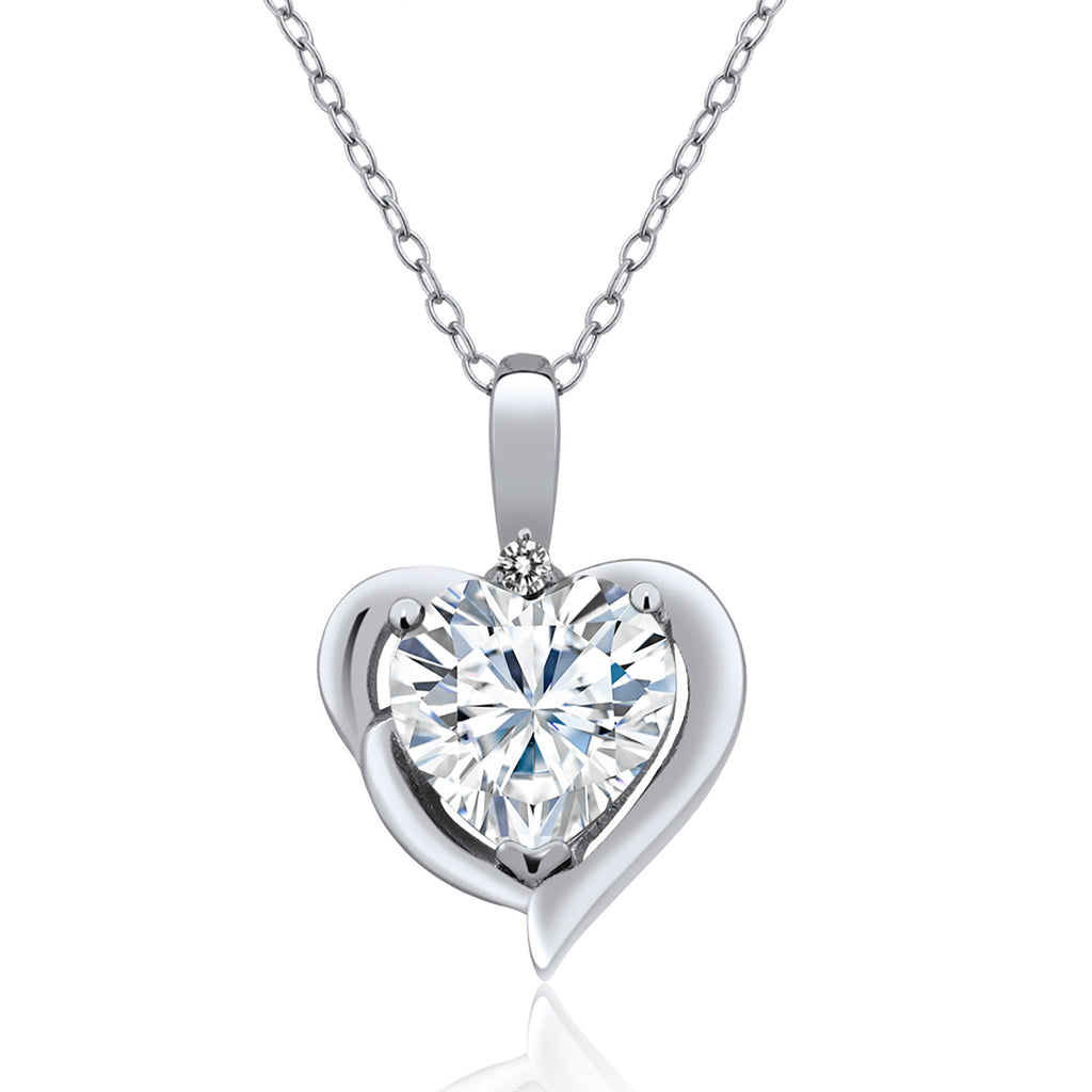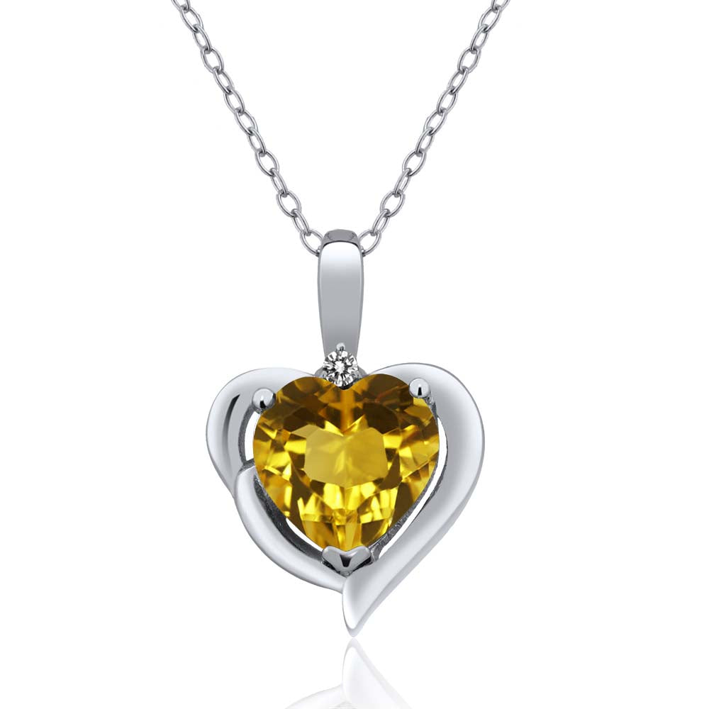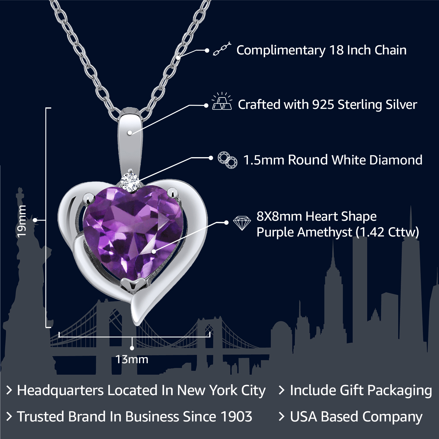 925 Sterling Silver Gemstone Birthstone and Diamond Heart Pendant Necklace For Women | 8MM Heart Shape and 1.5MM Round Accent | With 18 Inch Silver Chain