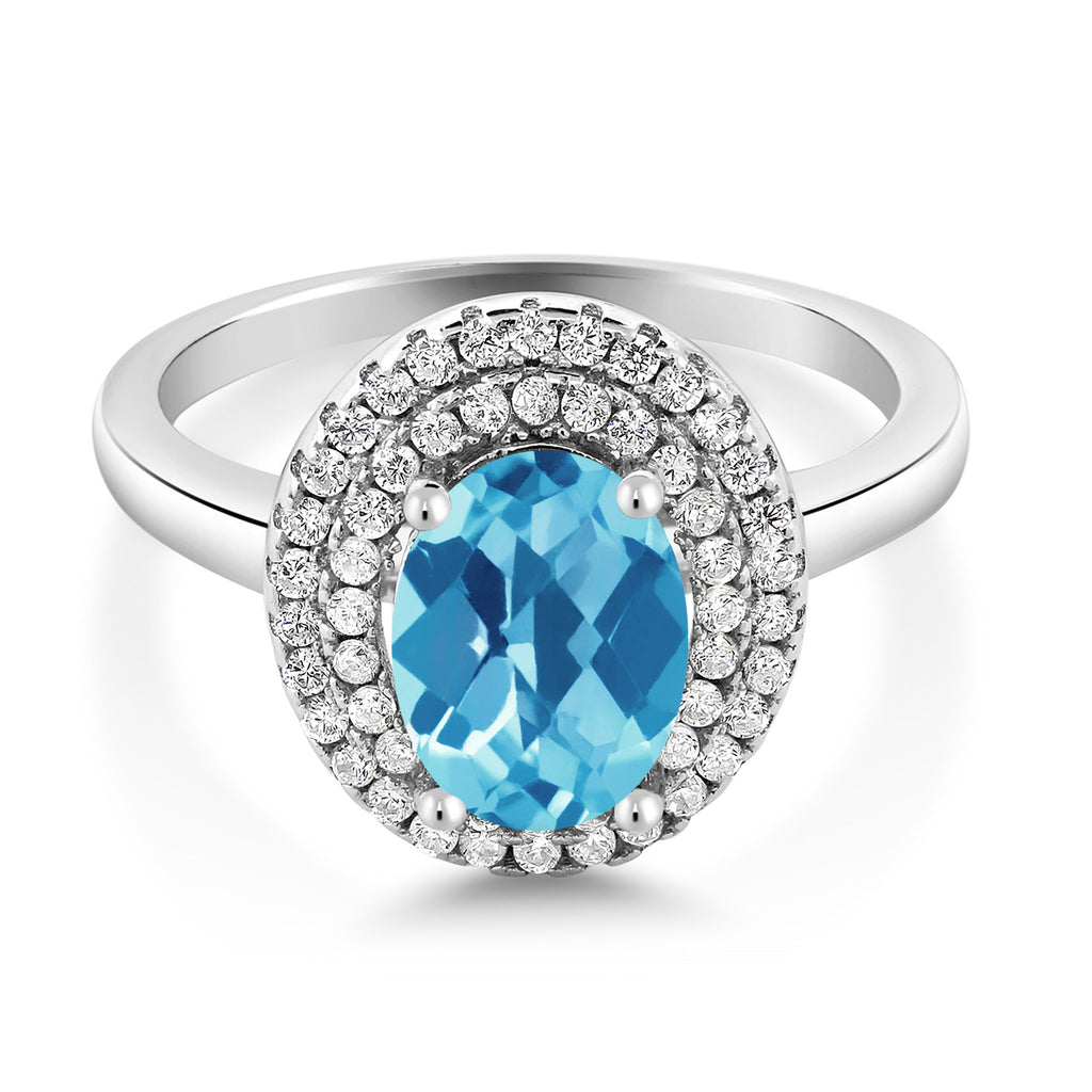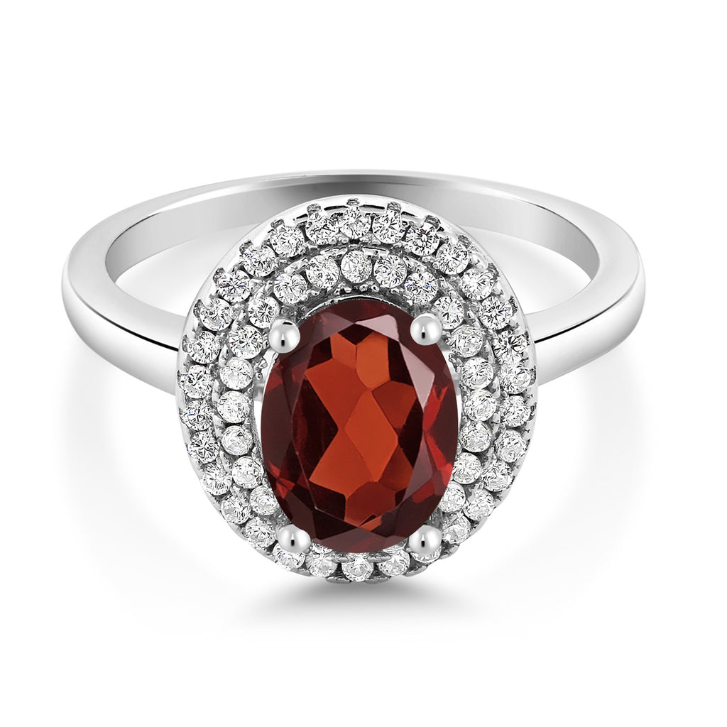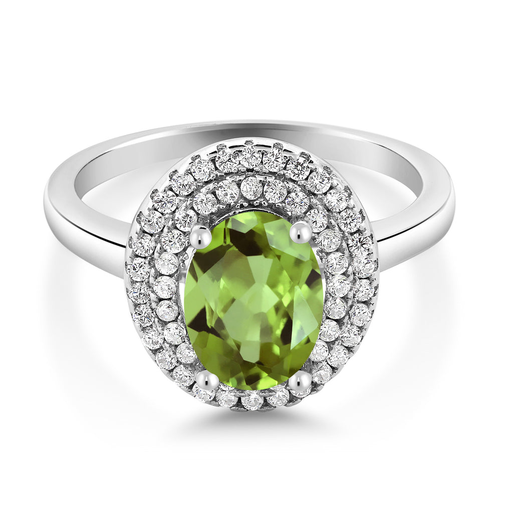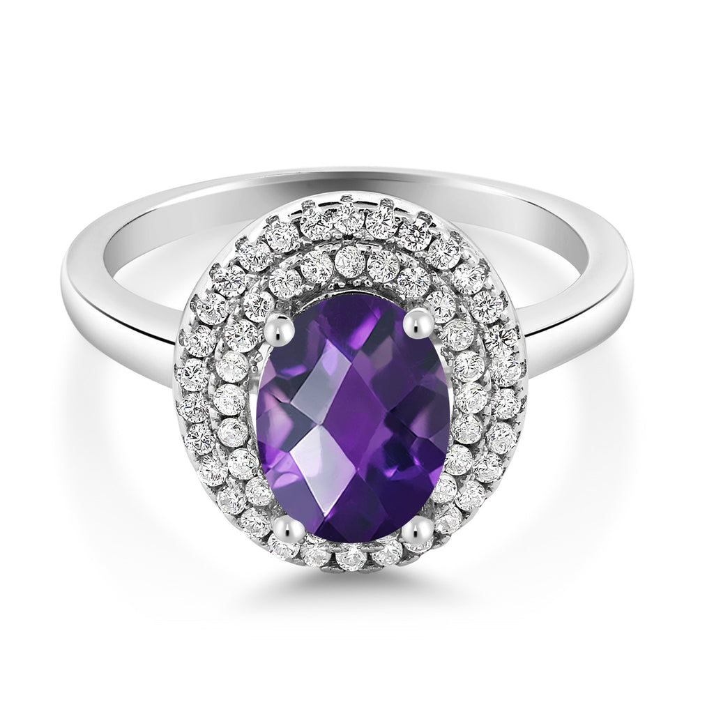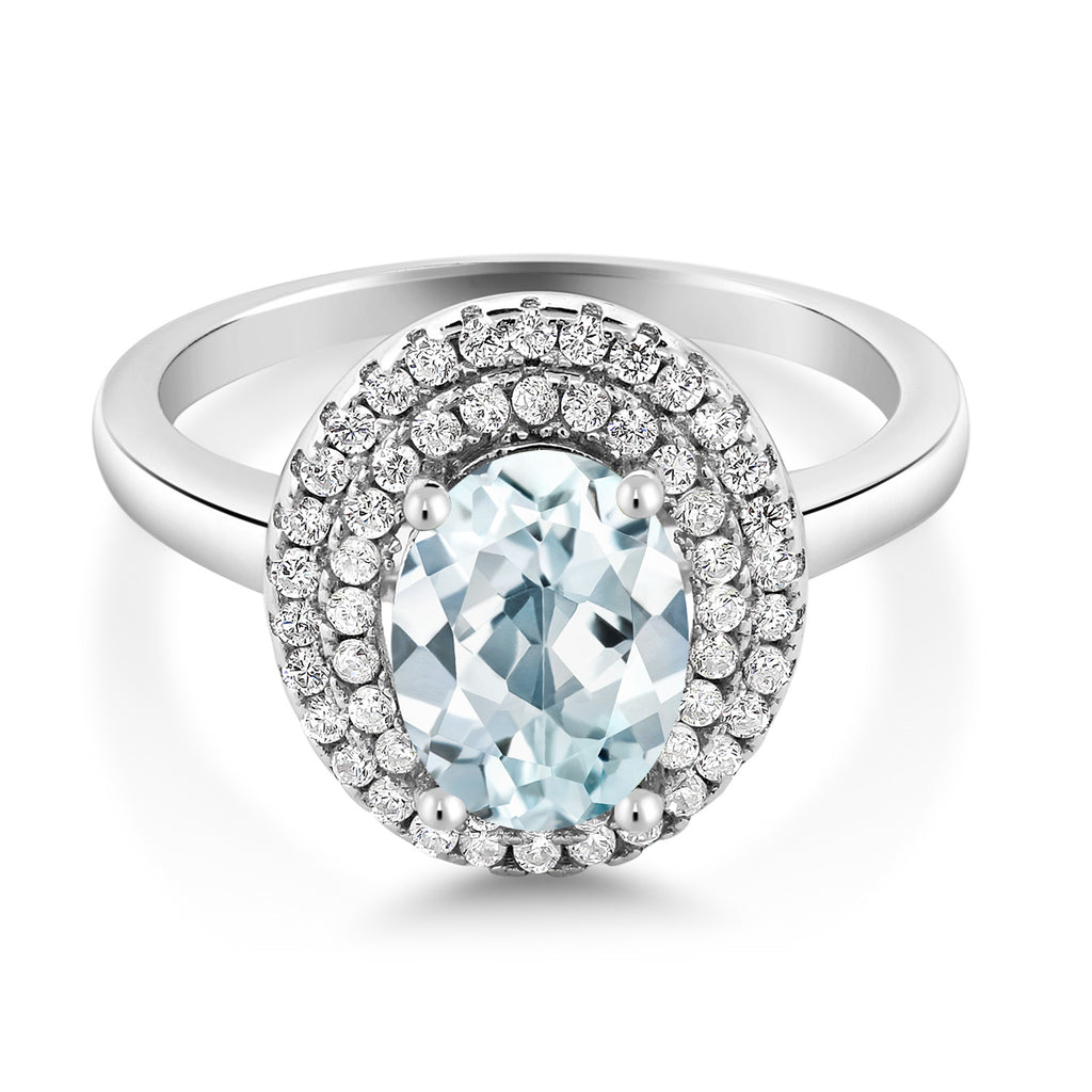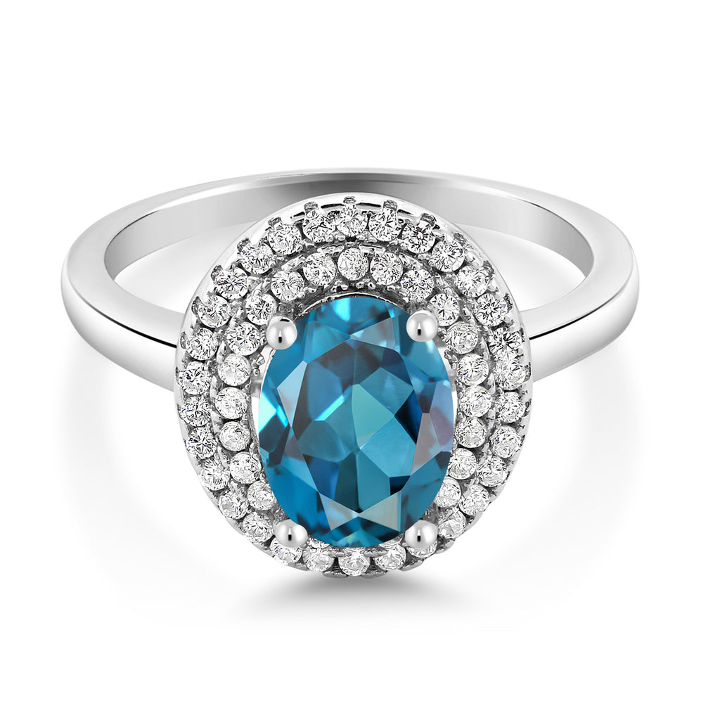 925 Sterling Silver 8X6MM Oval Gemstone Birthstone Double Halo Engagement Ring | Wedding Anniversary Promise Ring For Women | Size 5,6,7,8,9
