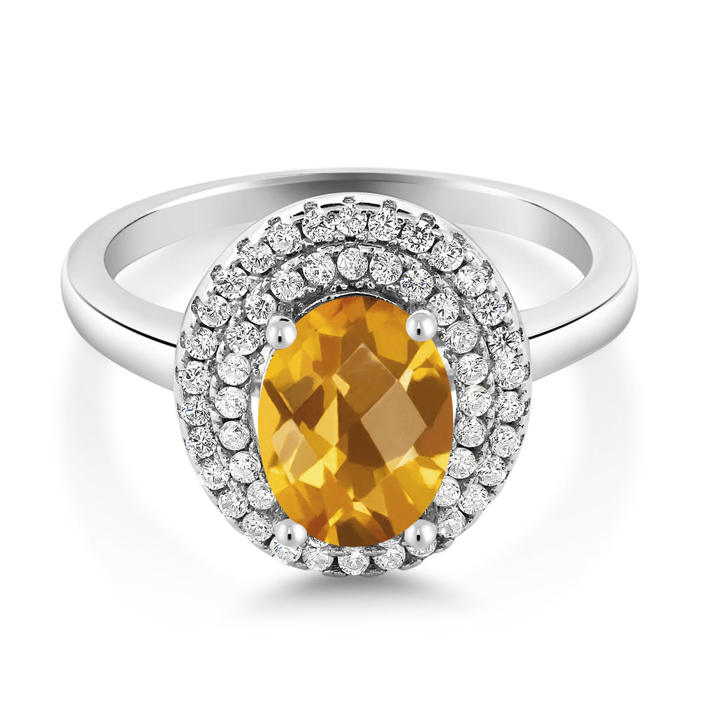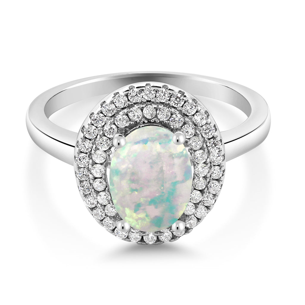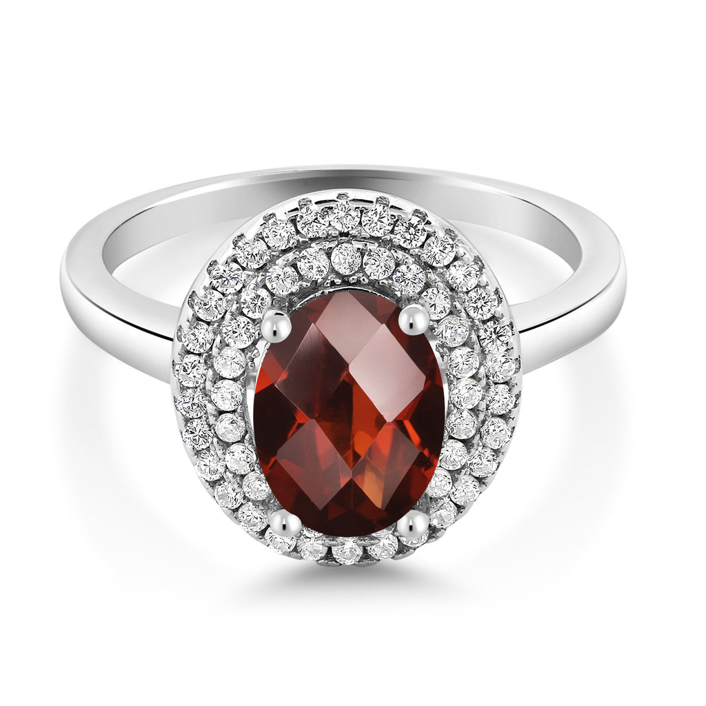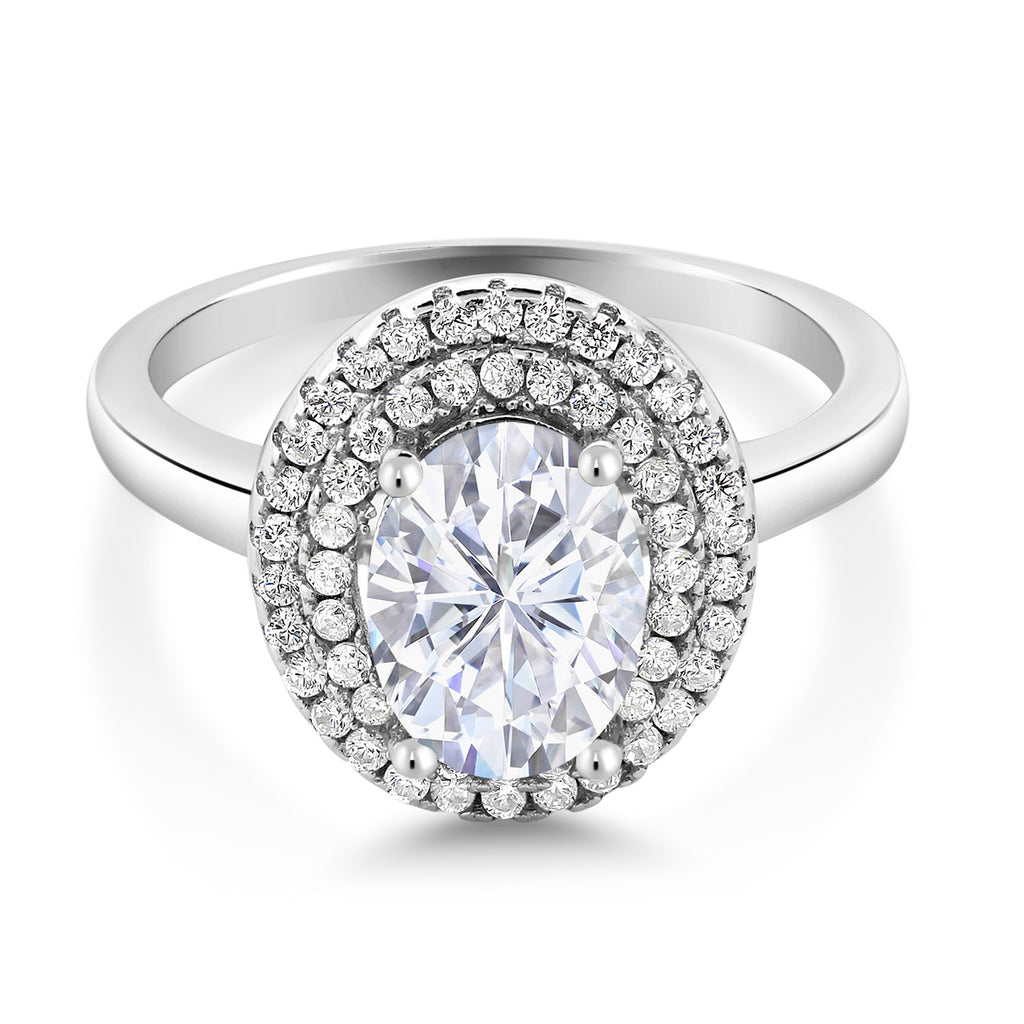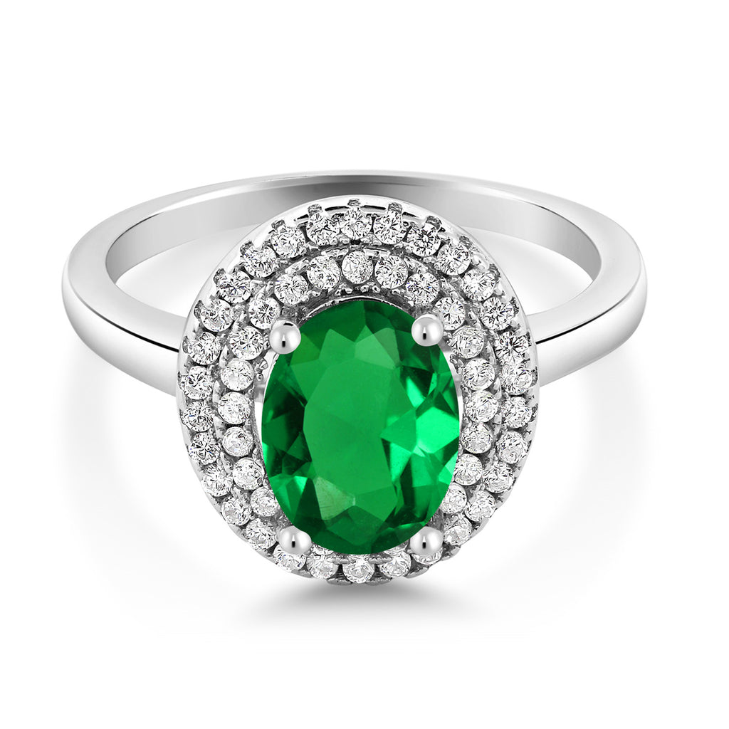 925 Sterling Silver 8X6MM Oval Gemstone Birthstone Double Halo Engagement Ring | Wedding Anniversary Promise Ring For Women | Size 5,6,7,8,9
