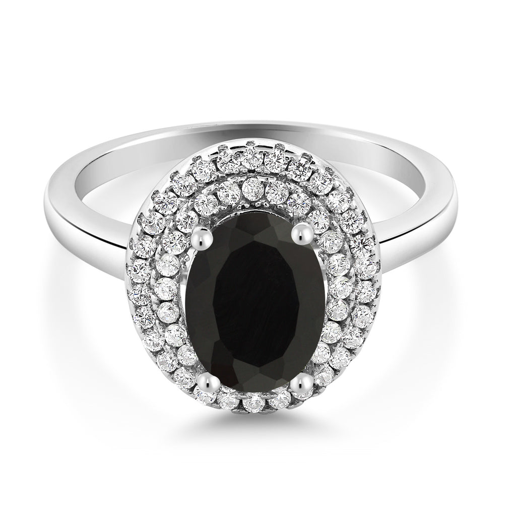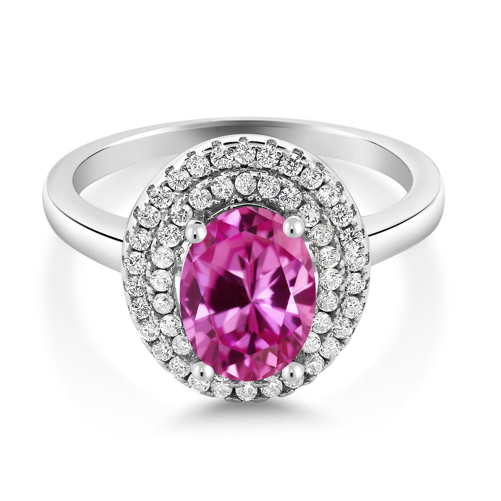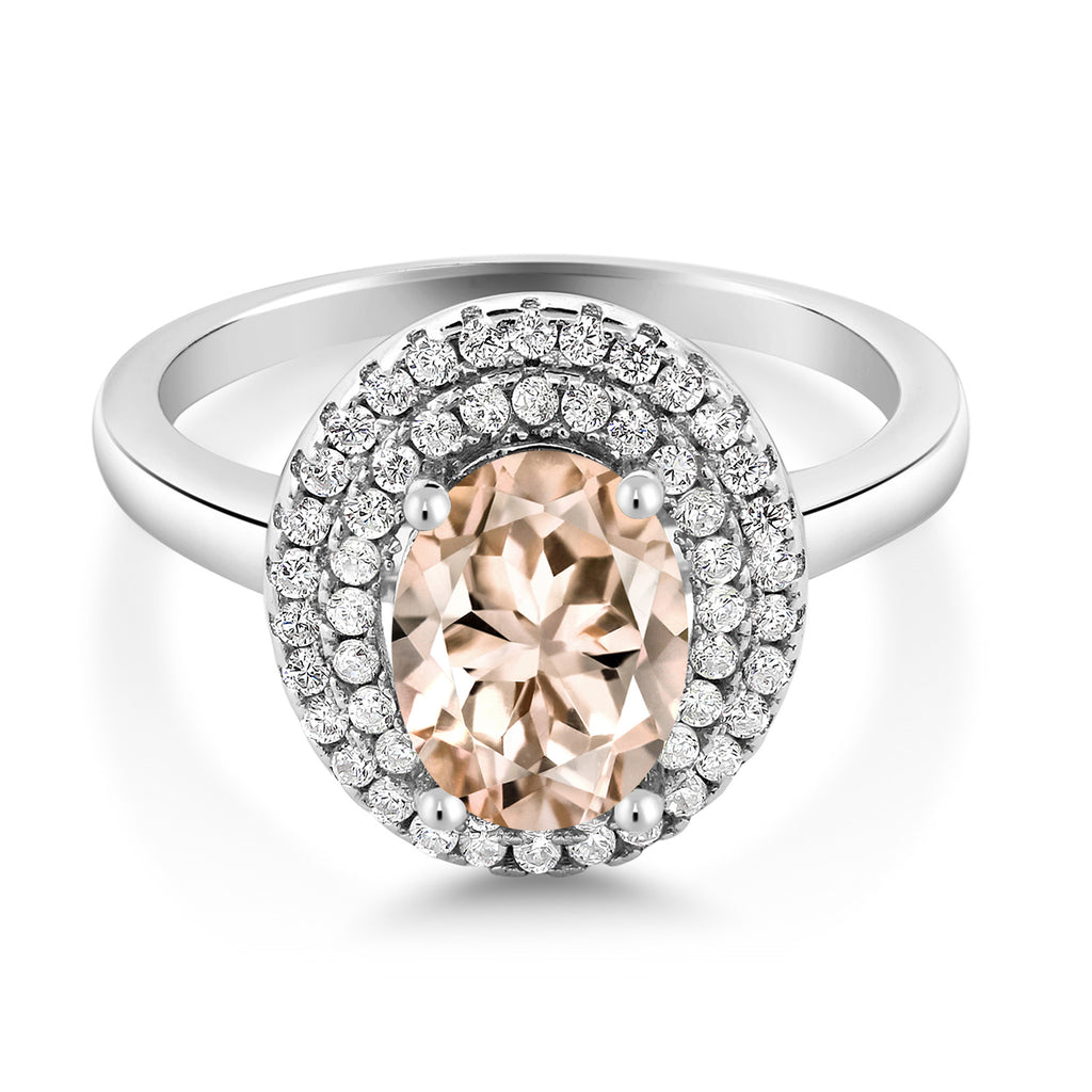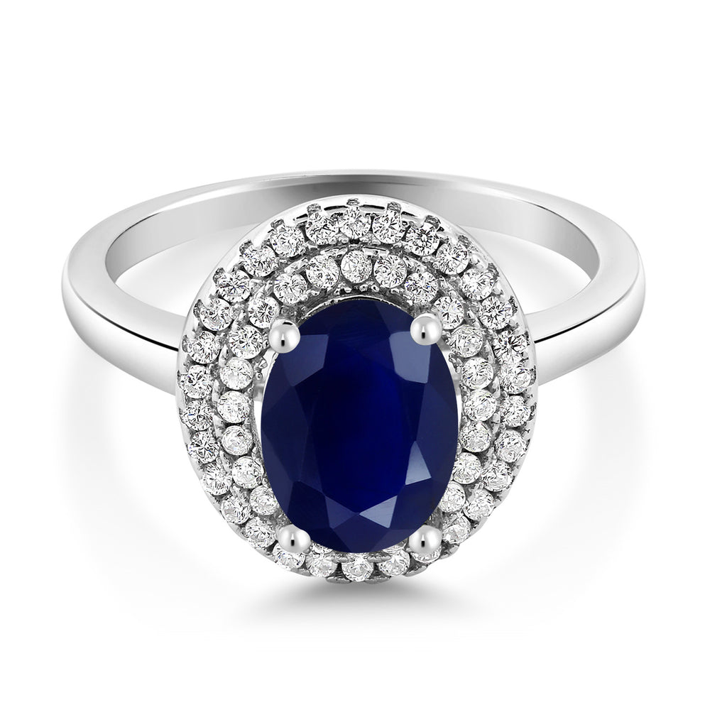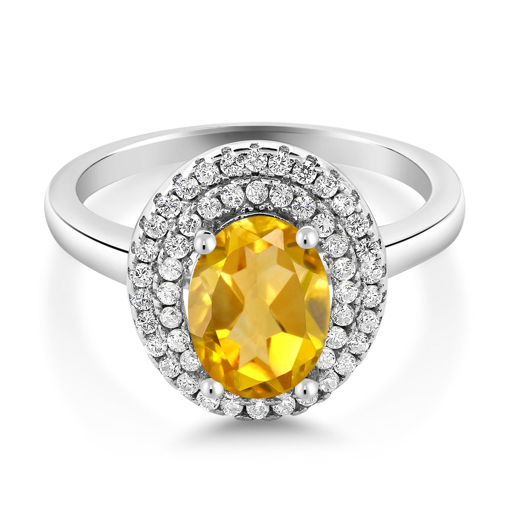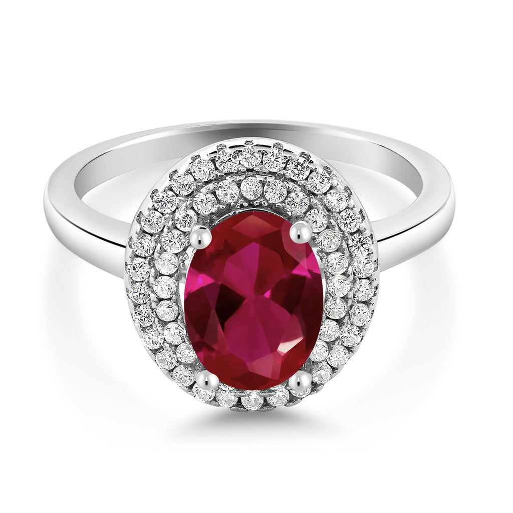 925 Sterling Silver 8X6MM Oval Gemstone Birthstone Double Halo Engagement Ring | Wedding Anniversary Promise Ring For Women | Size 5,6,7,8,9