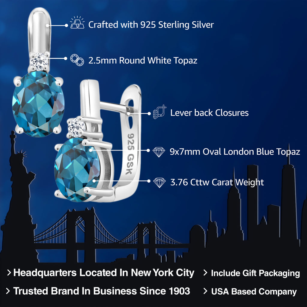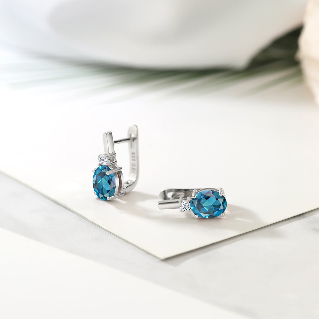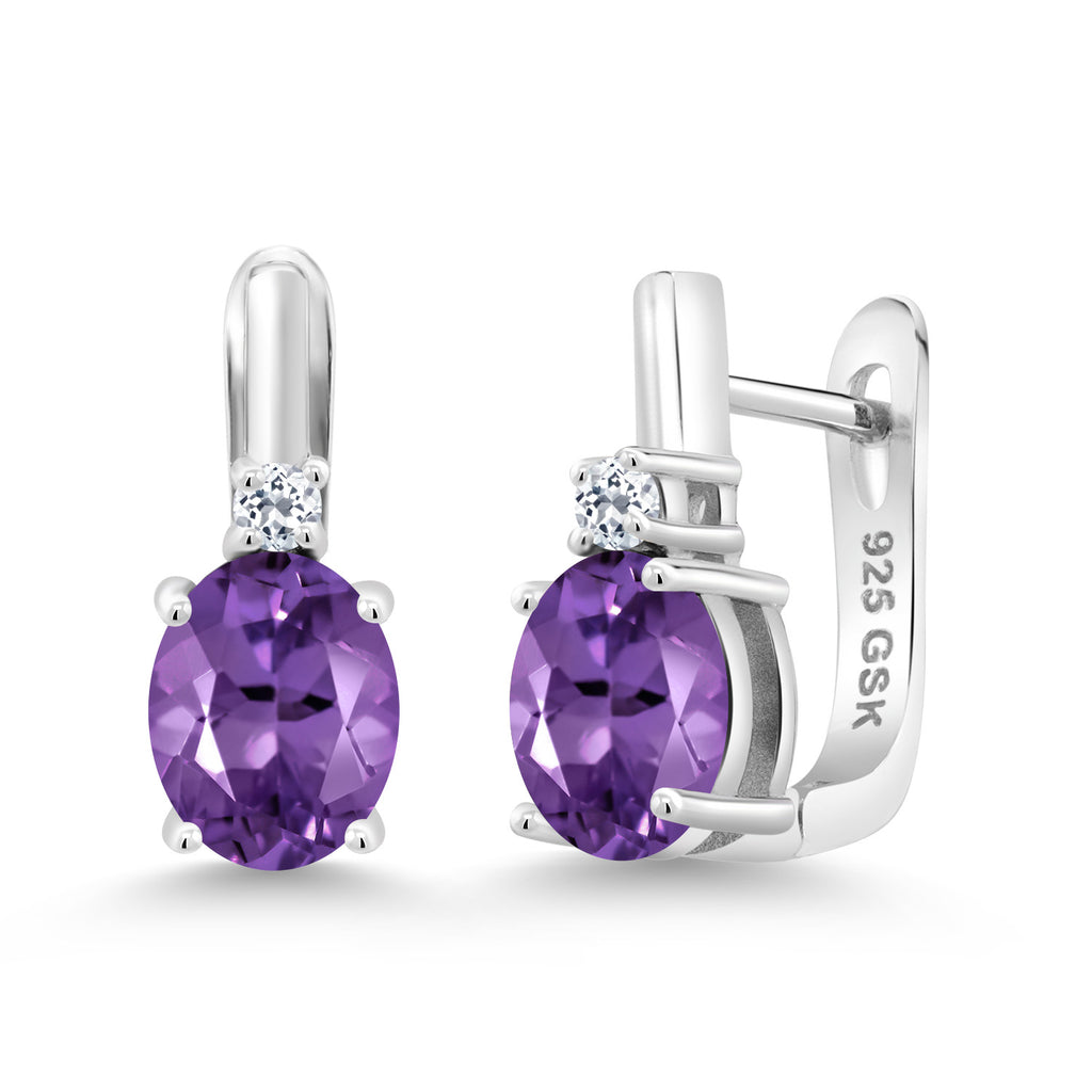 CAPTIVATING GEMSTONE DUO: Adorned with 9X7MM oval-cut gemstone birthstones paired with 2.5MM round white topaz accents, these earrings exude elegance and brilliance. The vibrant birthstone reflects natural light beautifully, complemented by the shimmering topaz for a sophisticated look that transitions seamlessly from day to evening wear.