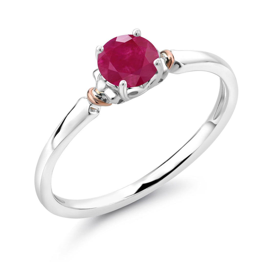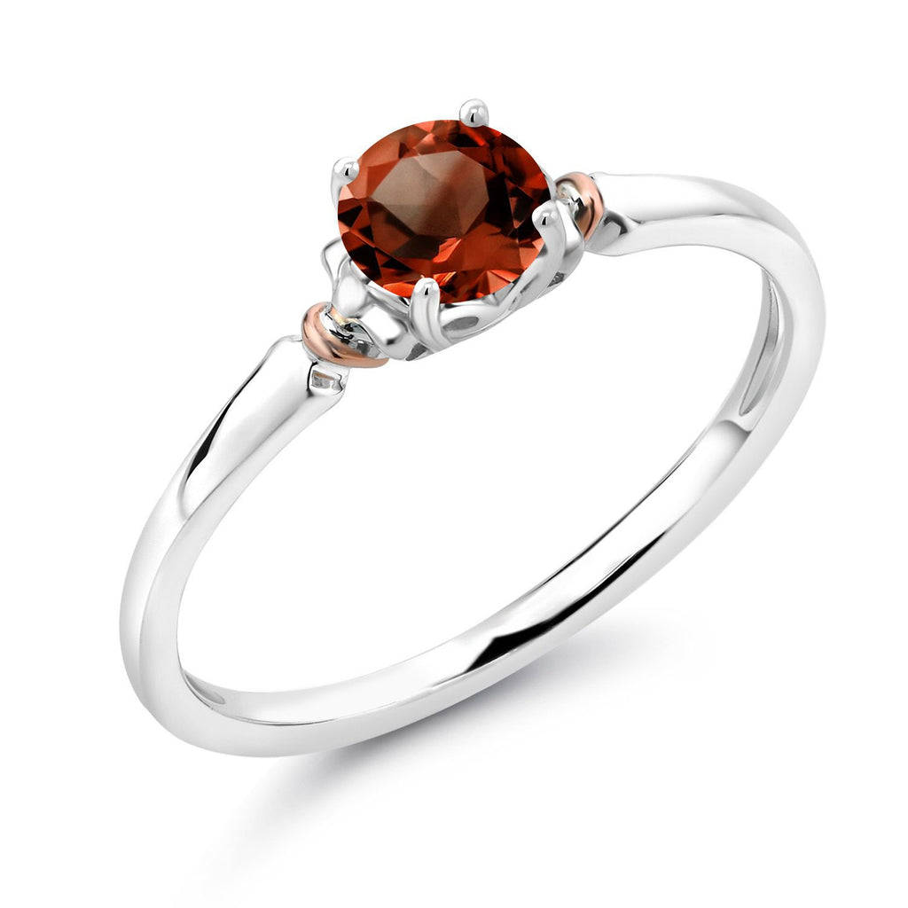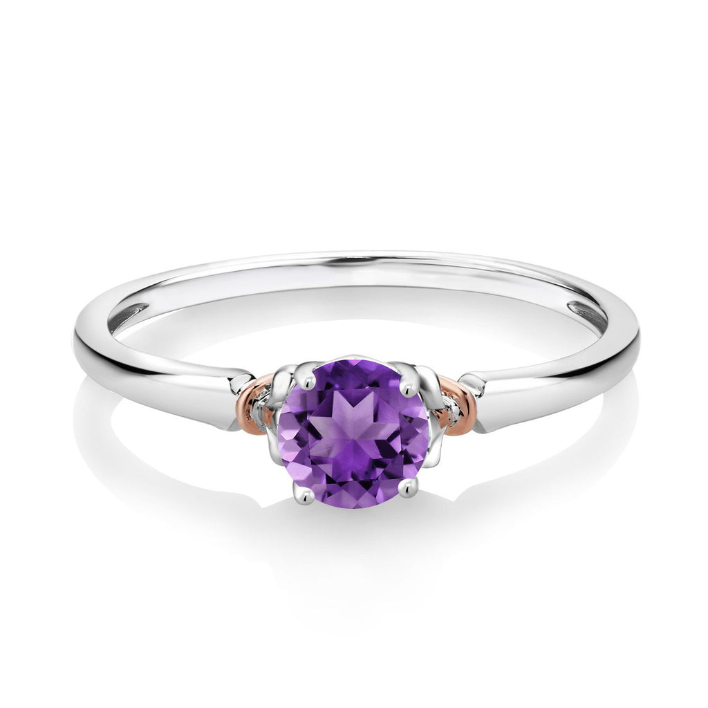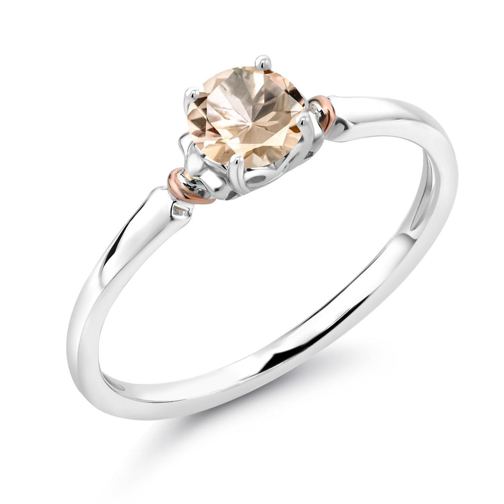 925 Sterling Silver and 10K Rose Gold 5MM Round Gemstone Birthstone Solitaire Engagement Ring | Wedding Anniversary Promise Ring For Women | Available In Size 5, 6, 7, 8, 9