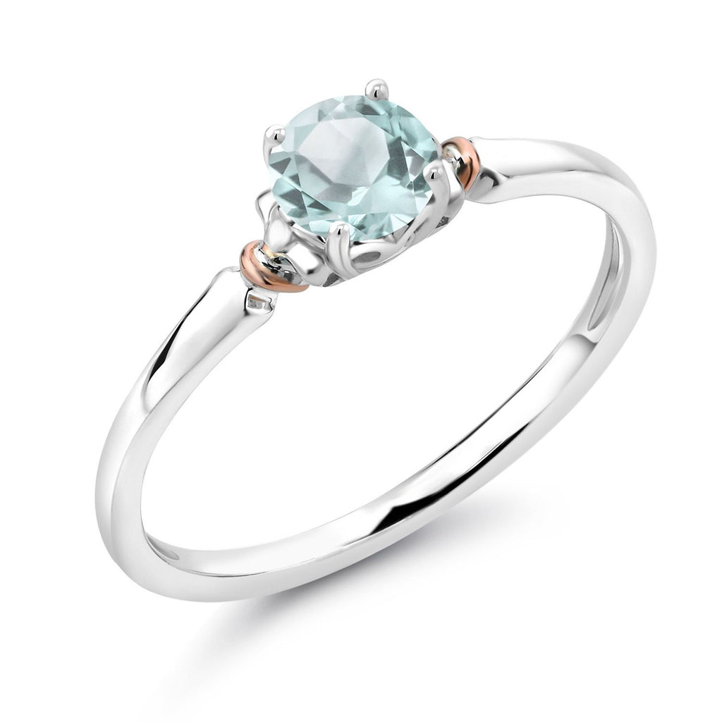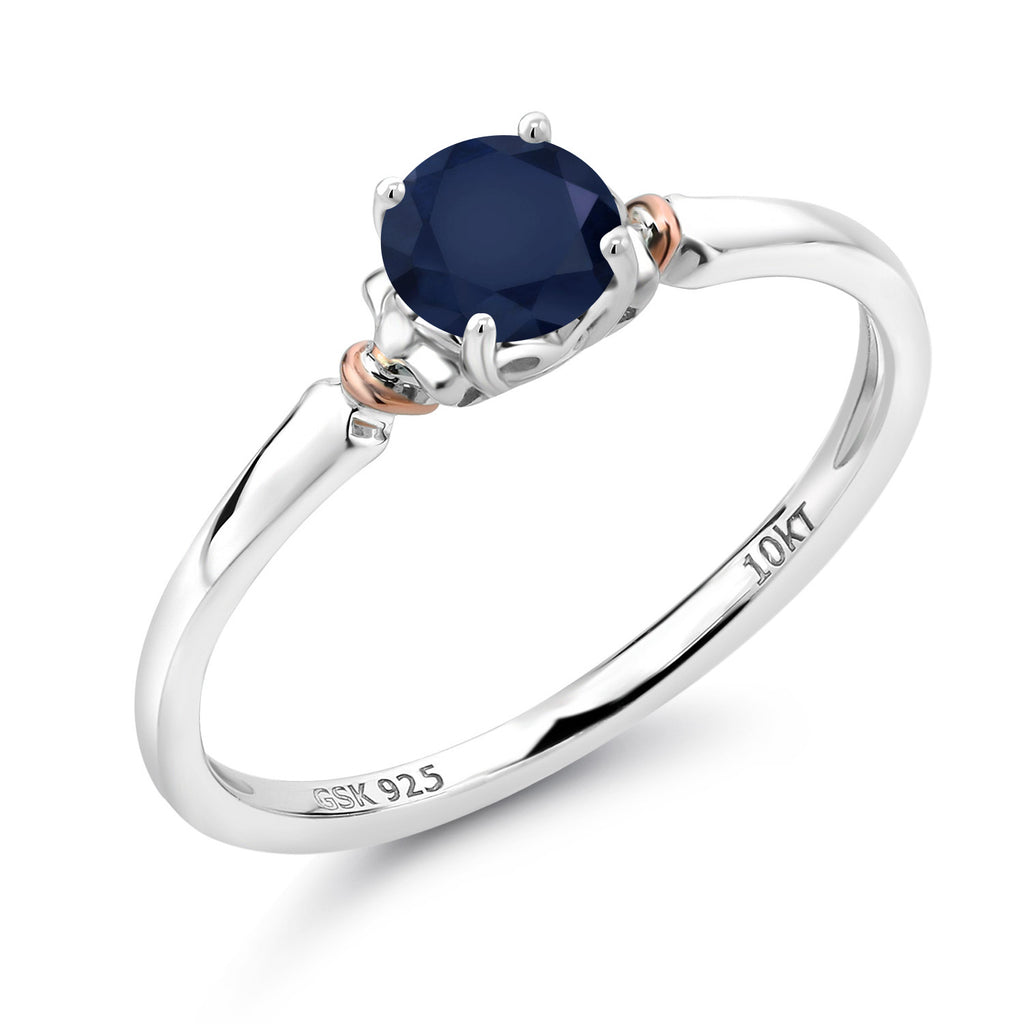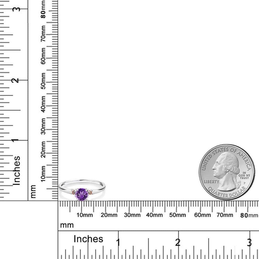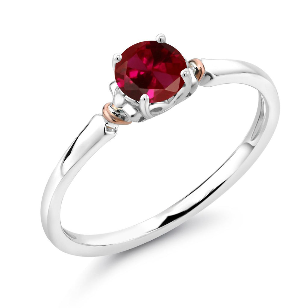 925 Sterling Silver and 10K Rose Gold 5MM Round Gemstone Birthstone Solitaire Engagement Ring | Wedding Anniversary Promise Ring For Women | Available In Size 5, 6, 7, 8, 9