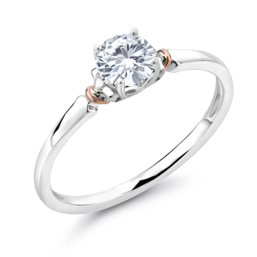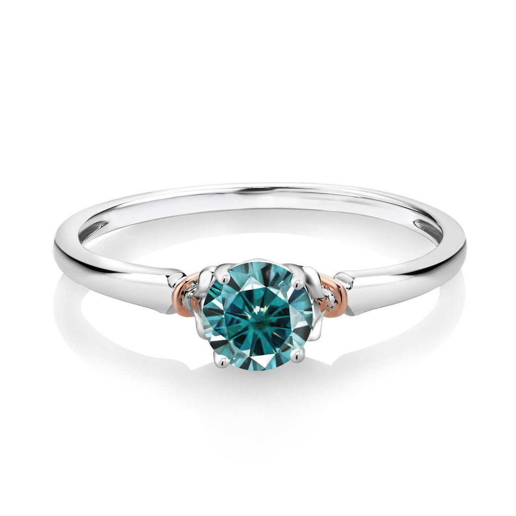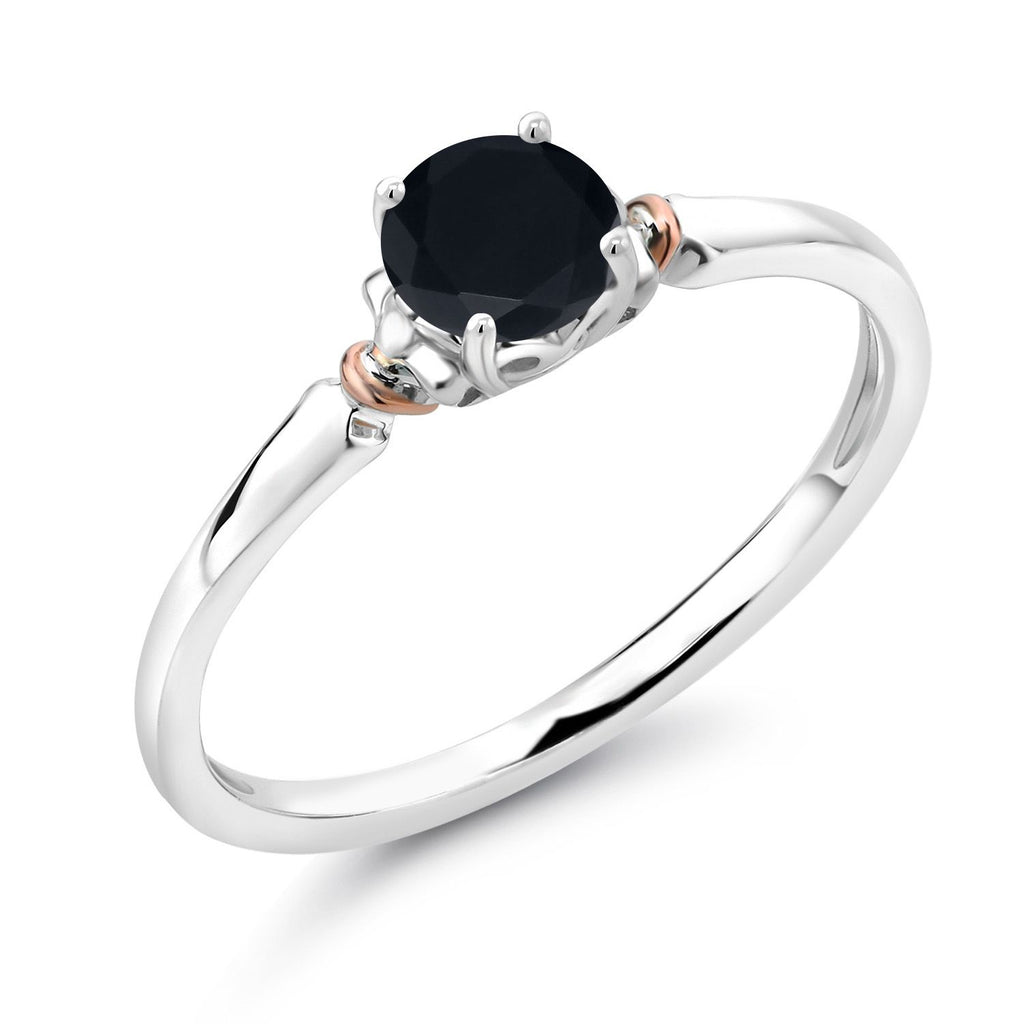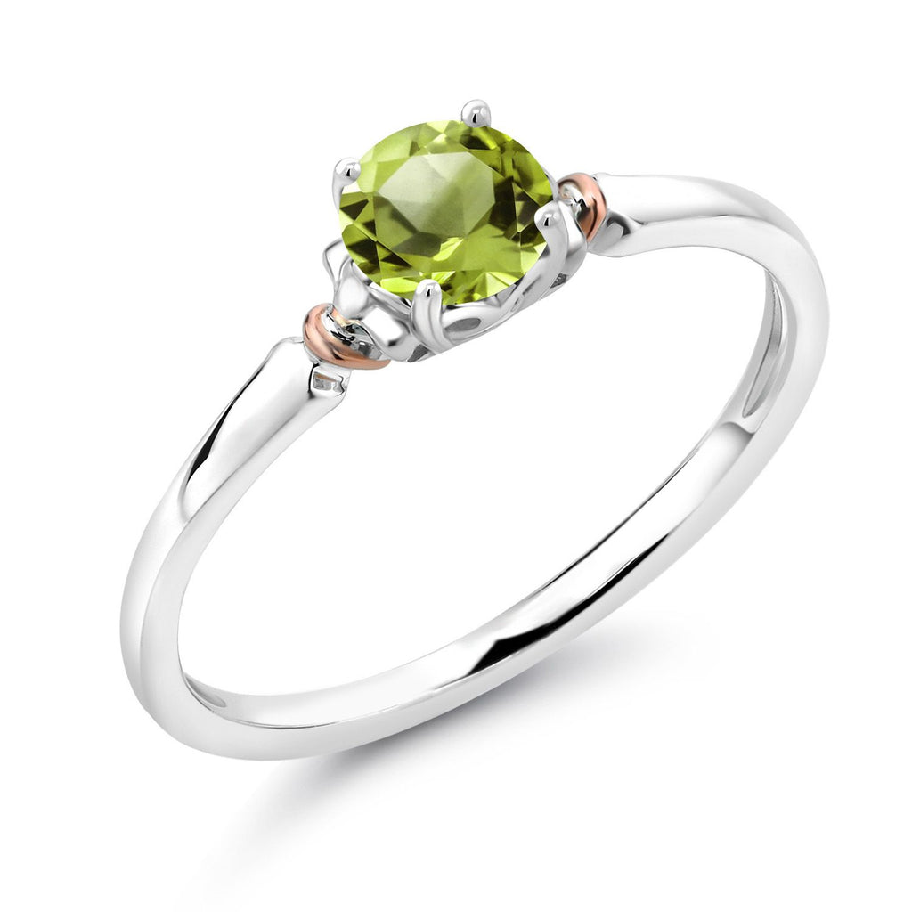 925 Sterling Silver and 10K Rose Gold 5MM Round Gemstone Birthstone Solitaire Engagement Ring | Wedding Anniversary Promise Ring For Women | Available In Size 5, 6, 7, 8, 9