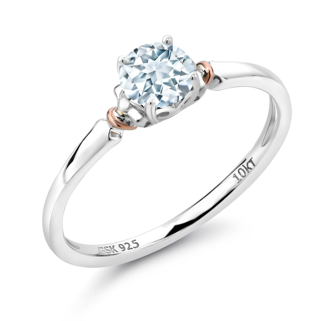 ELEGANT TWO-TONE DESIGN: Enhance your style with this beautiful solitaire engagement ring crafted from 925 sterling silver and 10K rose gold, featuring a 5mm round gemstone birthstone, exuding a blend of sophistication and warmth in a charming design.