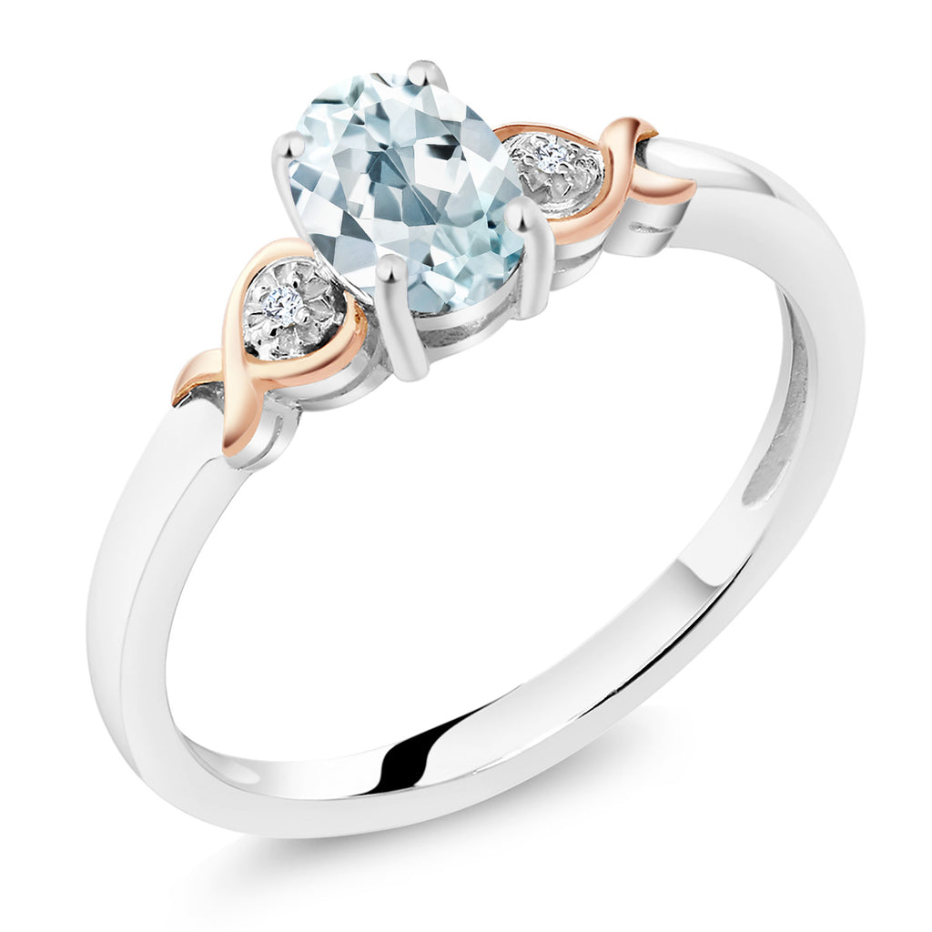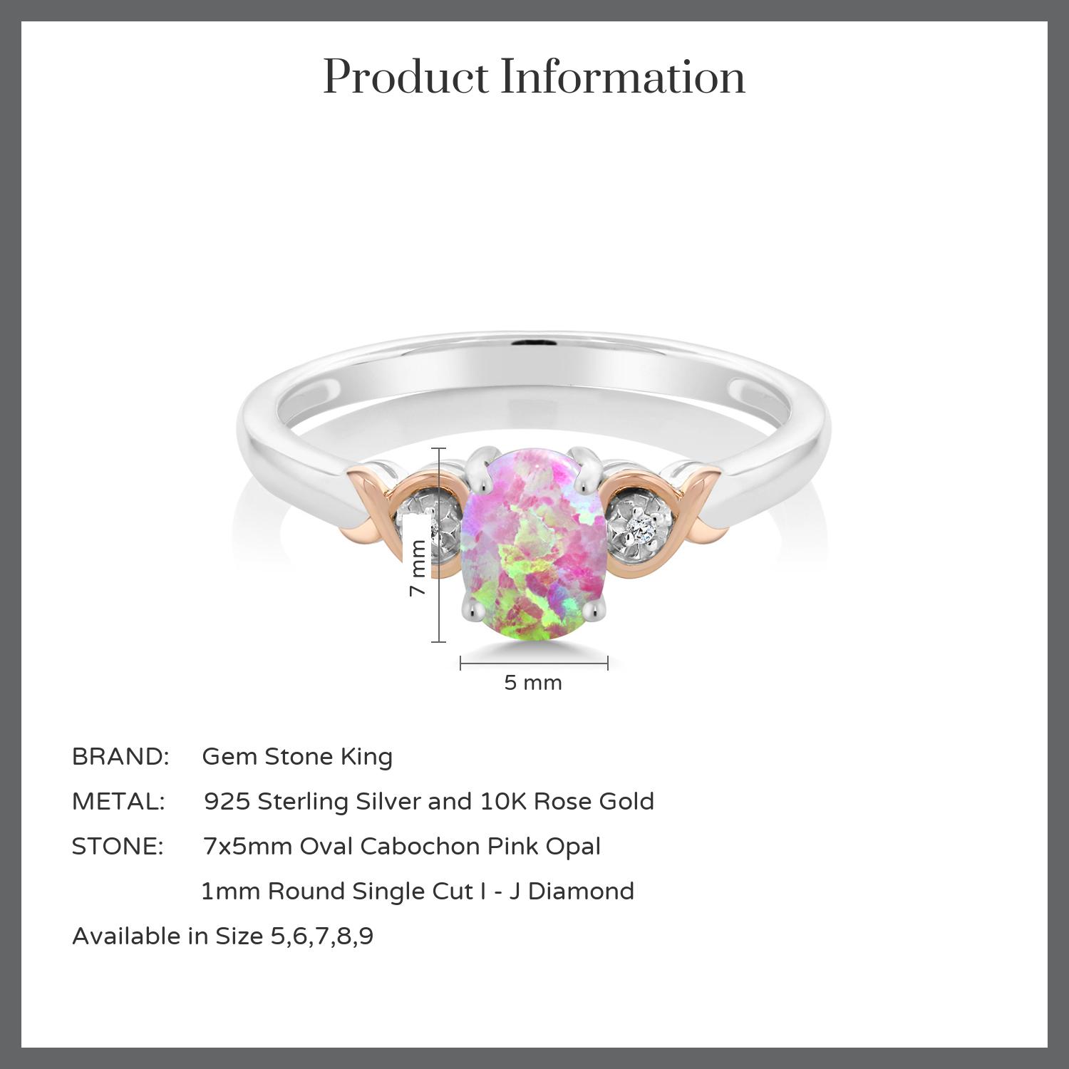 925 Sterling Silver and 10K Rose Gold 7X5MM Oval Gemstone Birthstone and Diamond Accent Engagement Ring | Wedding Anniversary Promise Ring For Women | Available In Size 5-9