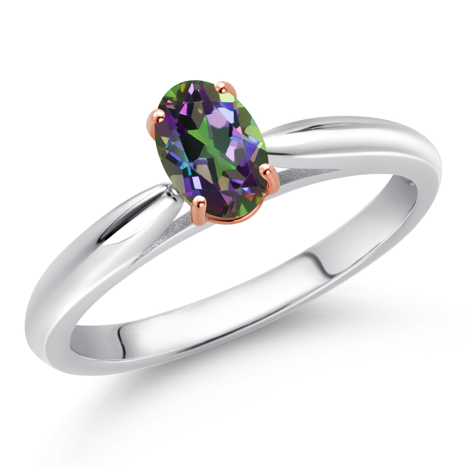SOPHISTICATED TWO-TONE DESIGN: Crafted with a polished sterling silver band and accented by warm 10K rose gold prongs, this ring effortlessly blends contemporary style with timeless charm. The radiant silver provides durability and luster, while the rose gold adds a touch of warmth and sophistication, ensuring this piece becomes a treasured part of any jewelry collection.