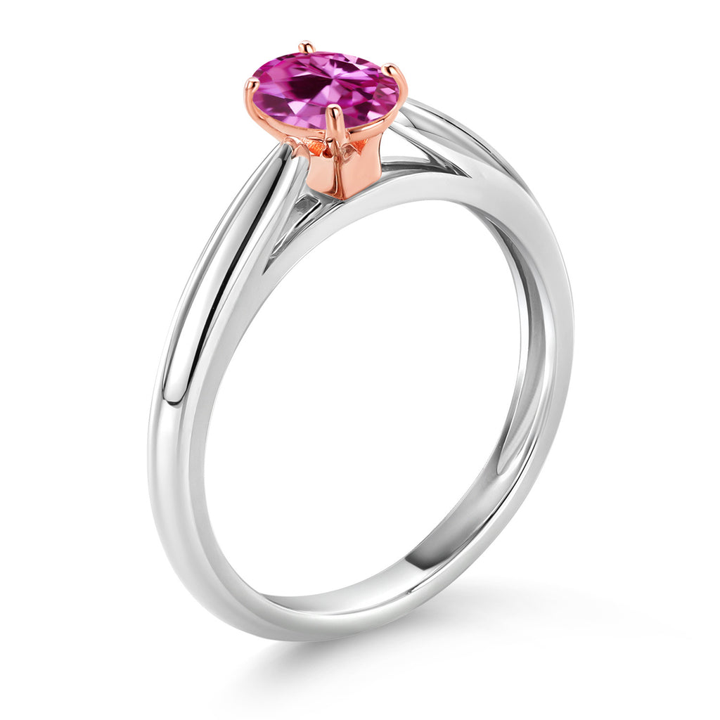 925 Sterling Silver and 10K Rose Gold Prongs Pink Created Sapphire Solitaire Engagement Ring For Women (0.50 Cttw, Oval 6X4MM, Gemstone September Birthstone)