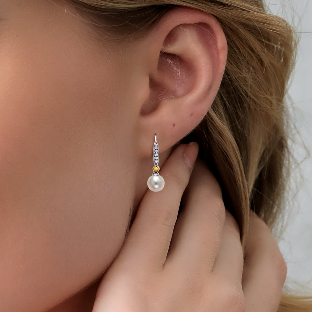 DAZZLING DIAMOND ACCENTS: Enhancing the beauty of the pearls are white lab-grown diamonds, delicately set in 10K yellow gold. The subtle sparkle of these diamonds adds a touch of glamour and refinement to the earrings.