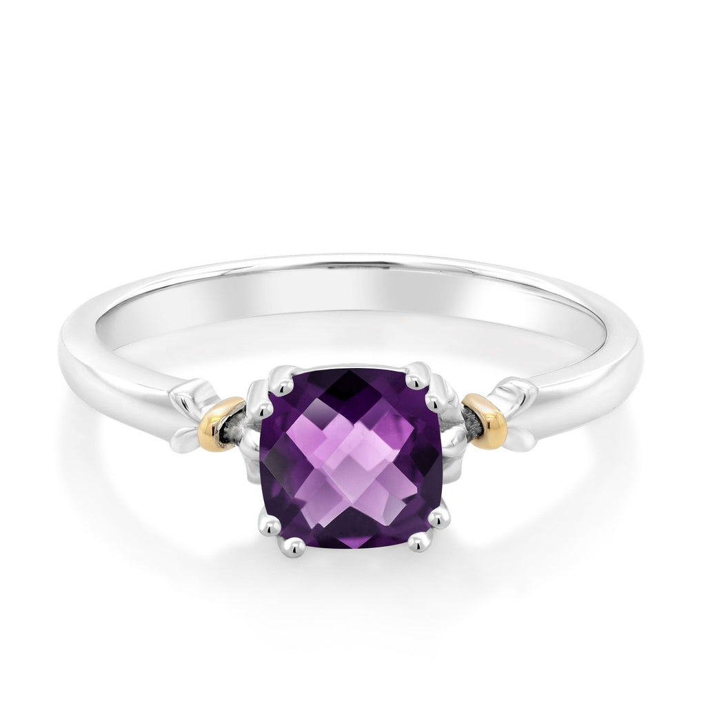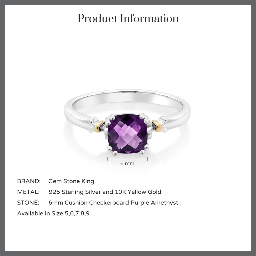 925 Sterling Silver and 10K Yellow Gold 6MM Cushion Cut Gemstone Birthstone Engagement Ring | Wedding Anniversary Promise Ring For Women | Available In Size 5, 6, 7, 8, 9
