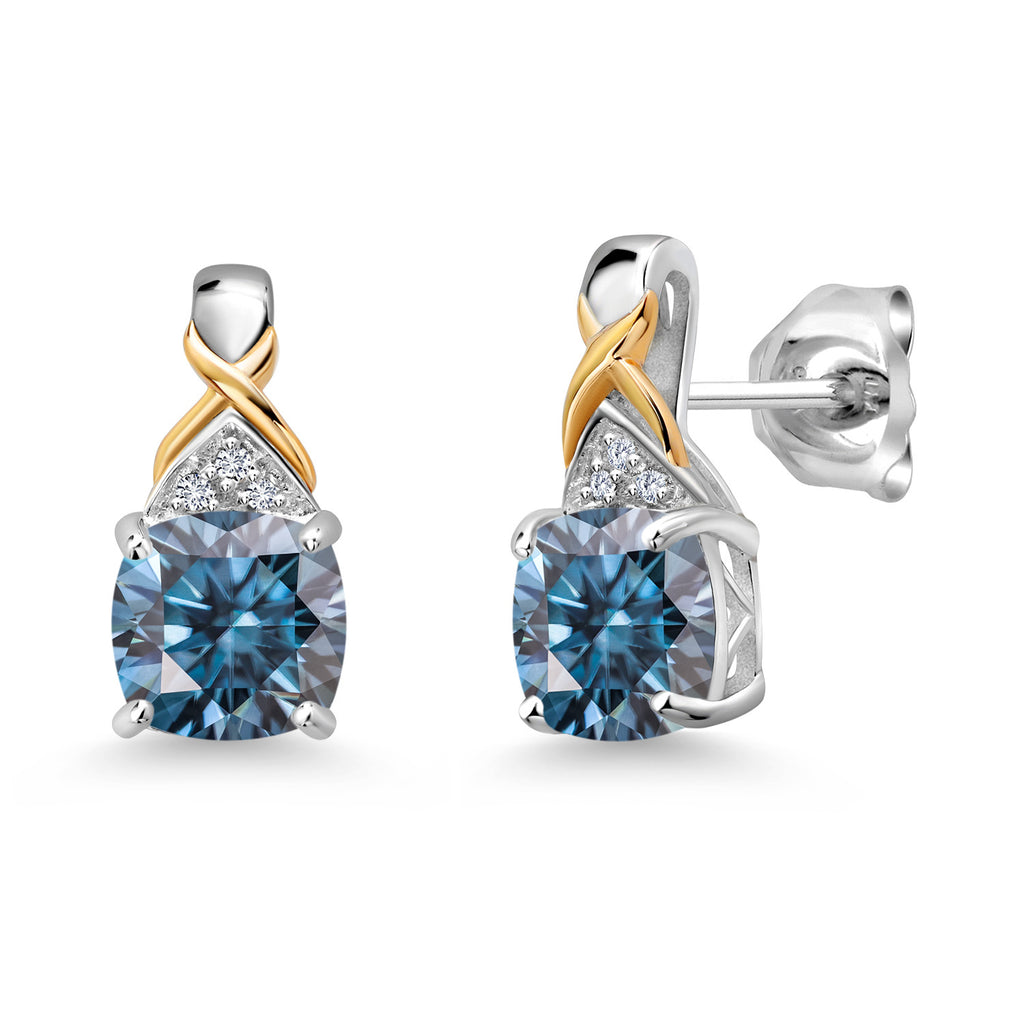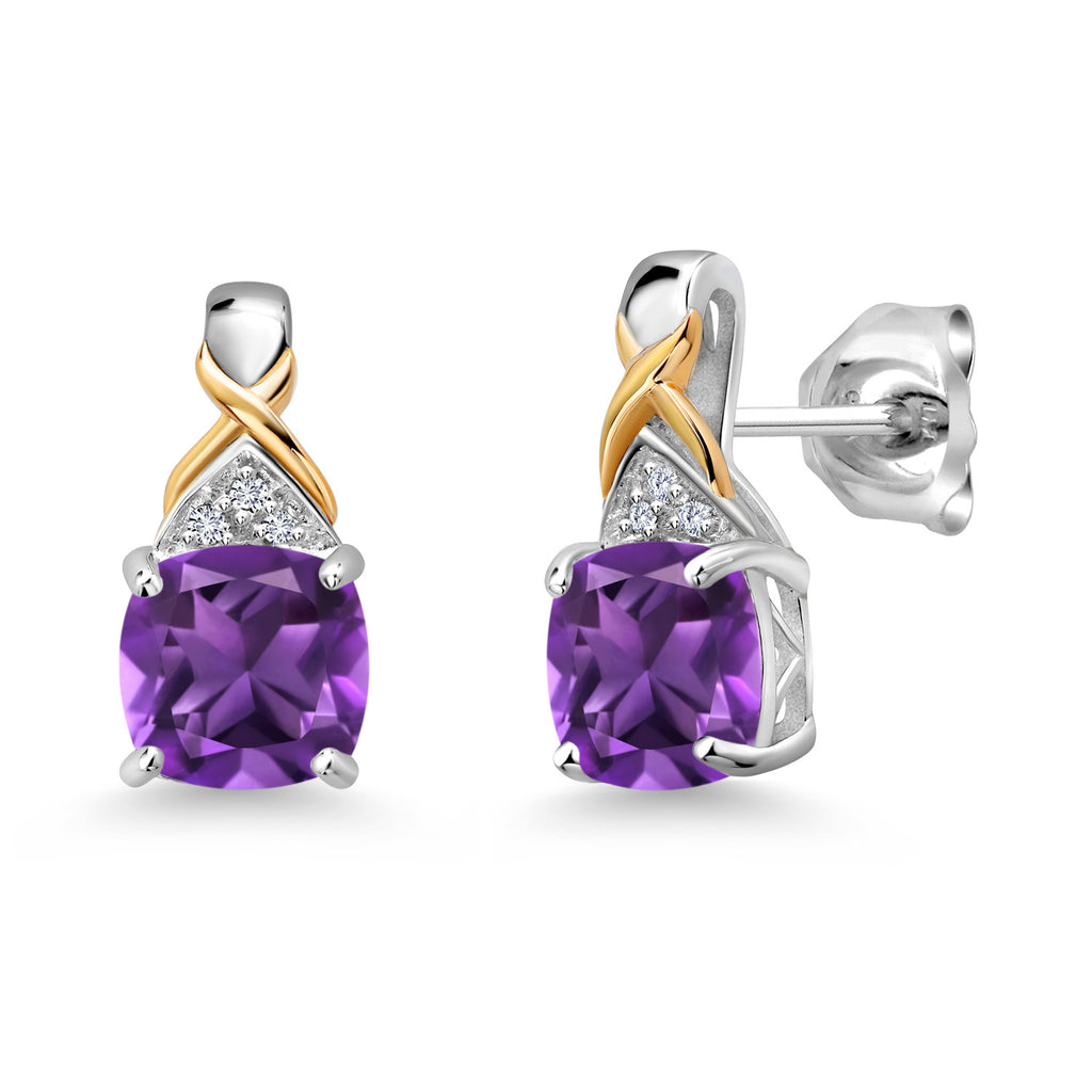 6MM Cushion Cut Earrings For Women | 925 Sterling Silver and 10K Yellow Gold | Gemstone Birthstone and White Lab Grown Diamond | Fine Jewelry Gifts for Her Mom Women Wife