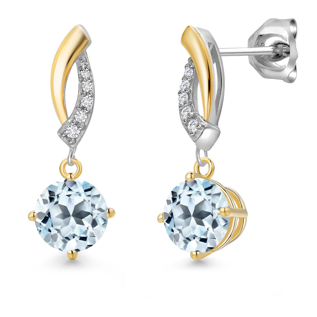 Gem Stone King Round Dangle Earrings for Women | 925 Silver and 10K Yellow Gold | 6MM Round Gemstone Birthstone and Lab Grown Diamond | Fine Jewelry for Her Mom Wife | White Lab Grown Diamond-April