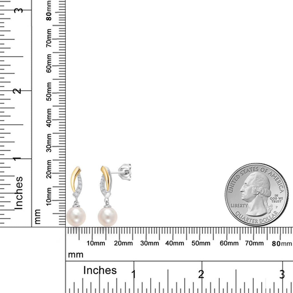 ELEGANT FUSION: Elevate your style with our Gem Stone King Cultured Freshwater Pearl and Lab Grown Diamond Dangle Earrings. The exquisite combination of 925 Sterling Silver and 10K yellow gold, alongside the round 7mm cultured freshwater pearls and lab grown diamonds, creates an elegant fusion of luxury and sophistication.