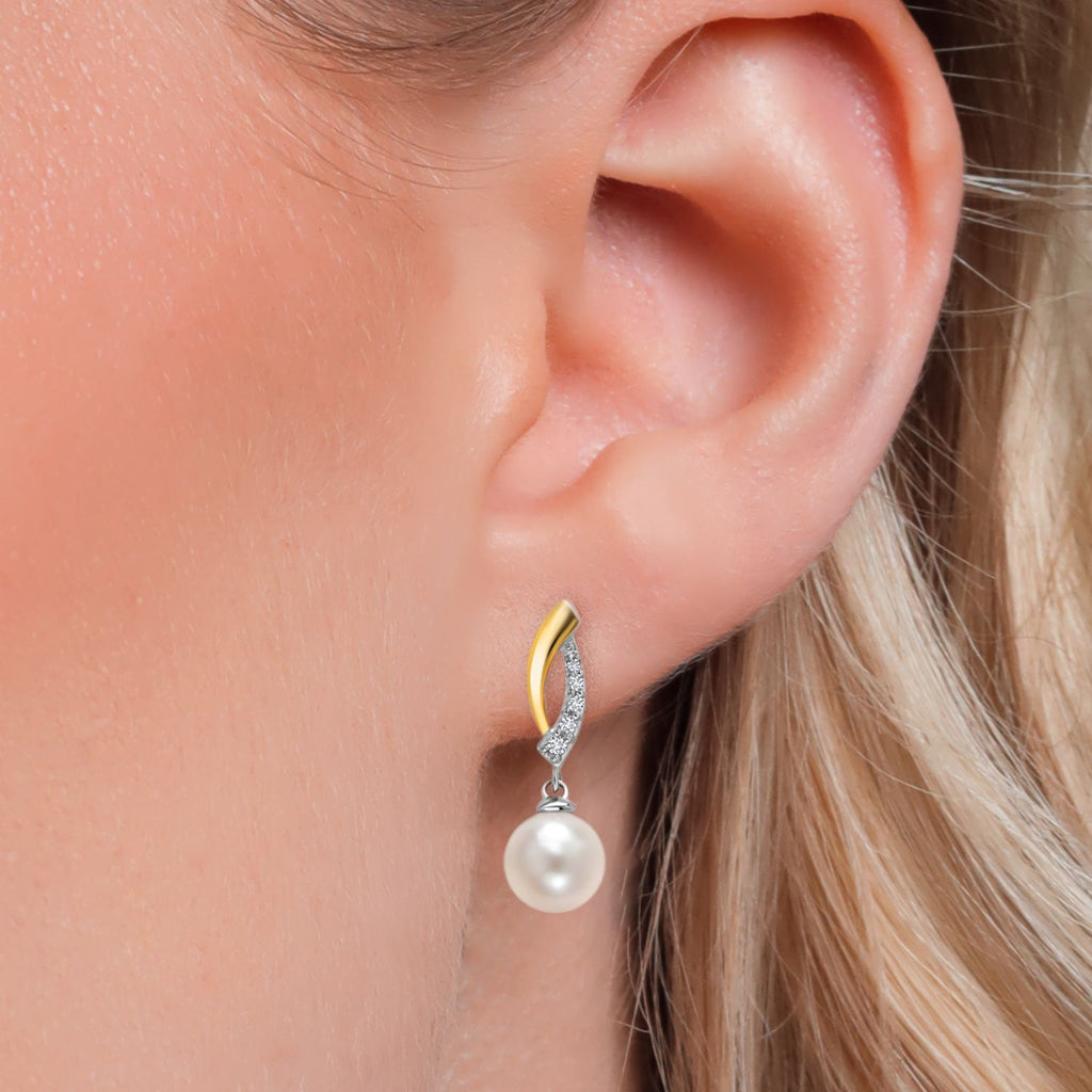 TIMELESS RADIANCE: The combination of cultured freshwater pearls and lab grown diamonds offers timeless radiance that catches the eye. The dangle design creates movement, allowing the pearls and diamonds to shimmer beautifully.