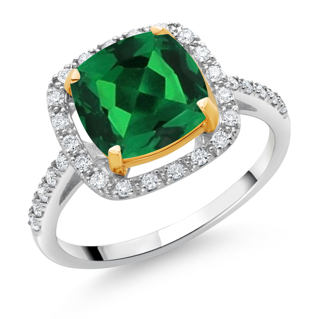 Gem Stone King 2-3 Cttw Gemstone Birthstone and Lab Grown Diamond Halo Engagement Ring for Women | 925 Silver 10K Yellow Gold | Cushion 8MM | Wedding Anniversary Ring | White Moissanite-April | 7