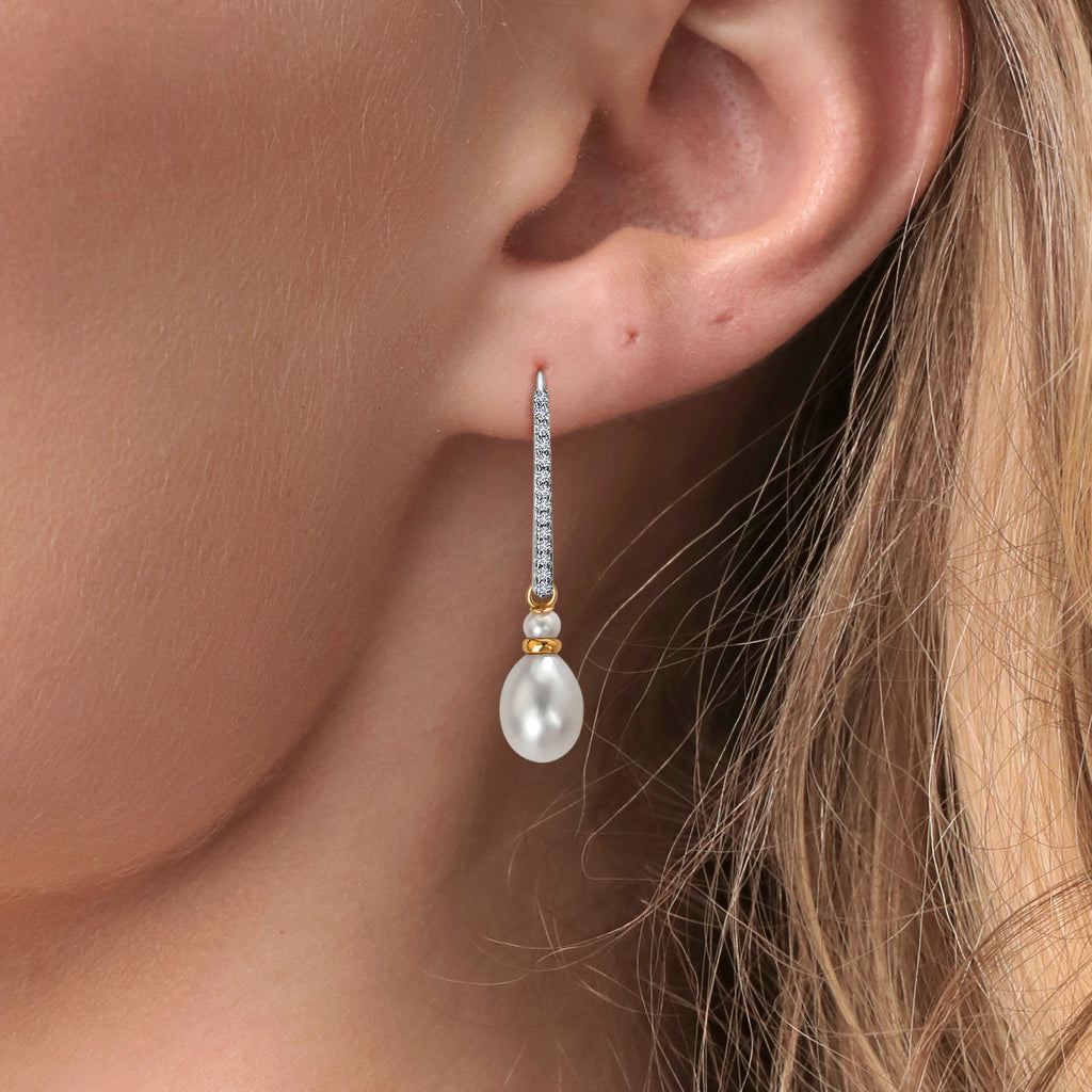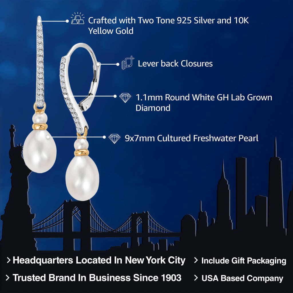 TIMELESS ELEGANCE: Elevate your style with the timeless beauty of these dangling earrings, featuring two lustrous 9x7mm cultured freshwater pearls that exude classic elegance.