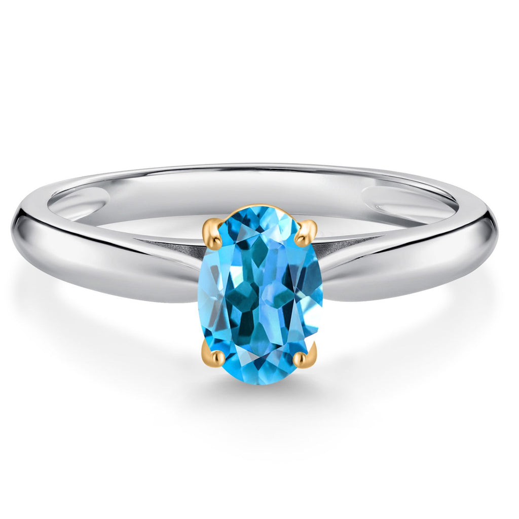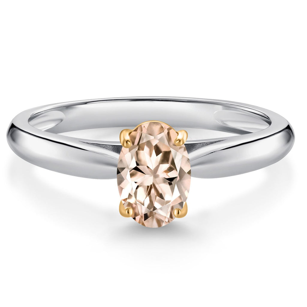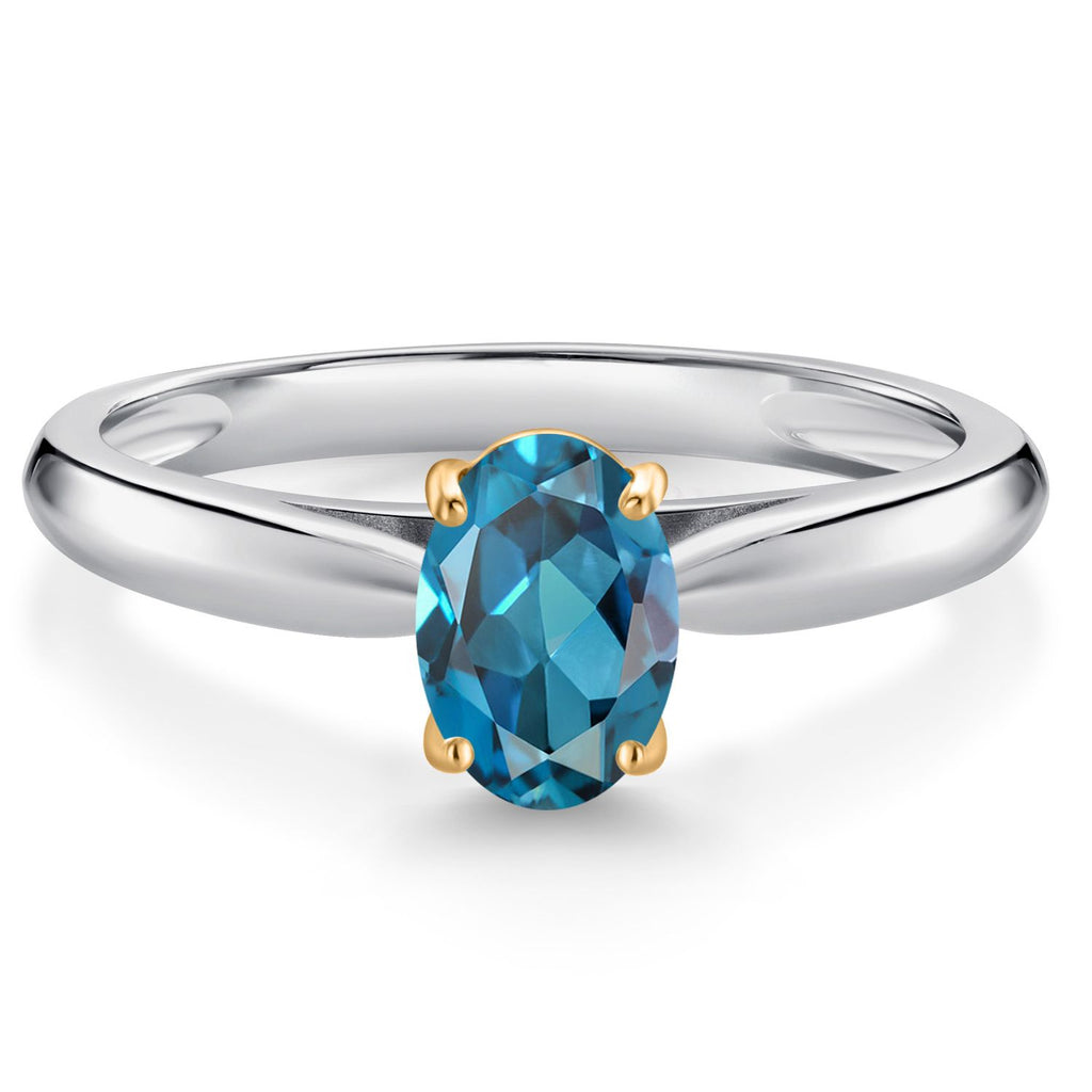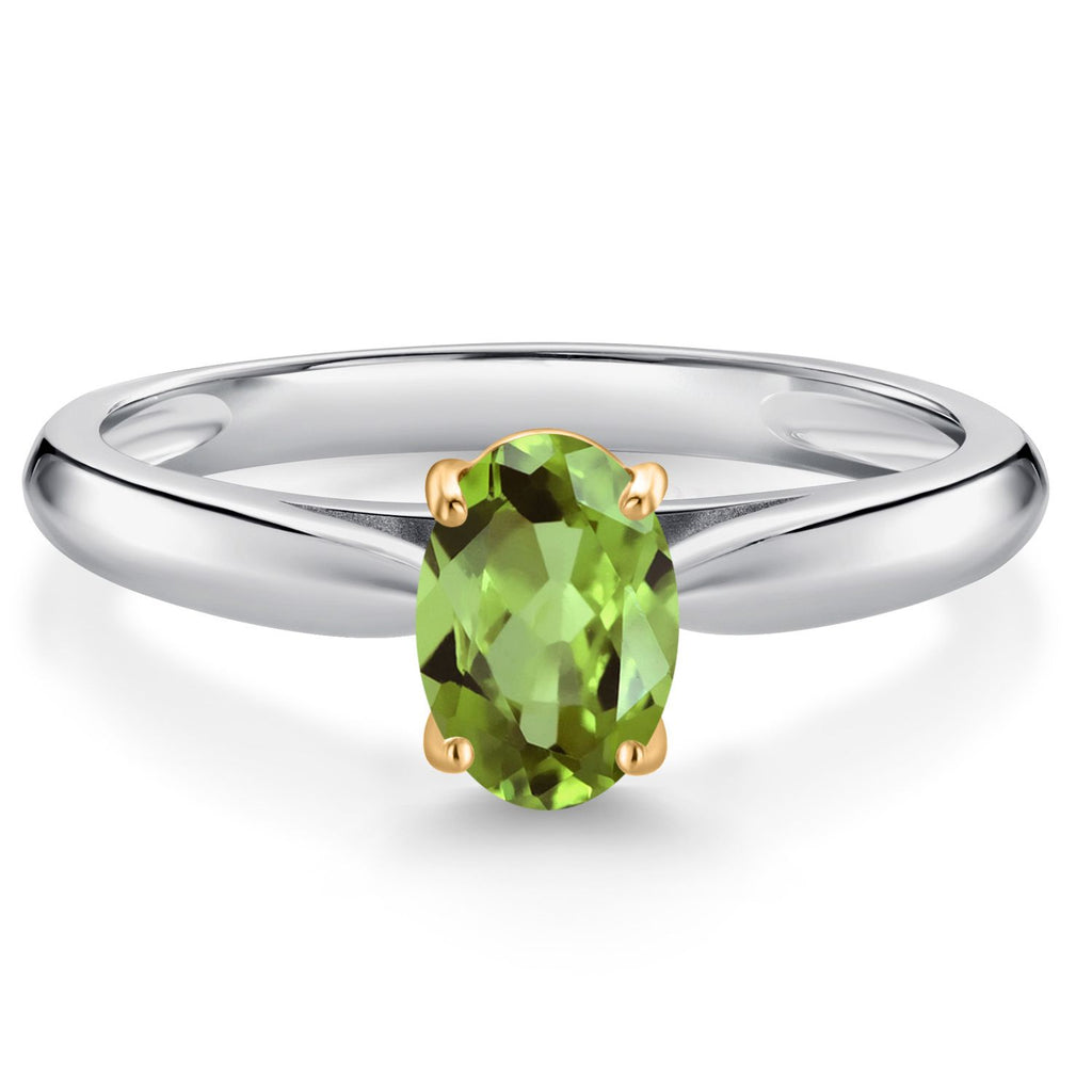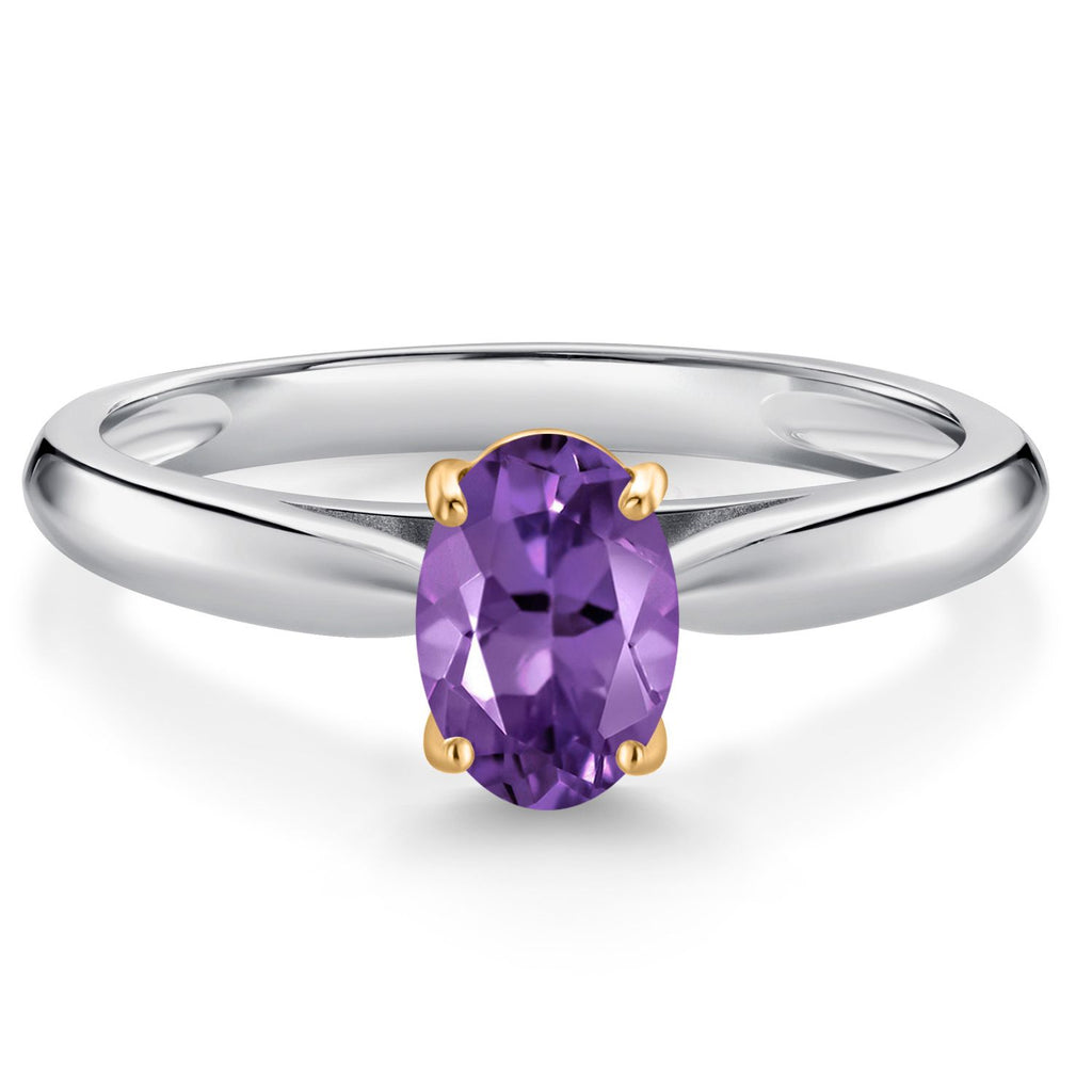 925 Sterling Silver and 10K Yellow Gold Gemstone Birthstone Solitaire Engagement Ring For Women | Oval 7X5MM | Wedding Anniversary Promise Ring For Women | Available In Size 5-9