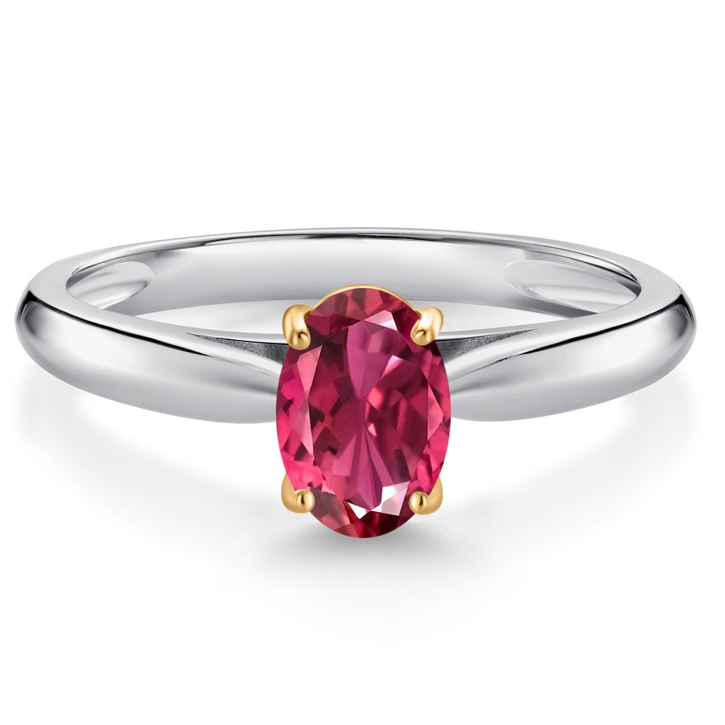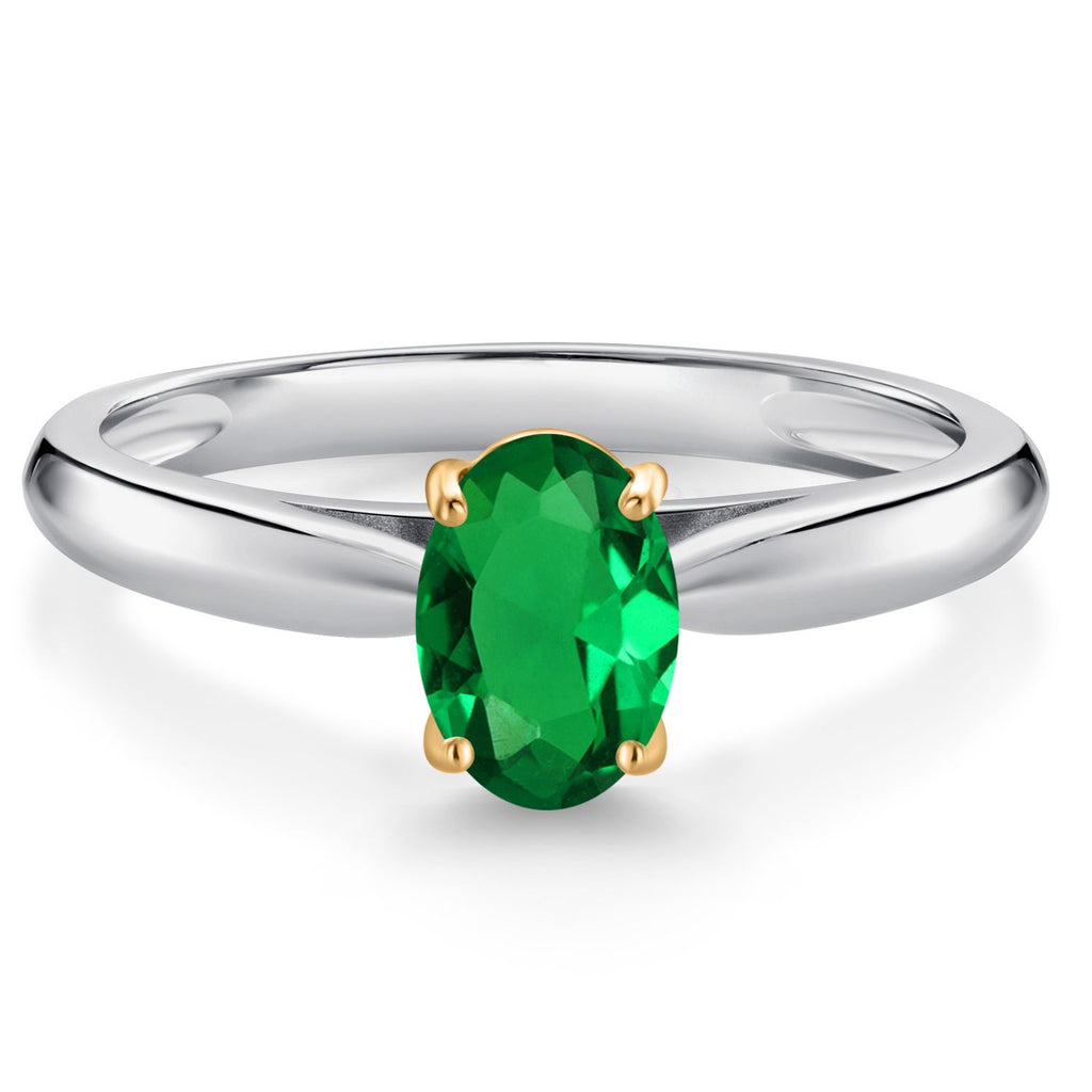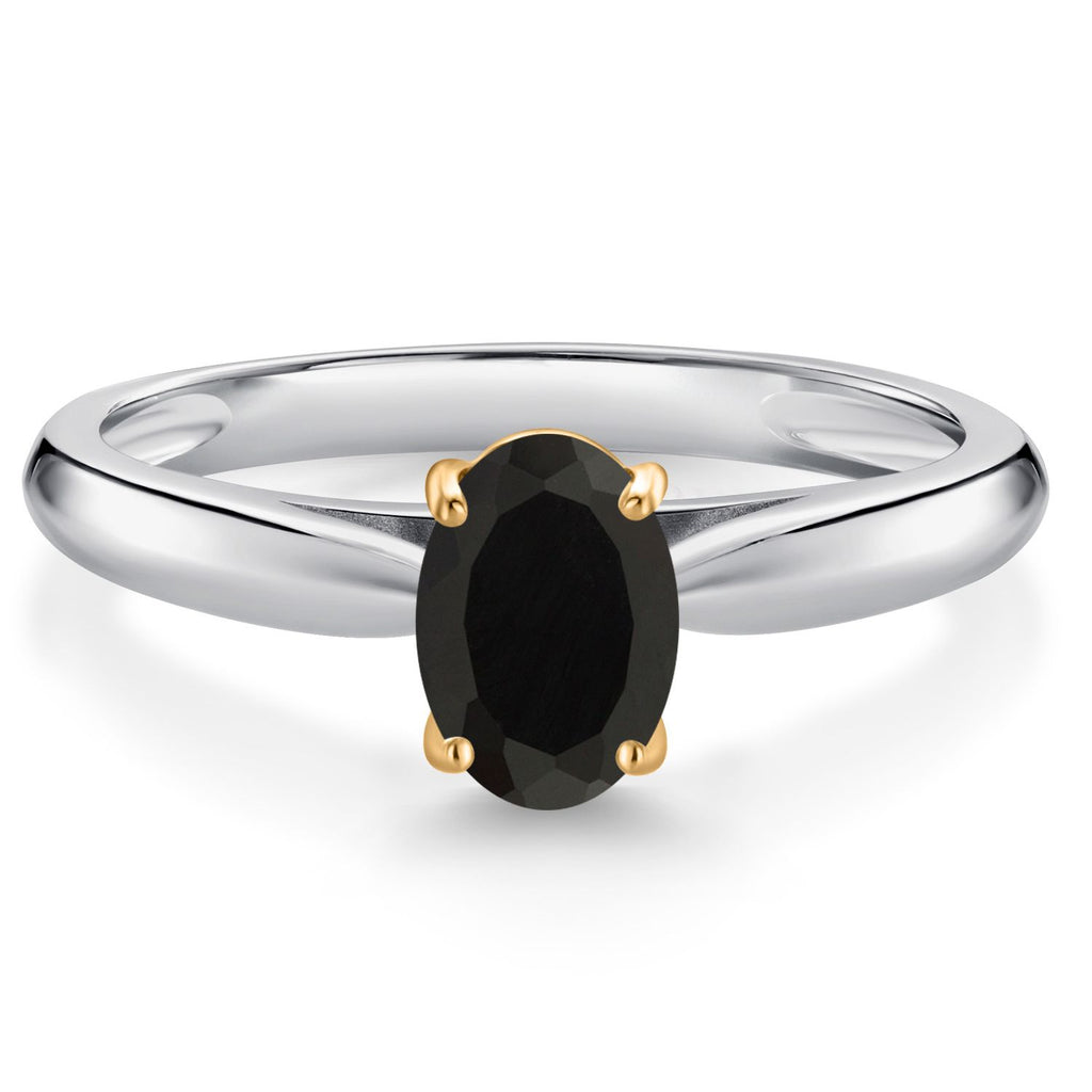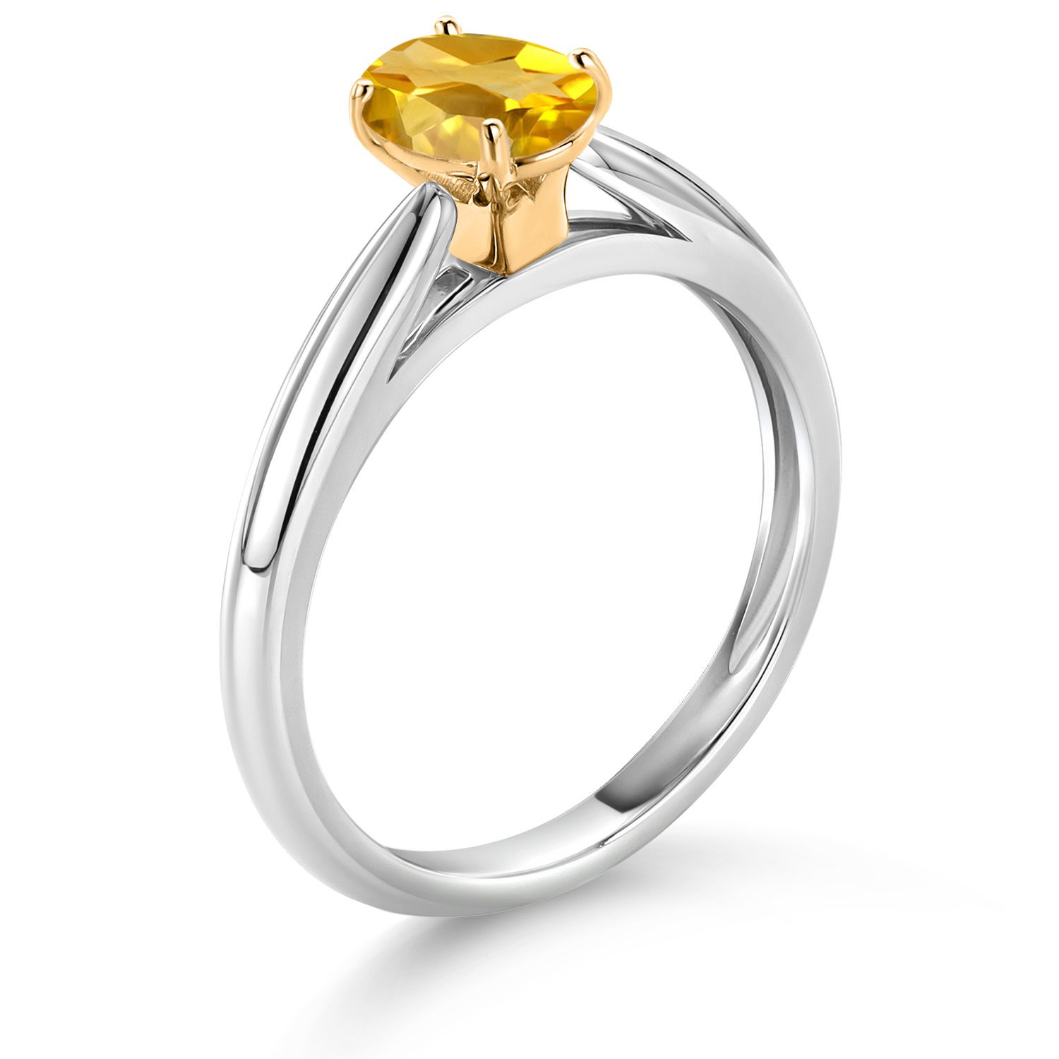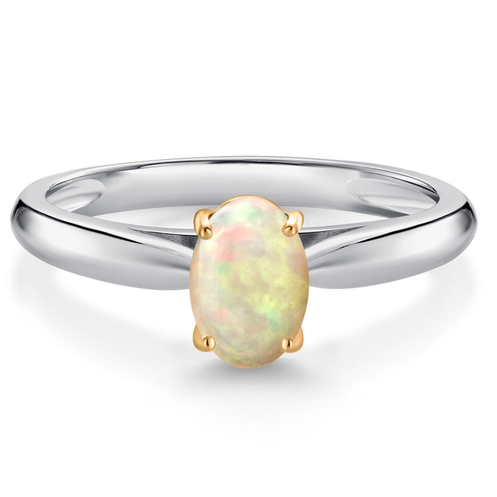 925 Sterling Silver and 10K Yellow Gold Gemstone Birthstone Solitaire Engagement Ring For Women | Oval 7X5MM | Wedding Anniversary Promise Ring For Women | Available In Size 5-9