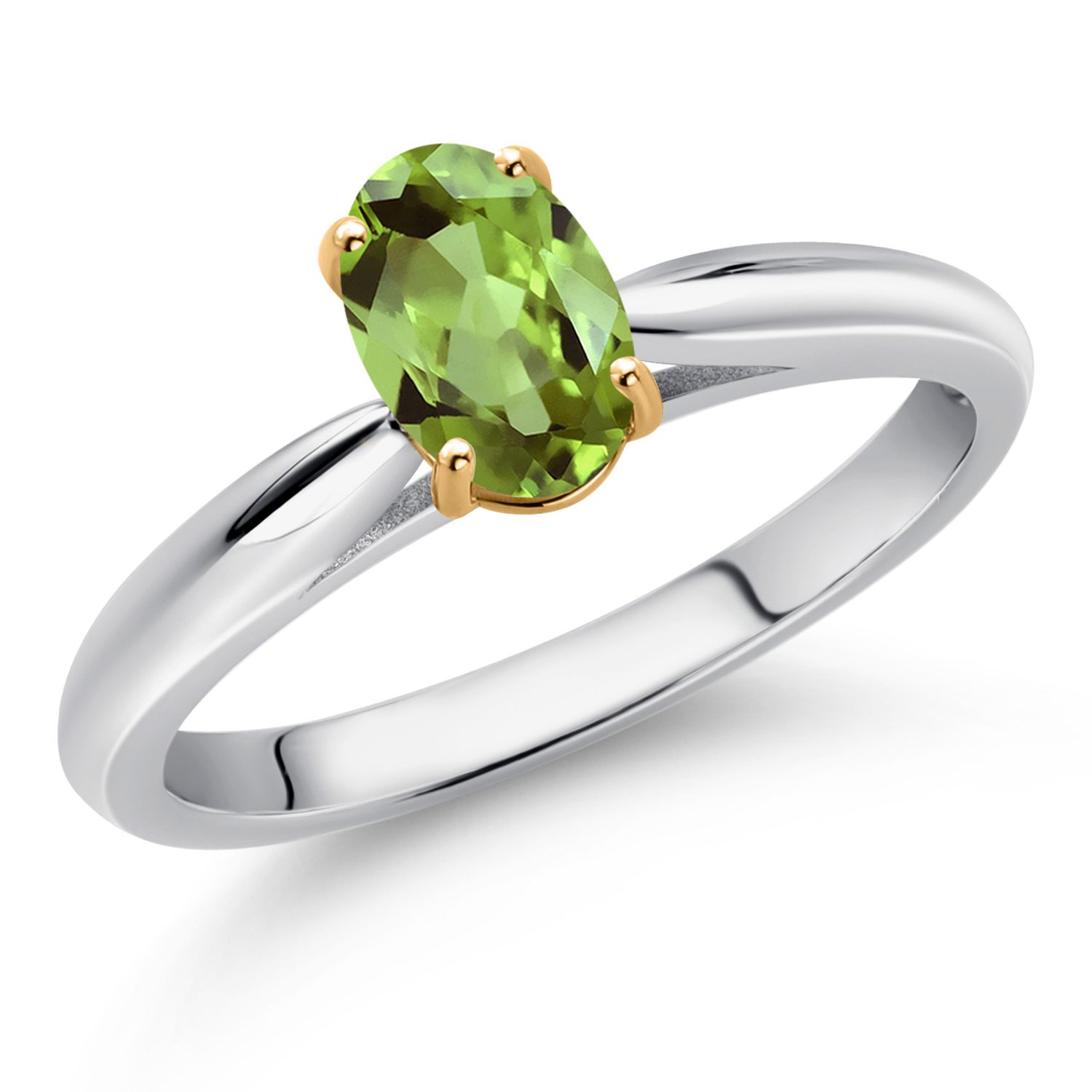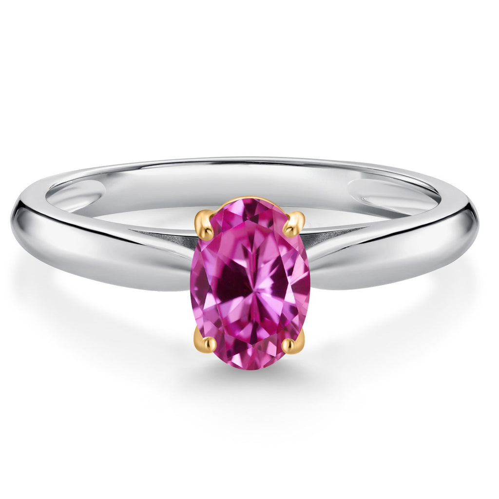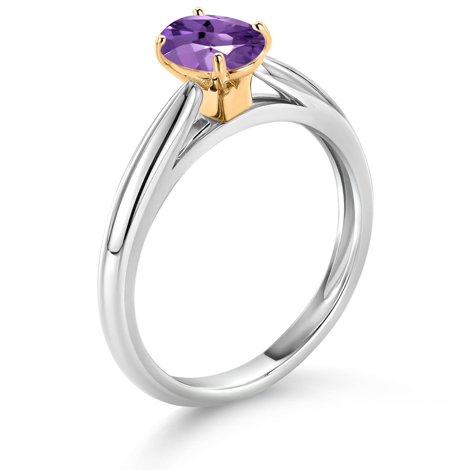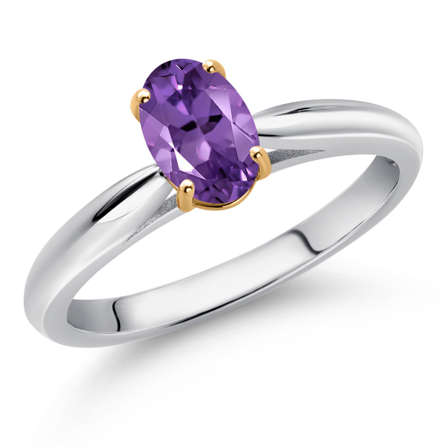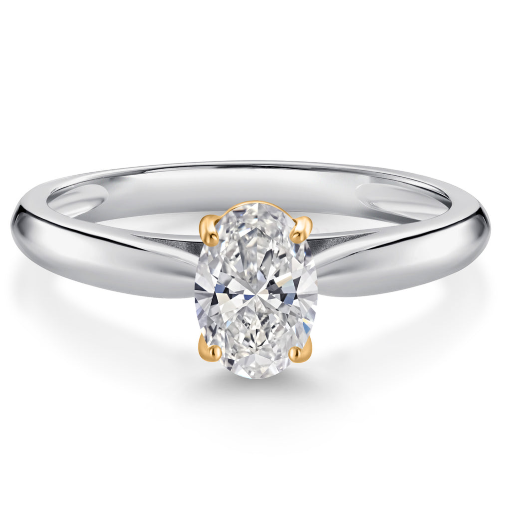925 Sterling Silver and 10K Yellow Gold Gemstone Birthstone Solitaire Engagement Ring For Women | Oval 7X5MM | Wedding Anniversary Promise Ring For Women | Available In Size 5-9