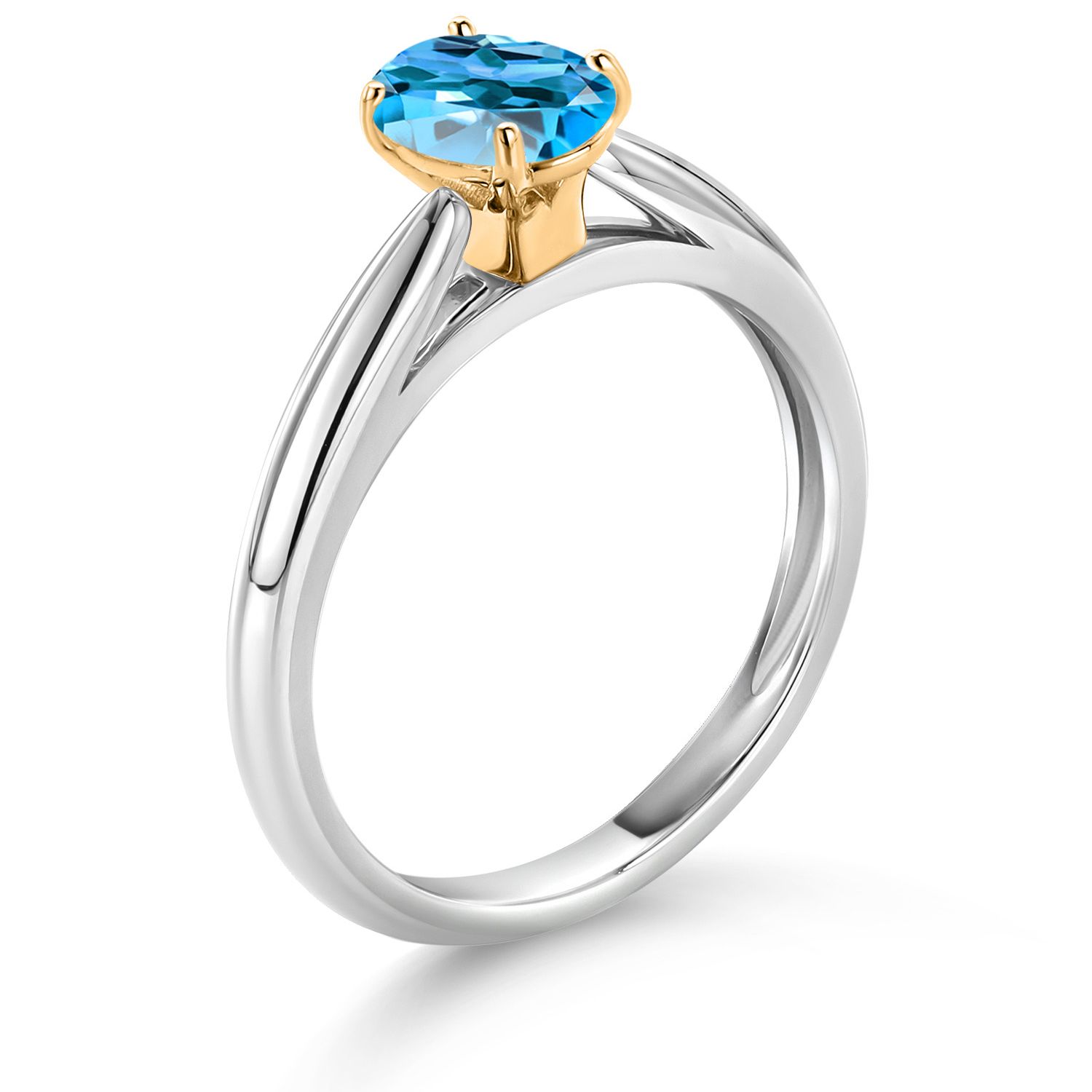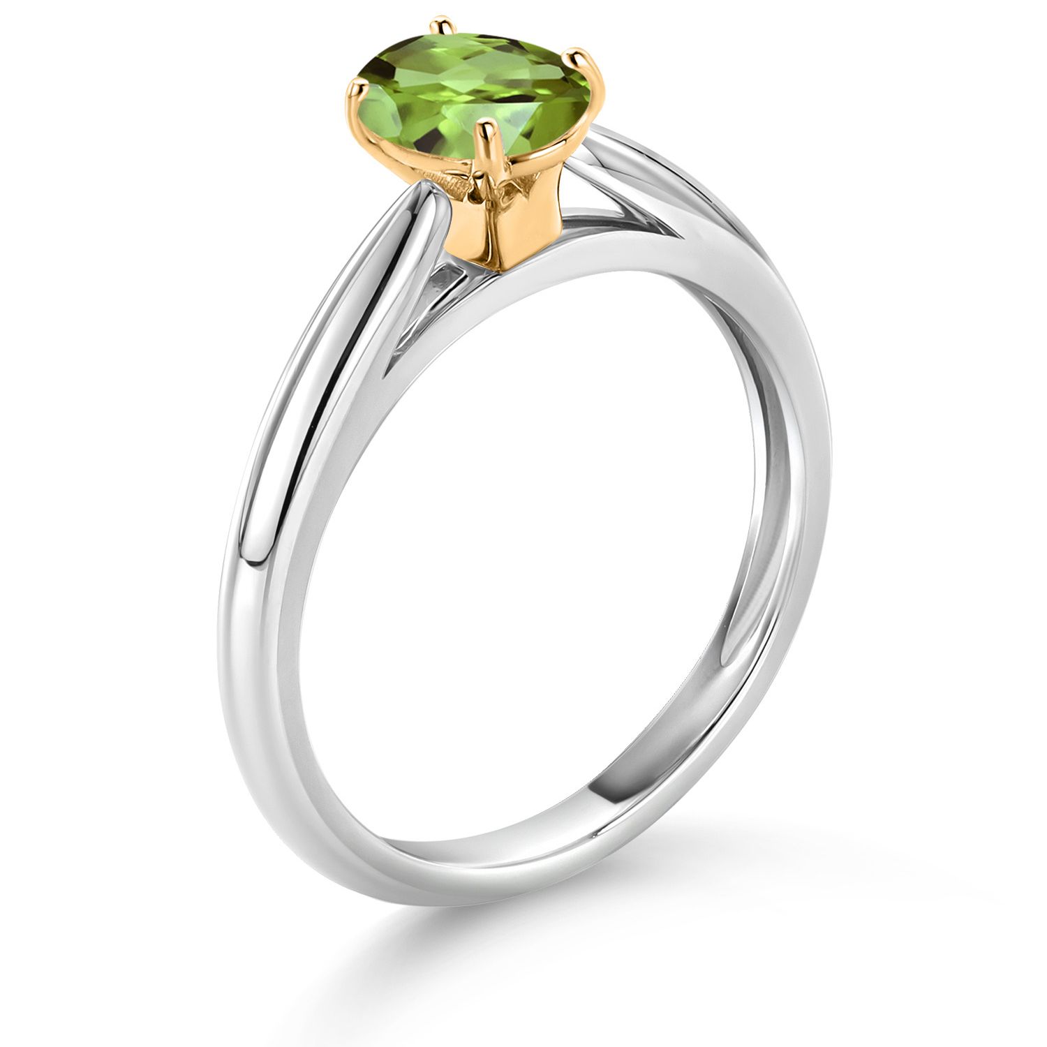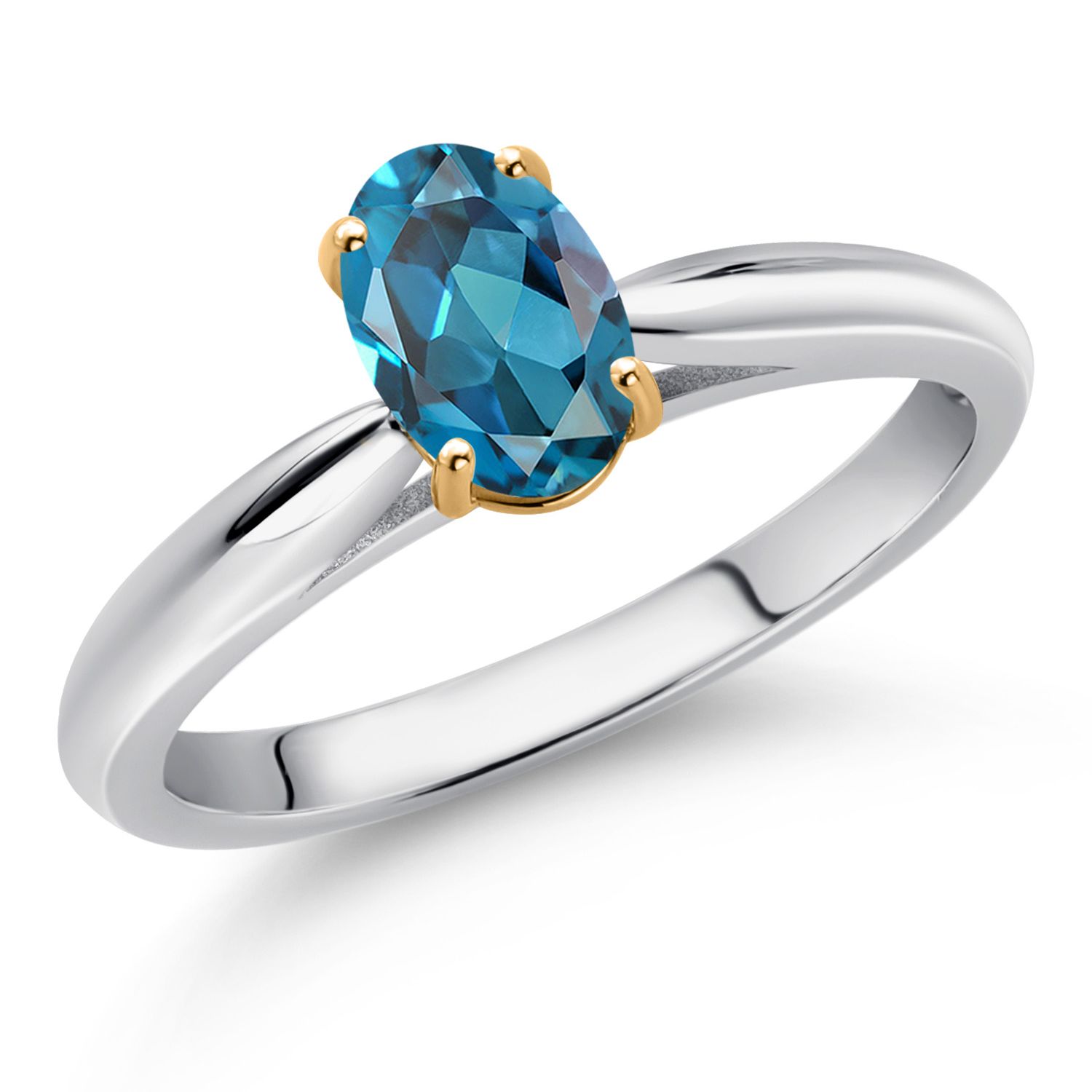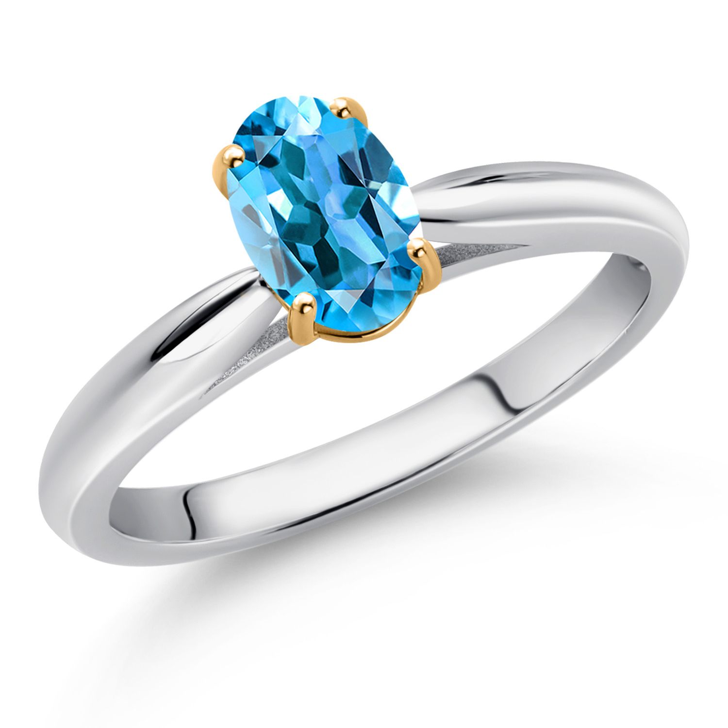 925 Sterling Silver and 10K Yellow Gold Gemstone Birthstone Solitaire Engagement Ring For Women | Oval 7X5MM | Wedding Anniversary Promise Ring For Women | Available In Size 5-9