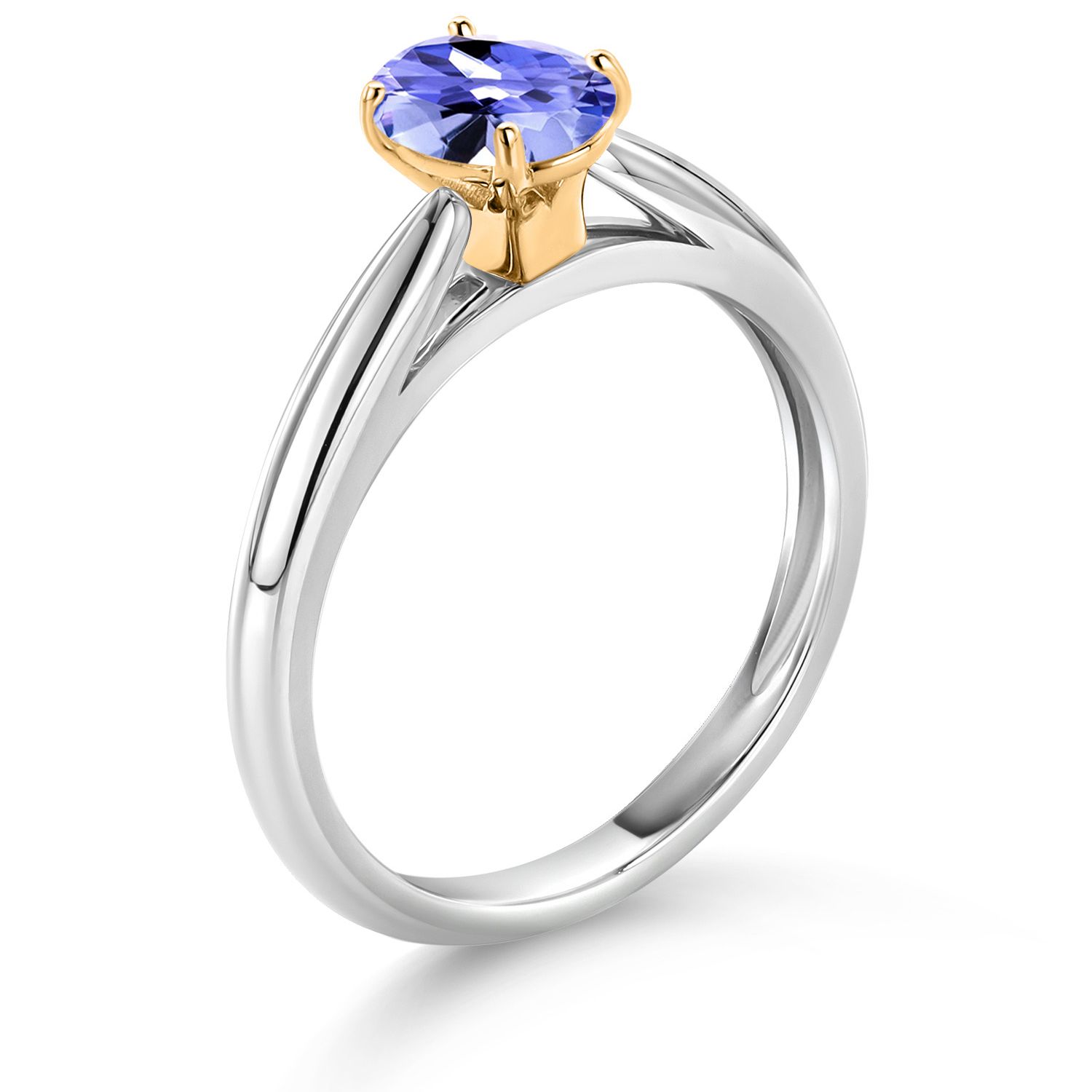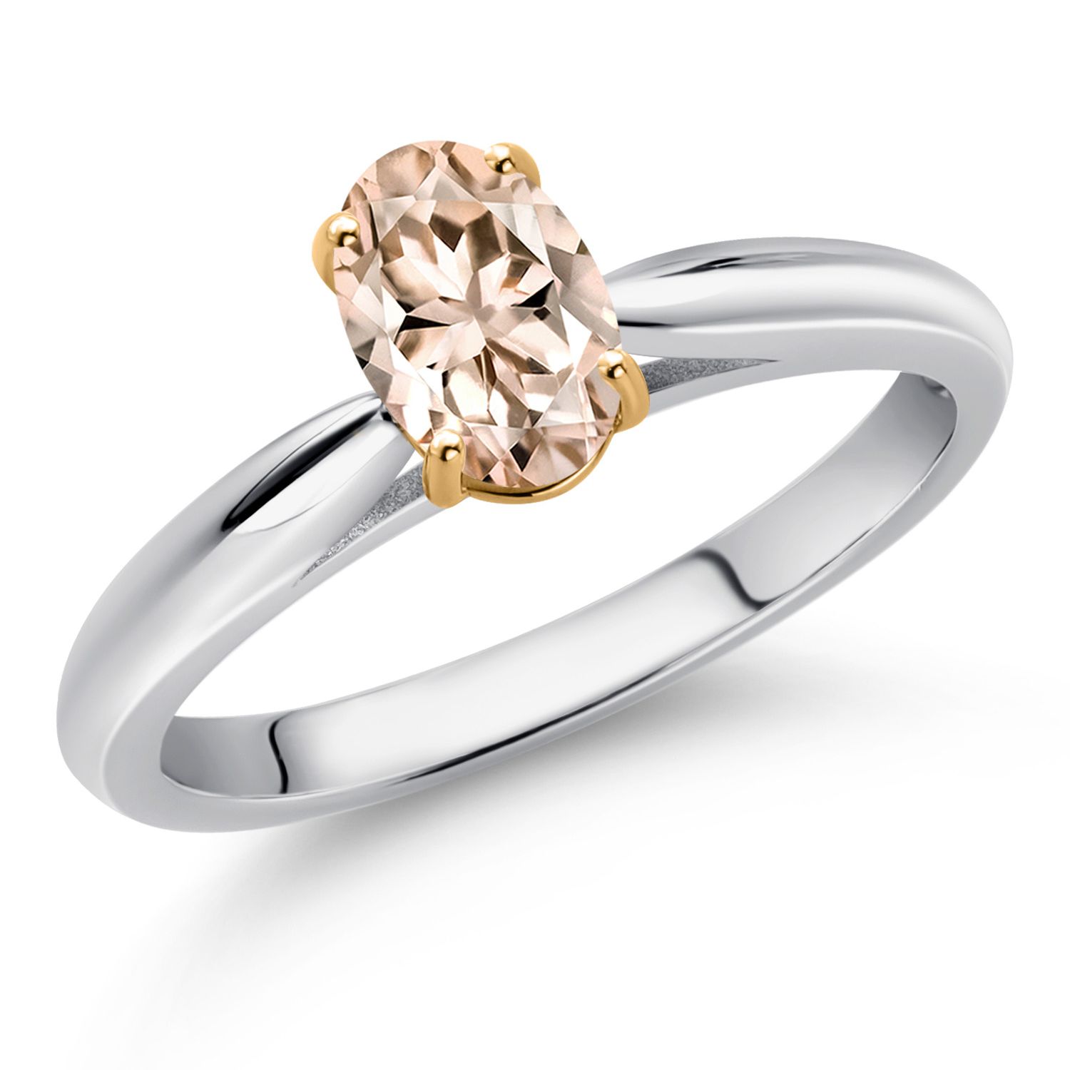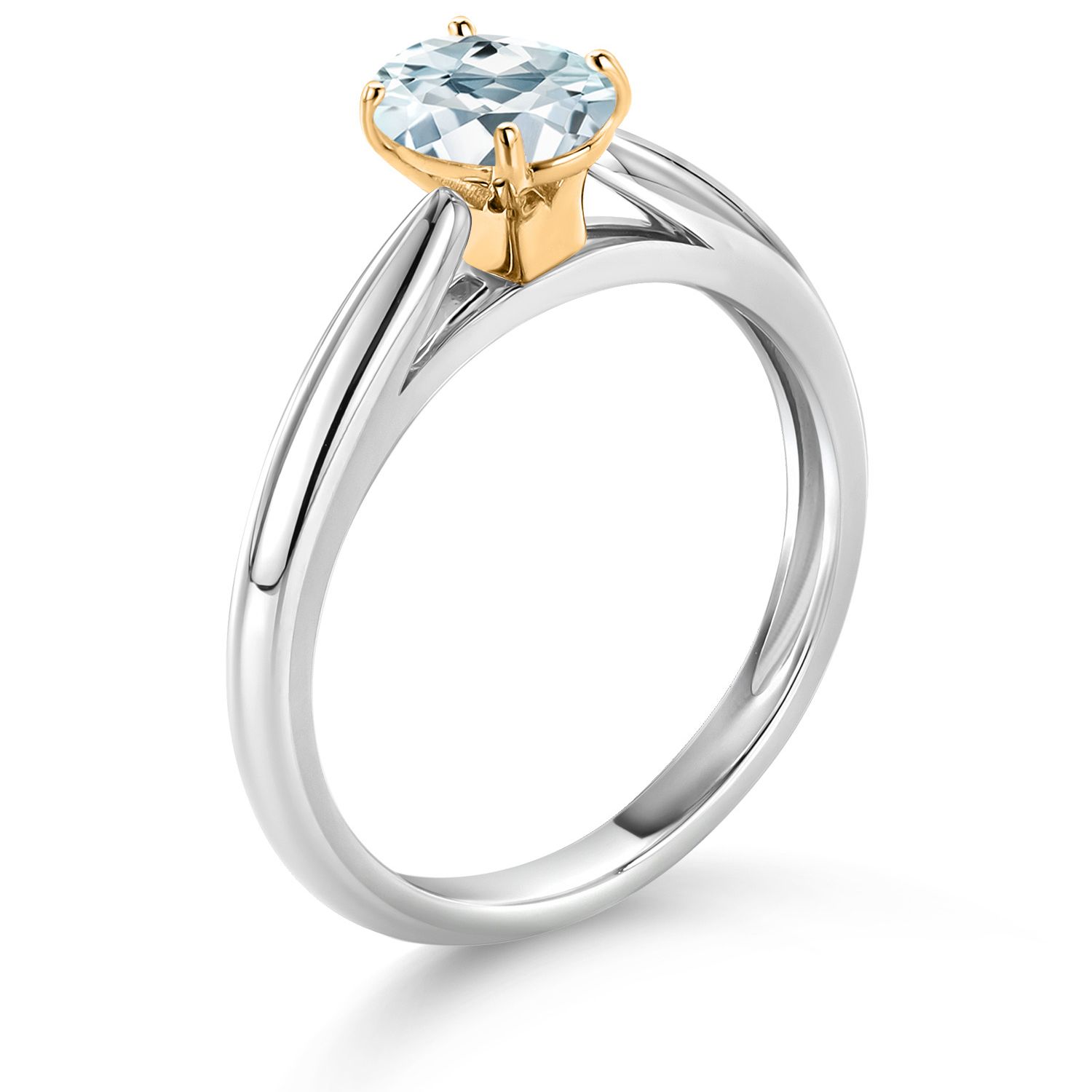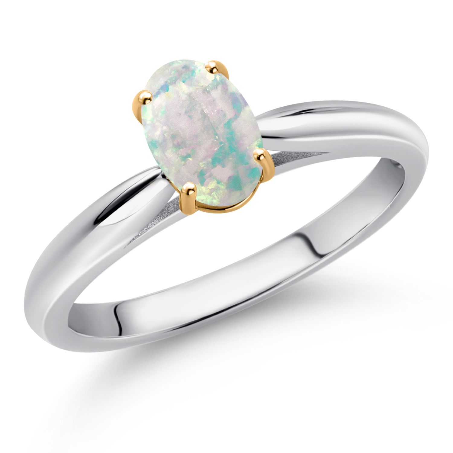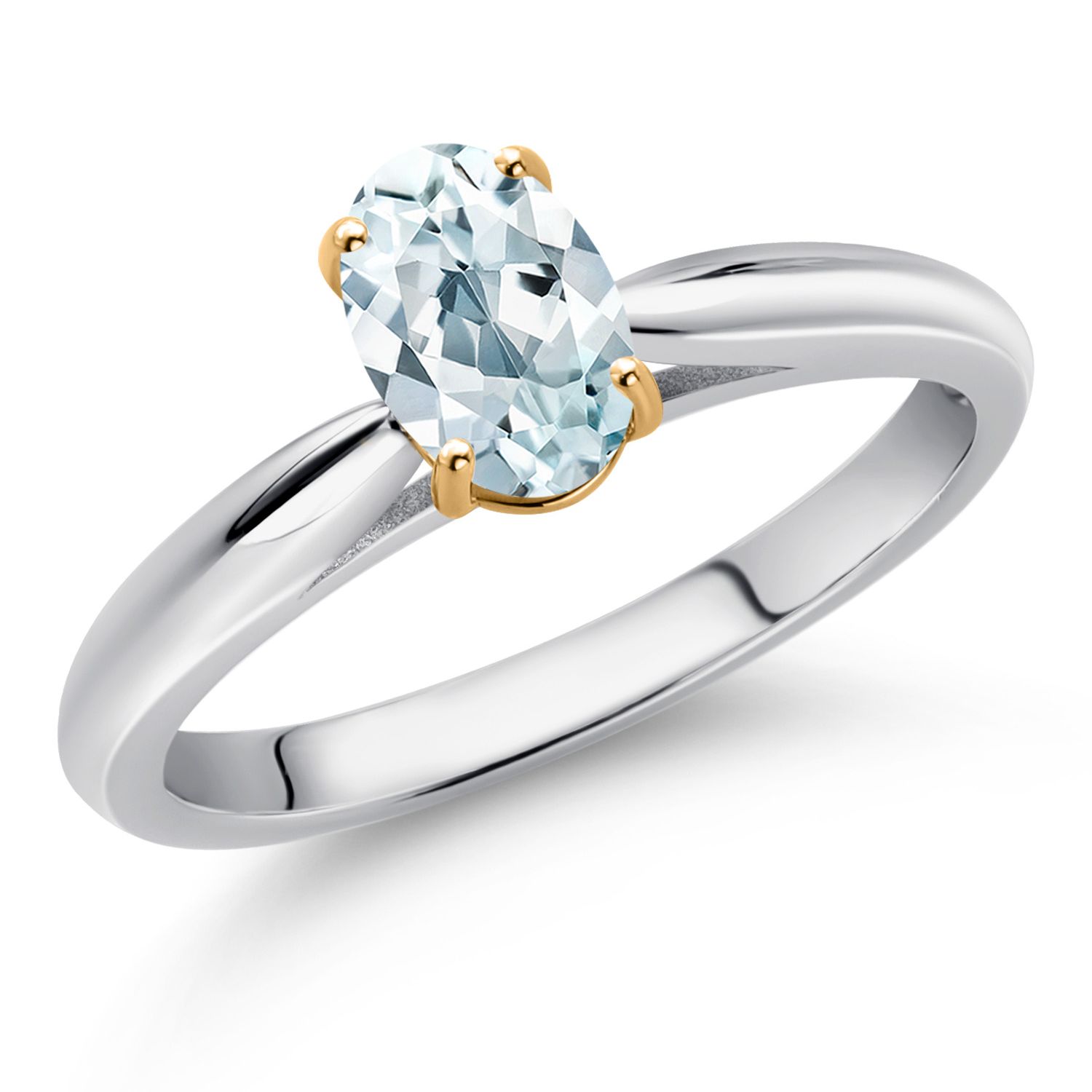 925 Sterling Silver and 10K Yellow Gold Gemstone Birthstone Solitaire Engagement Ring For Women | Oval 7X5MM | Wedding Anniversary Promise Ring For Women | Available In Size 5-9