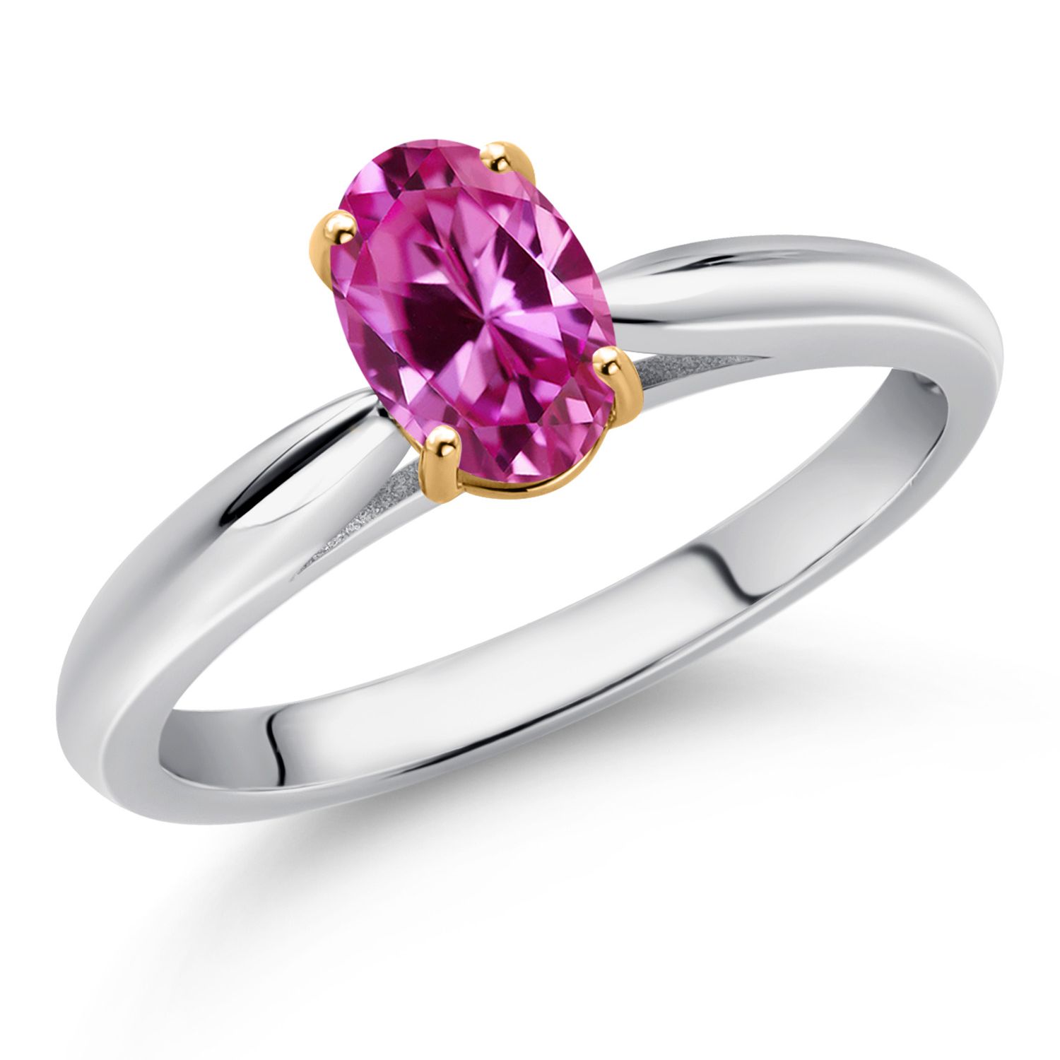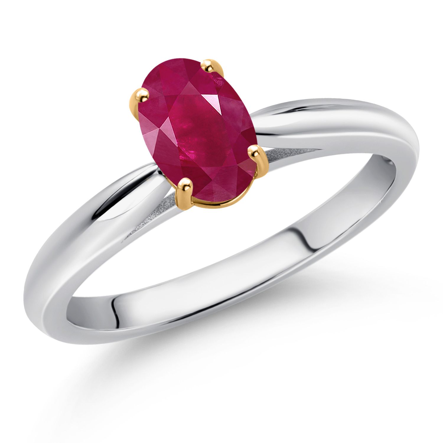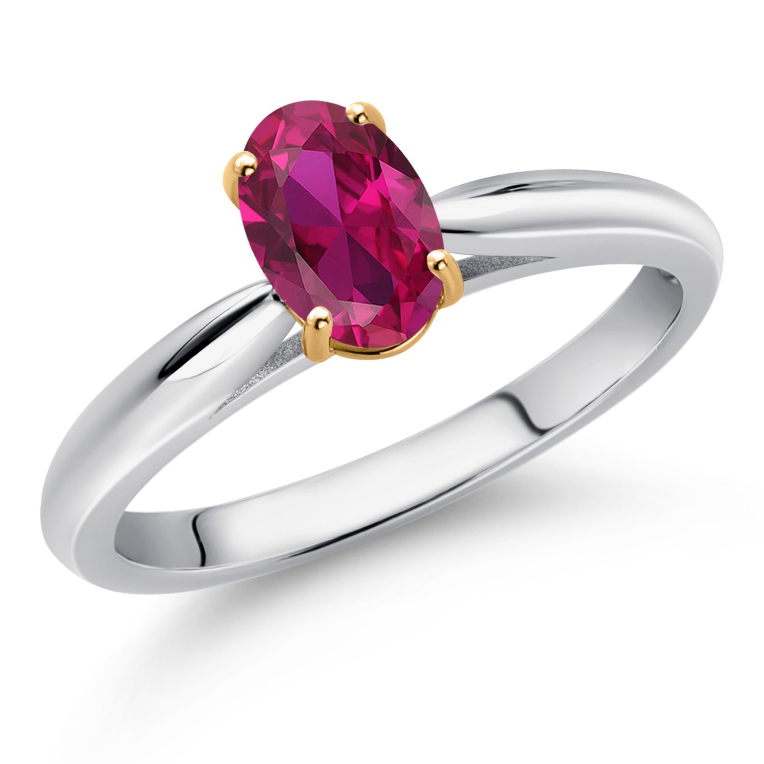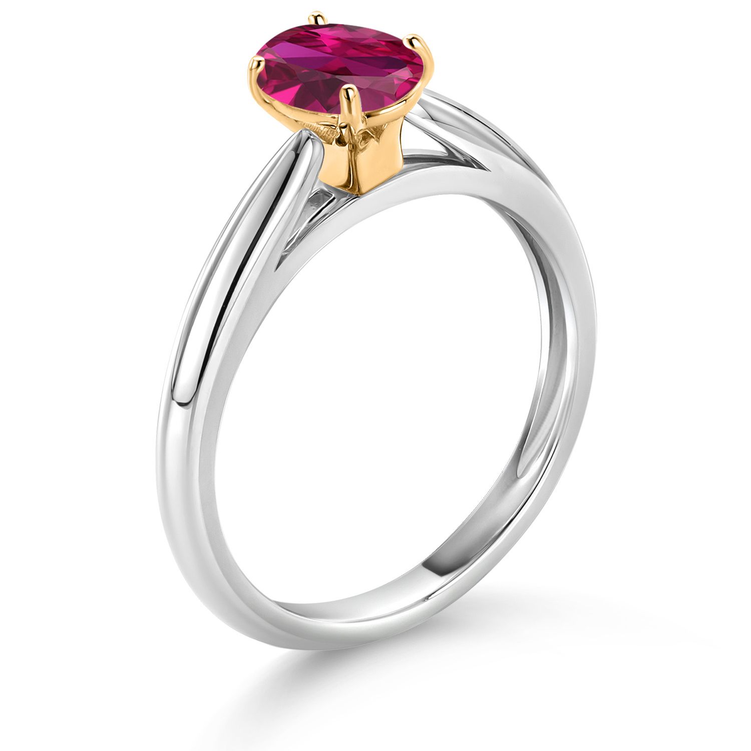 925 Sterling Silver and 10K Yellow Gold Gemstone Birthstone Solitaire Engagement Ring For Women | Oval 7X5MM | Wedding Anniversary Promise Ring For Women | Available In Size 5-9
