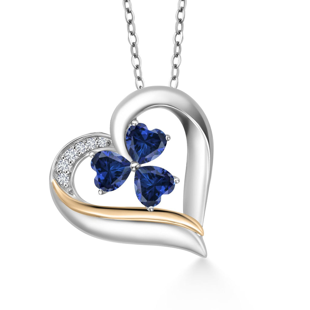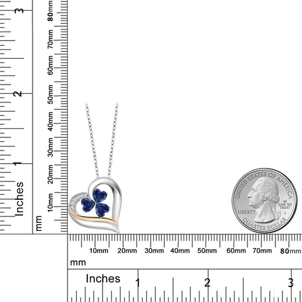 925 Sterling Silver and 10k Yellow Gold Blue Created Sapphire and White Lab Grown Diamond 3-Stone Pendant Necklace For Women 1.54 Cttw, Heart Shape 5MM, 18 Inch Chain