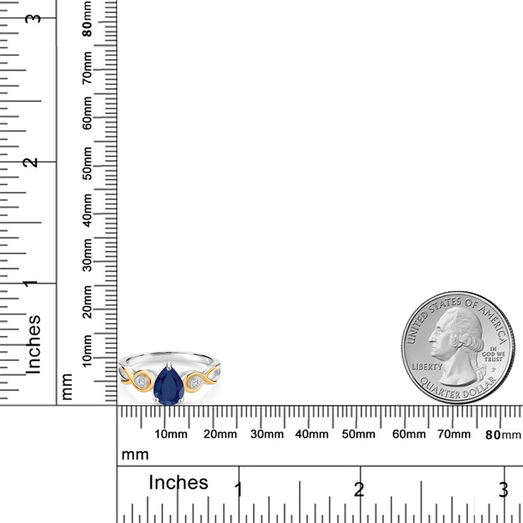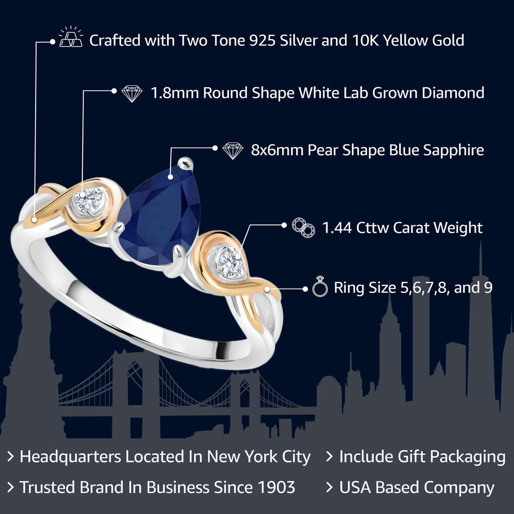 EXQUISITE GEMSTONE COMBINATION: This ring features a stunning pear-shaped blue sapphire measuring 8x6mm. The rich blue hue is complemented by the brilliance of lab-grown white diamonds, totaling 1.44 Cttw. It's a harmonious blend of natural and lab-grown gemstones.