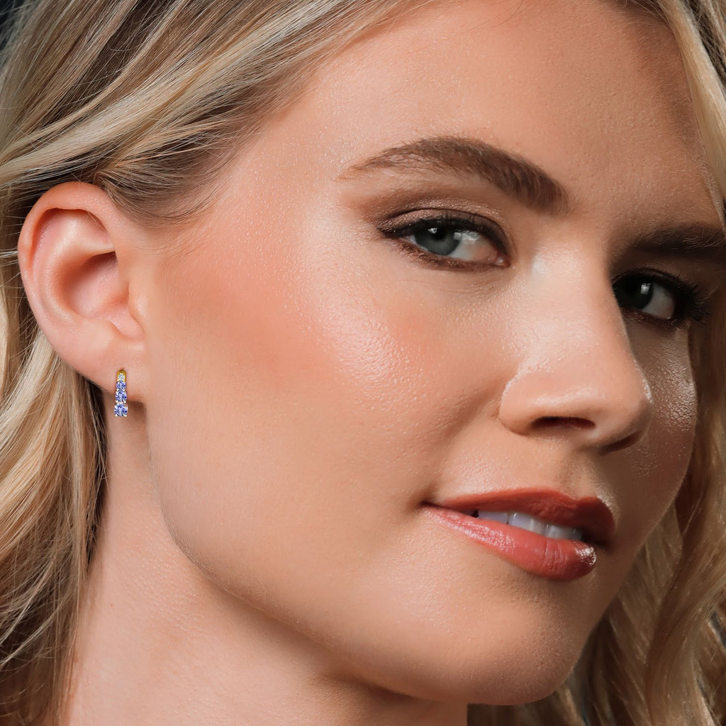 DELICATE MULTI-GEMSTONE DESIGN: These elegant earrings feature a trio of sparkling gemstones 3MM 2.5MM and 2MM Round Blue Tanzanite, complemented by White Created Moissanite, totaling 0.54 Cttw, for a refined and sophisticated look.