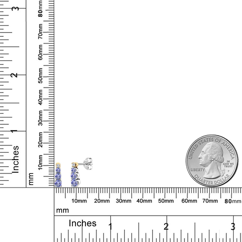 925 Sterling Silver and 10K Yellow Gold Blue Tanzanite and Created Moissanite Earrings For Women (0.54 Cttw, Gemstone Birthstone, Round 3MM, 2.5MM and 2MM)