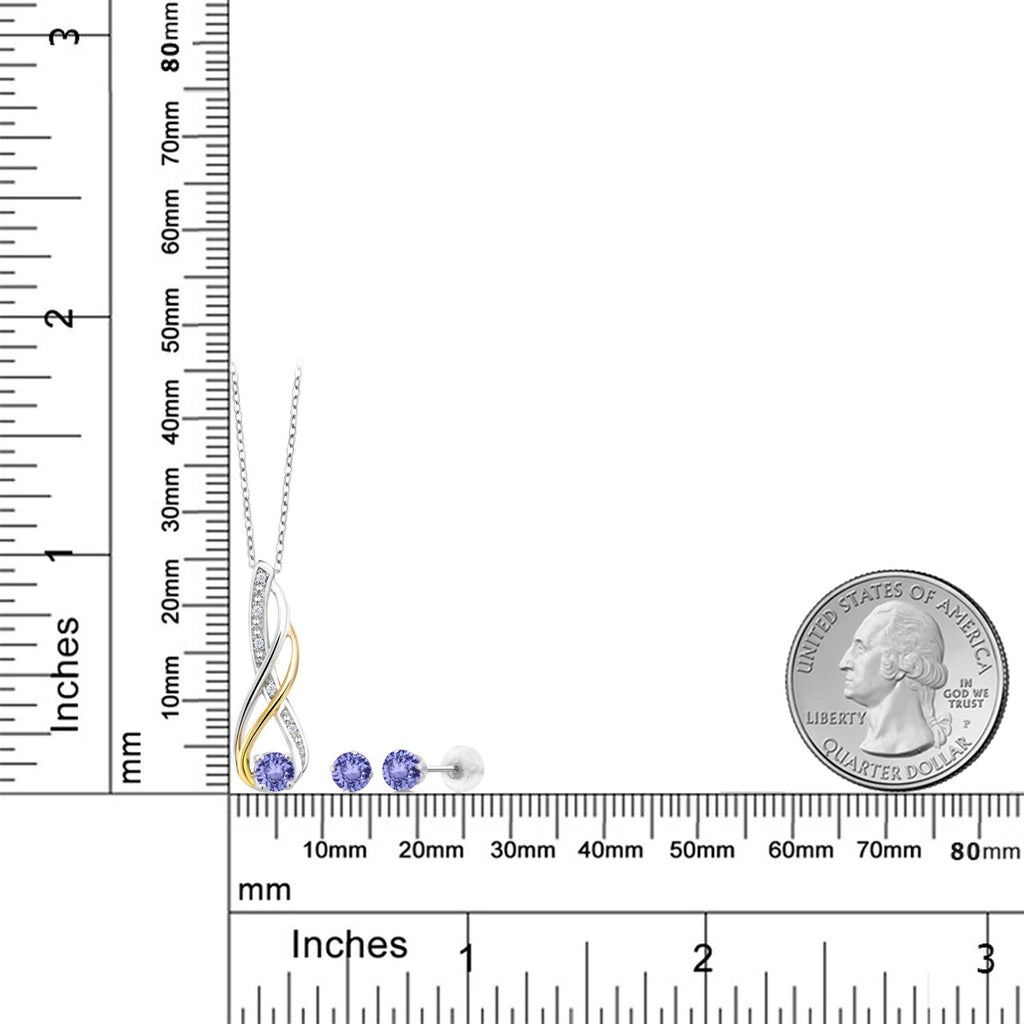 925 Sterling Silver and 10K Yellow Gold Blue Tanzanite and Diamond Pendant and Earrings Jewelry Set For Women (0.94 Cttw, Gemstone Birthstone, with 18 Inch Chain)