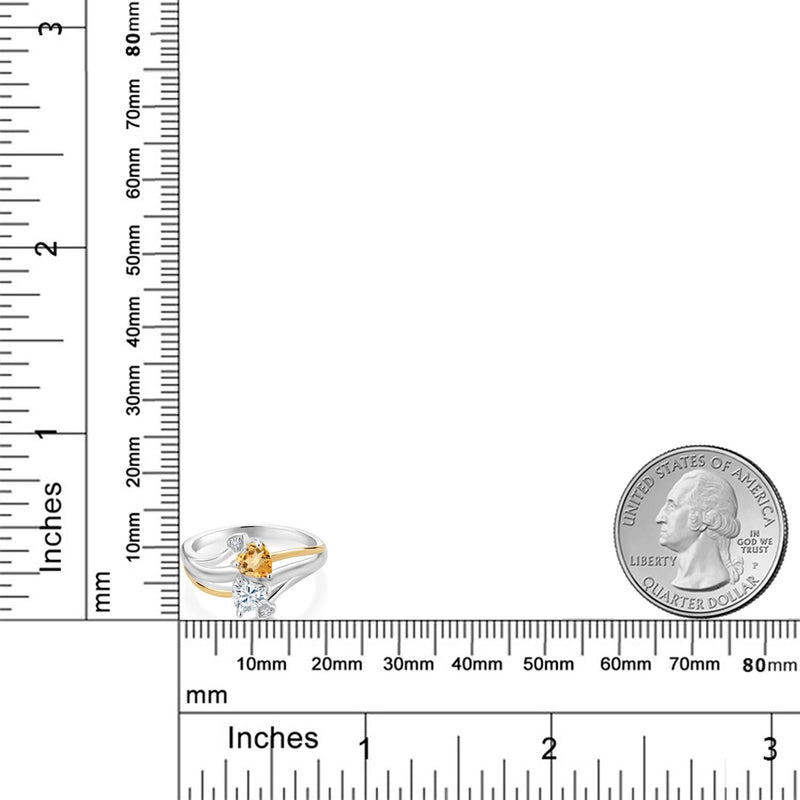 Gem Stone King 925 Sterling Silver and 10K Yellow Gold Citrine Moissanite and Lab Grown Diamond 2 Heart Promise Engagement Mother Ring (0.90 Cttw, Birthstone, Size 8)