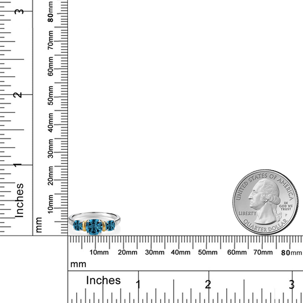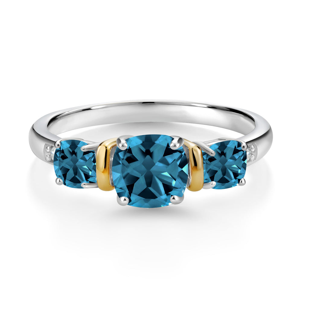 STRIKING LONDON BLUE TOPAZ: This stunning ring showcases a cushion-cut London blue topaz gemstone (6MM and 4MM), radiating a deep and captivating blue hue. The London blue topaz is known for its intense color and adds a touch of sophistication to the design. Total Carat Weight is 1.9 cttw.