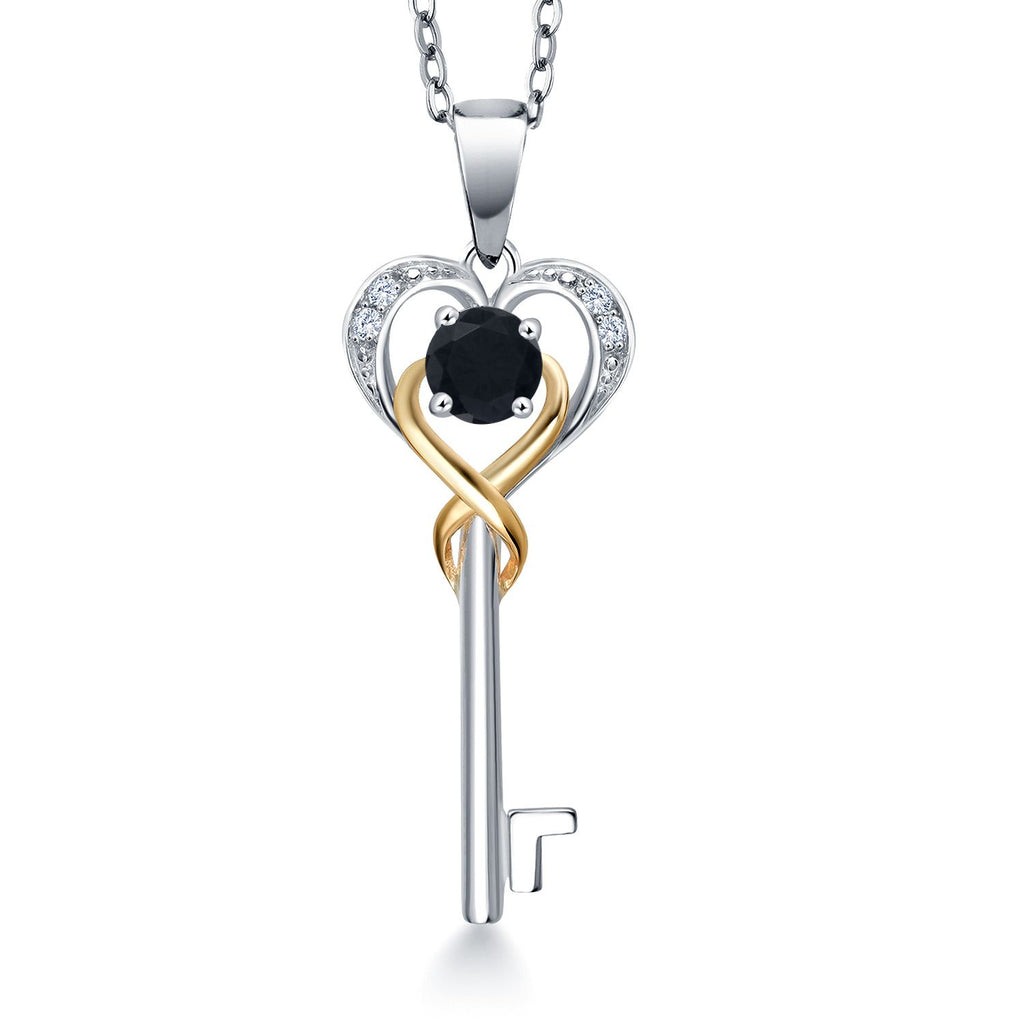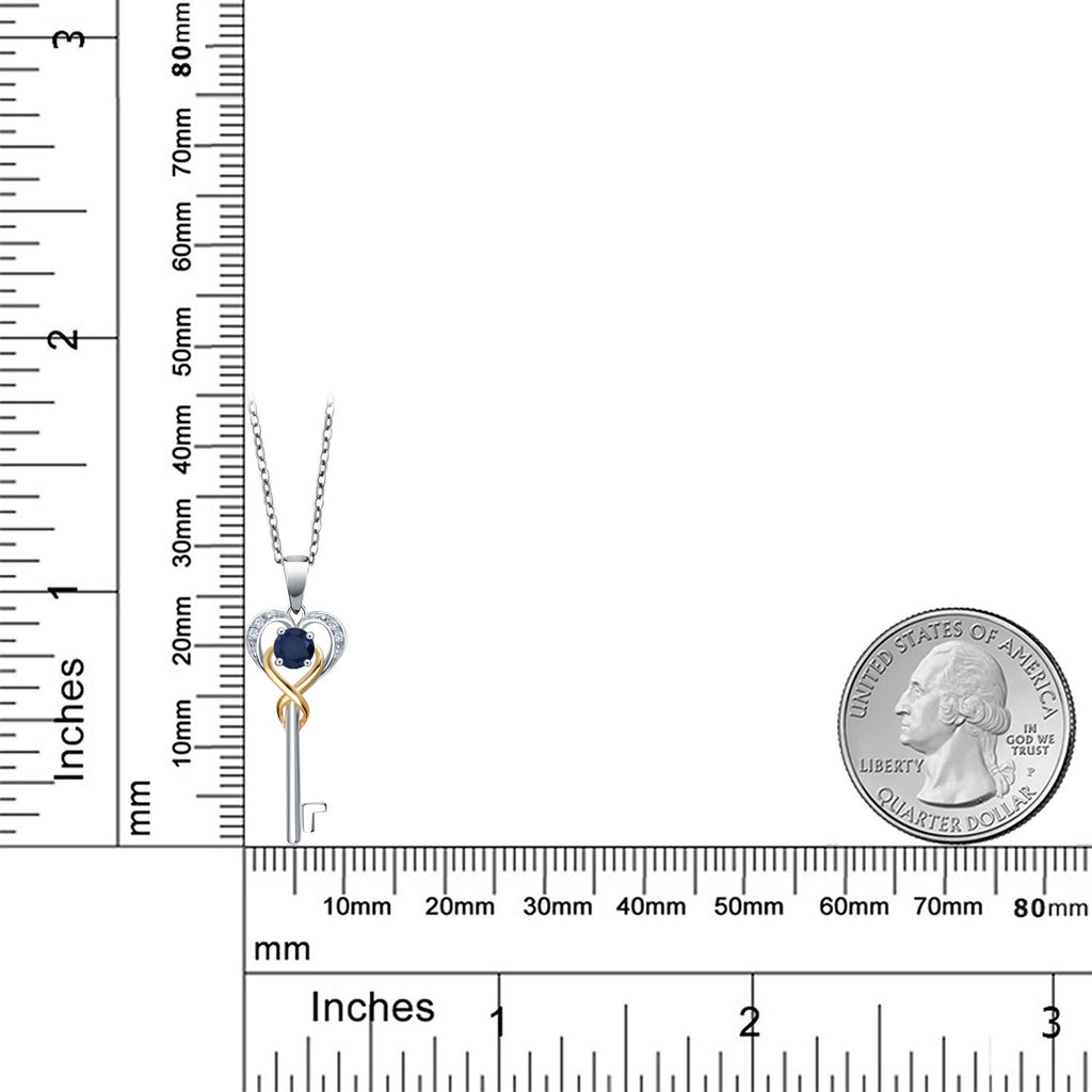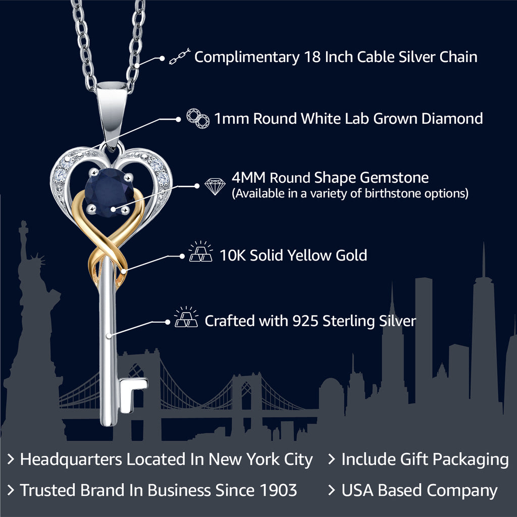 Heart Key Necklace For Women | 4MM Round Gemstone Birthstone and Lab Grown Diamond | 925 Sterling Silver and 10K Yellow Gold | Love Pendant Necklace | With 18 Inch Chain
