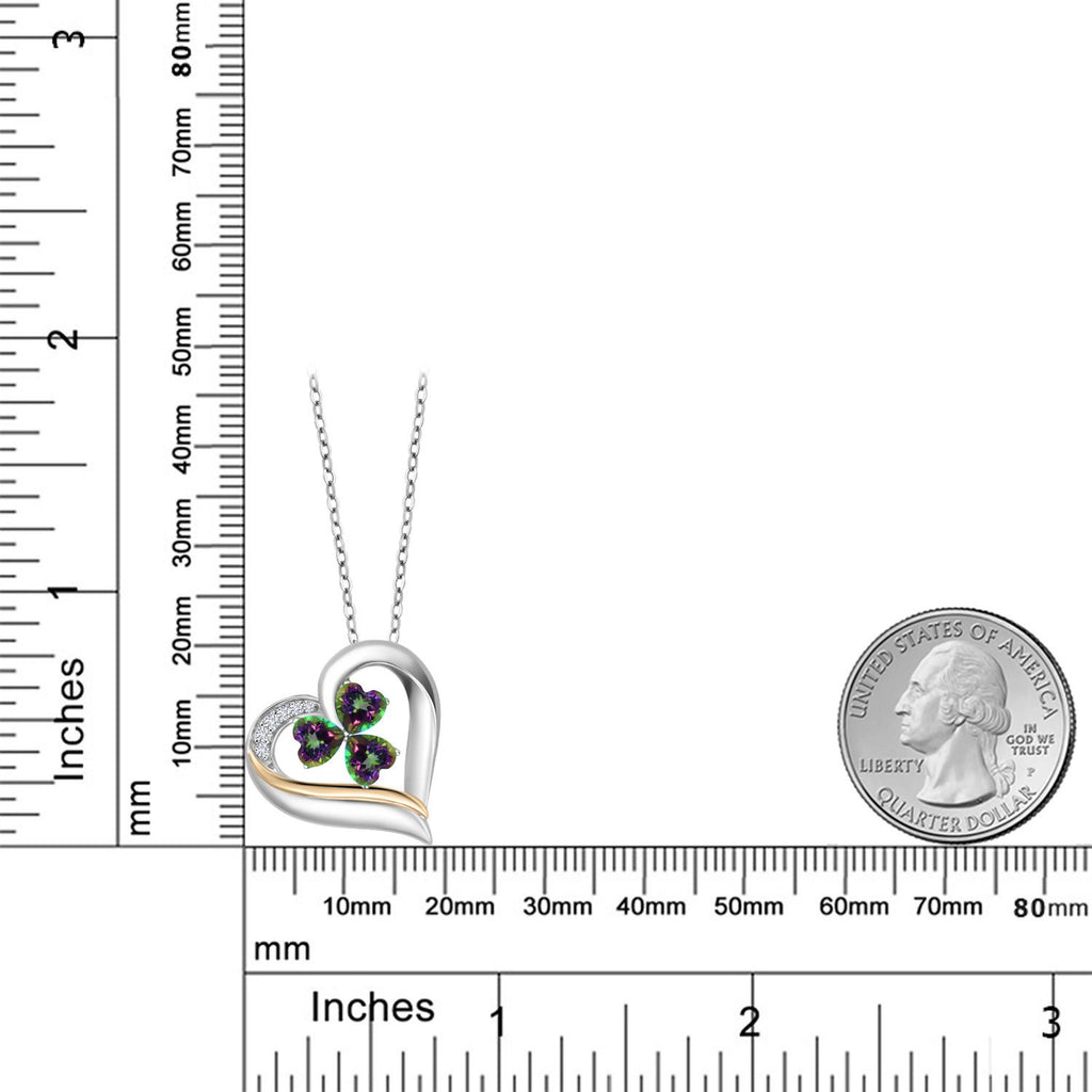 925 Sterling Silver and 10k Yellow Gold Green Mystic Topaz and White Lab Grown Diamond 3-Stone Pendant Necklace For Women (1.84 Cttw, Heart Shape 5MM, 18 Inch Chain)