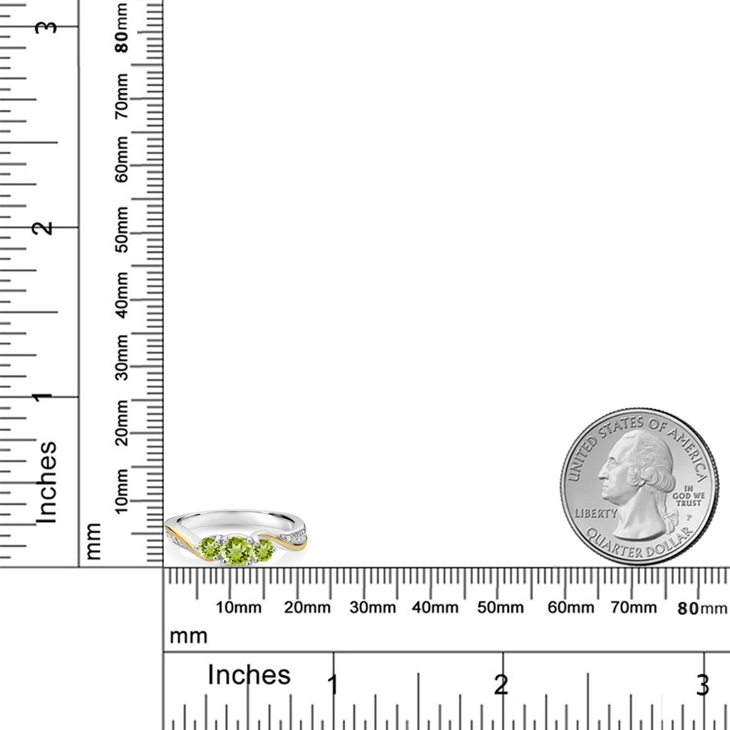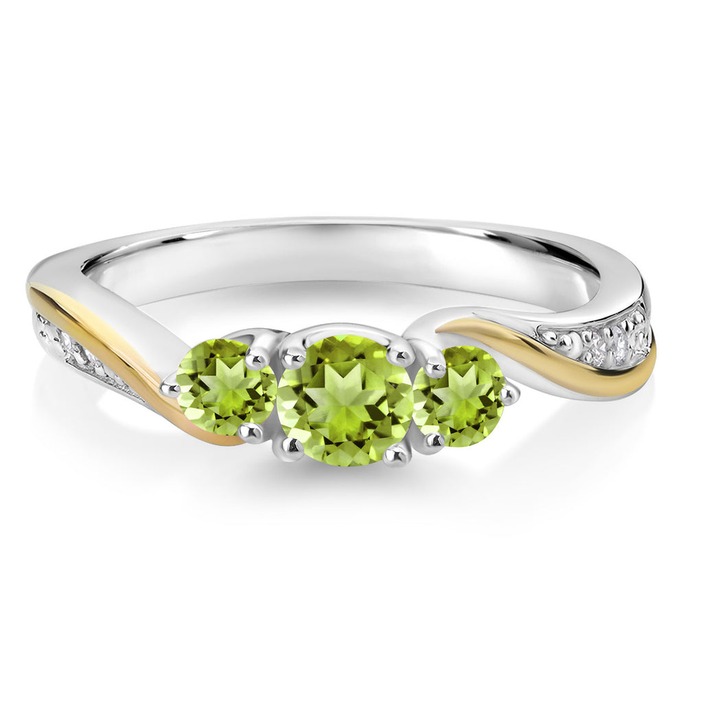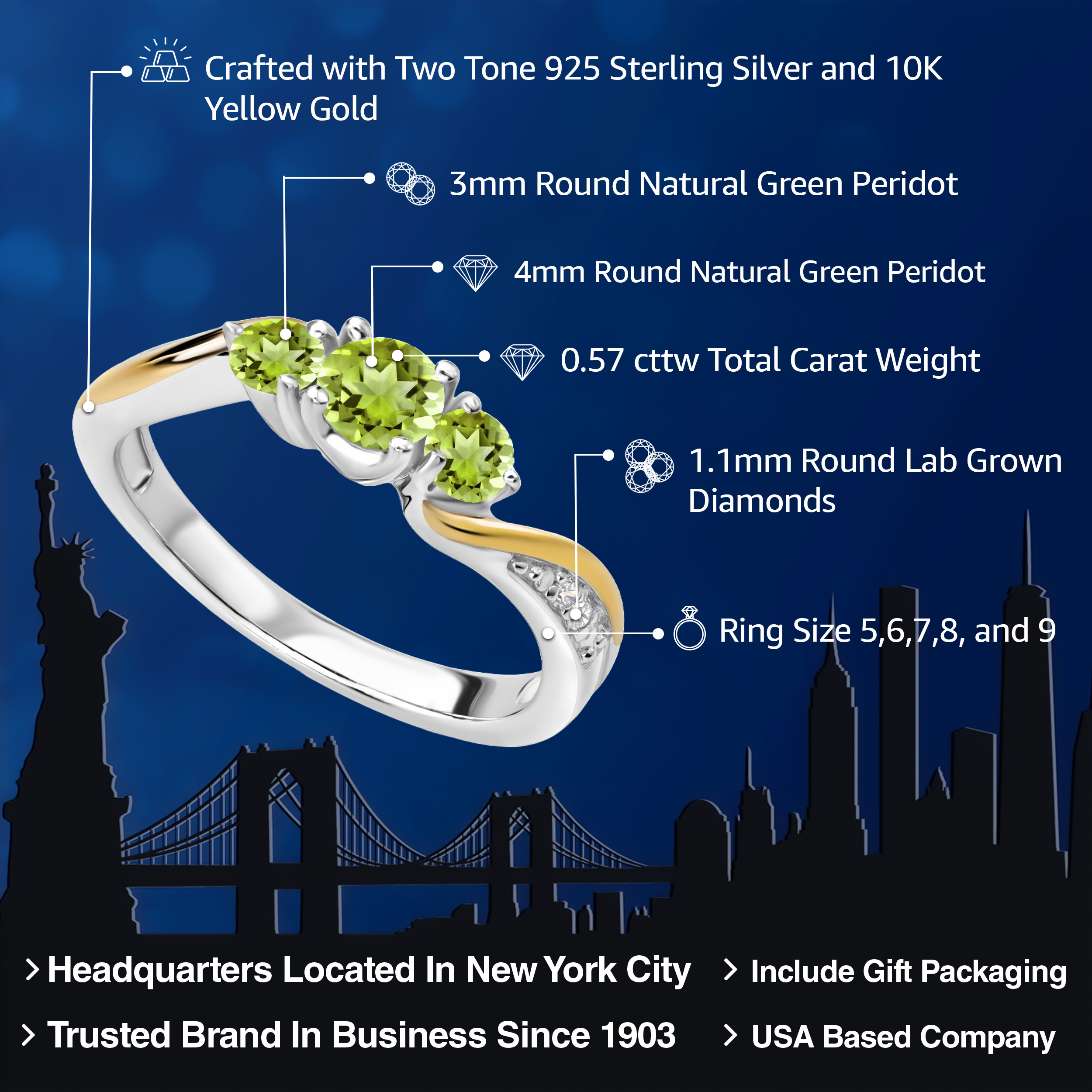 925 Sterling Silver and 10K Yellow Gold Green Peridot and White Lab Grown Diamond 3 Stone Engagement Ring For Women (0.57 Cttw, Gemstone August Birthstone)