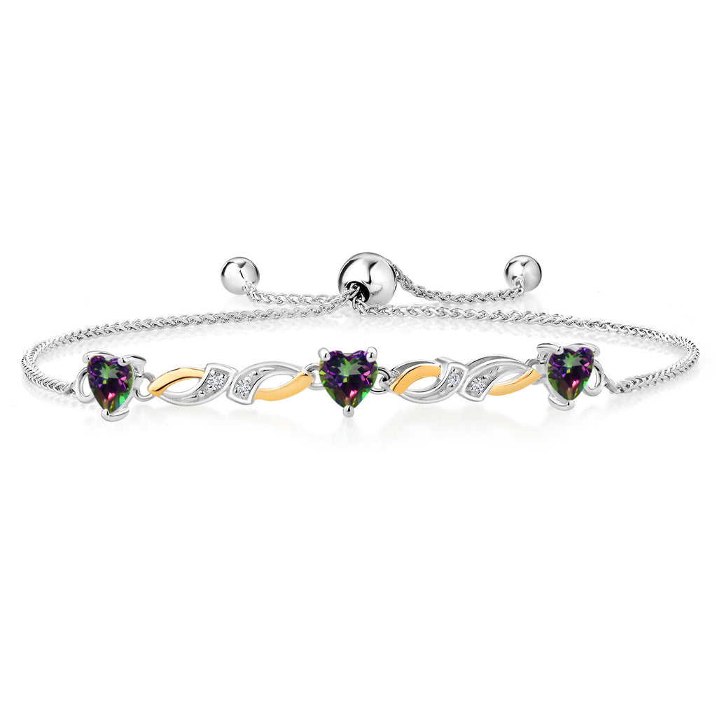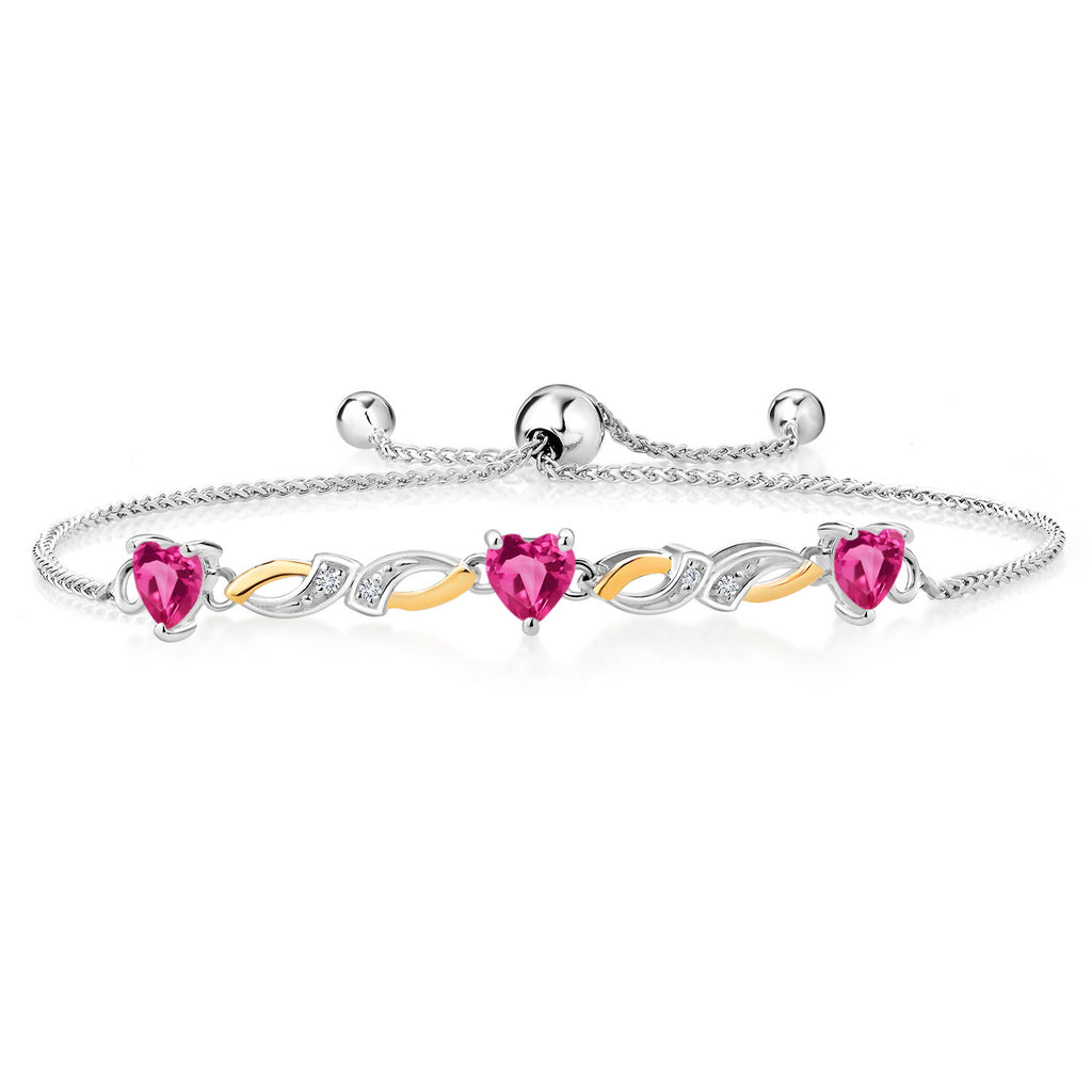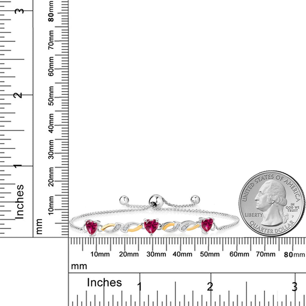 5MM Heart Shape Gemstone Birthstone and White Lab Grown Diamond Tennis Bracelet For Women | 925 Silver and 10K Yellow Gold | Adjustable Bolo Bracelet For Women