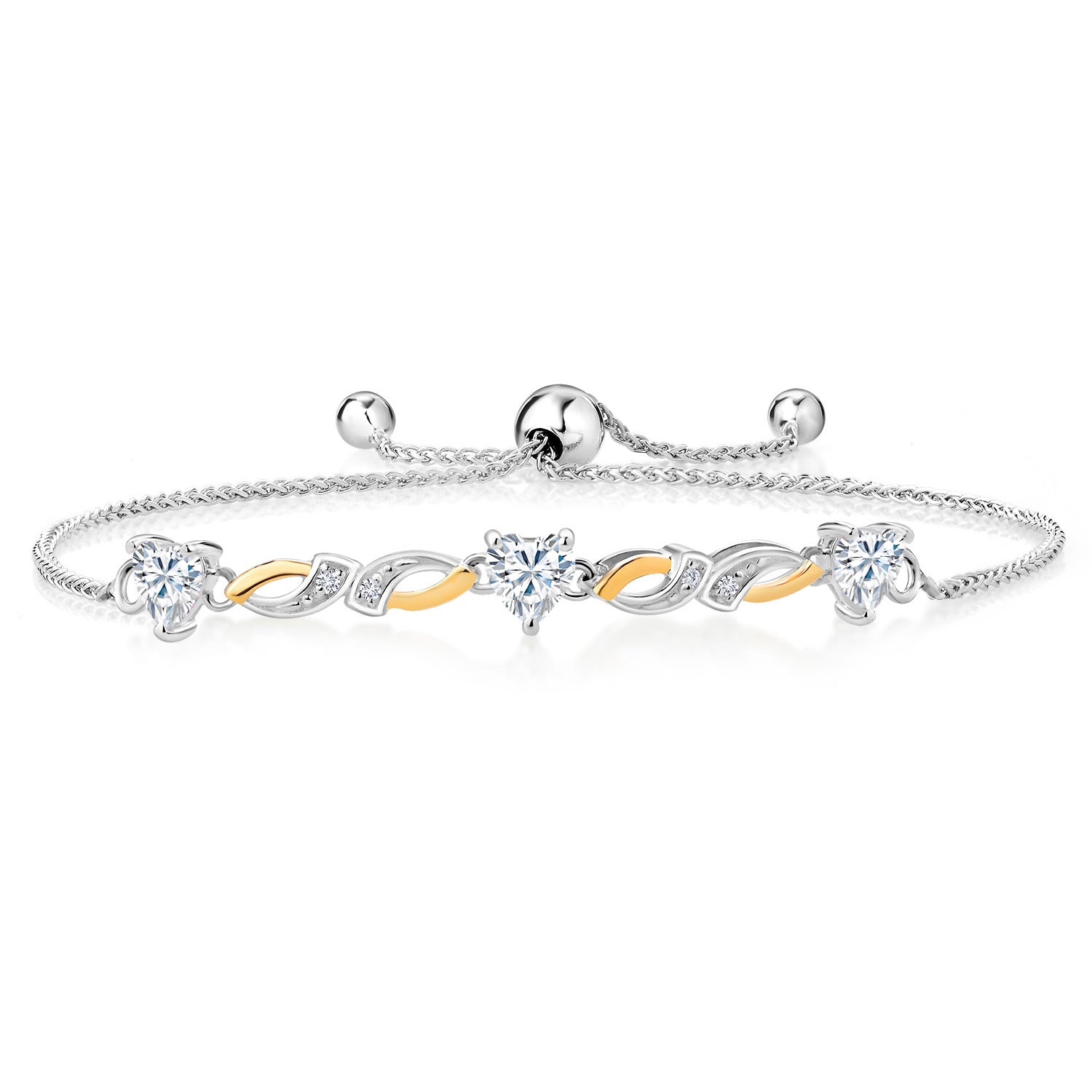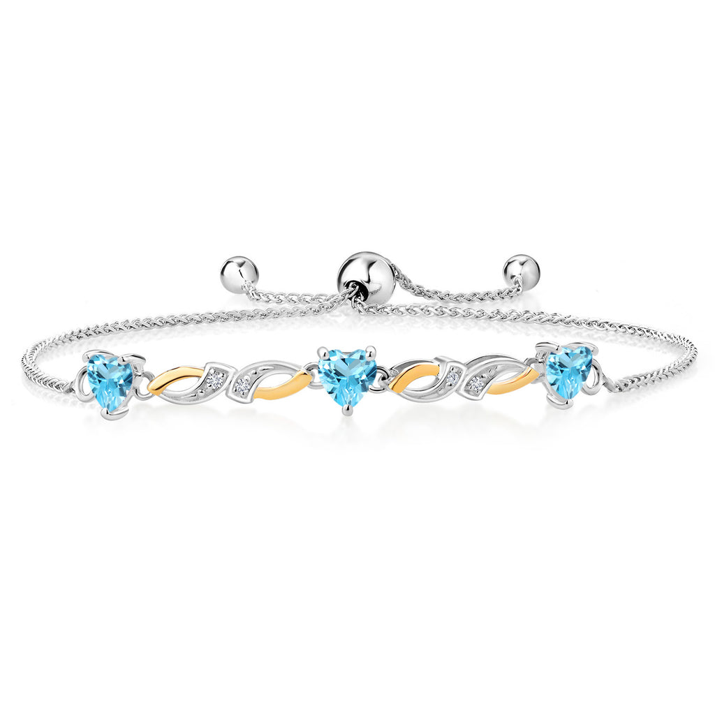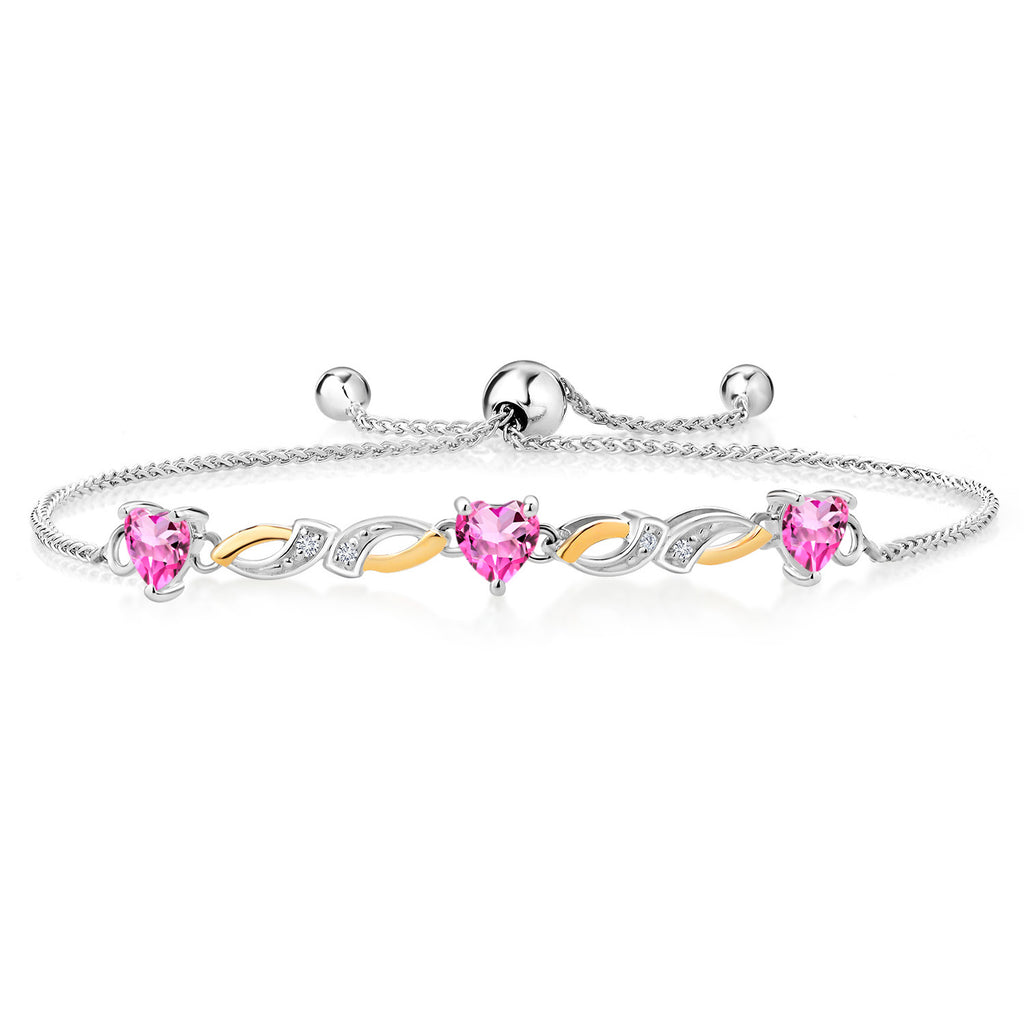 5MM Heart Shape Gemstone Birthstone and White Lab Grown Diamond Tennis Bracelet For Women | 925 Silver and 10K Yellow Gold | Adjustable Bolo Bracelet For Women