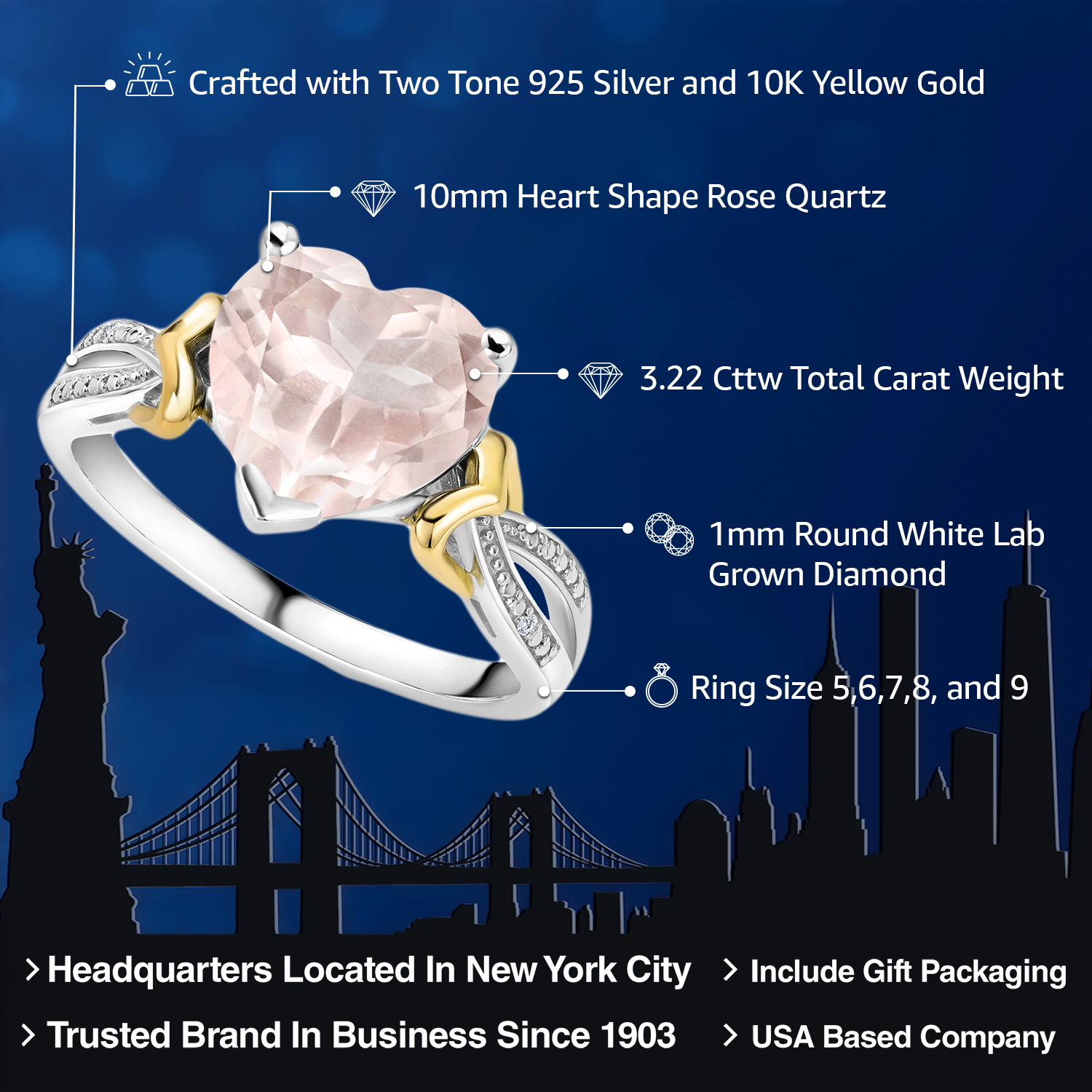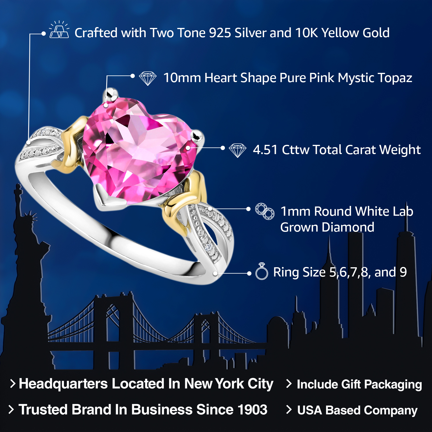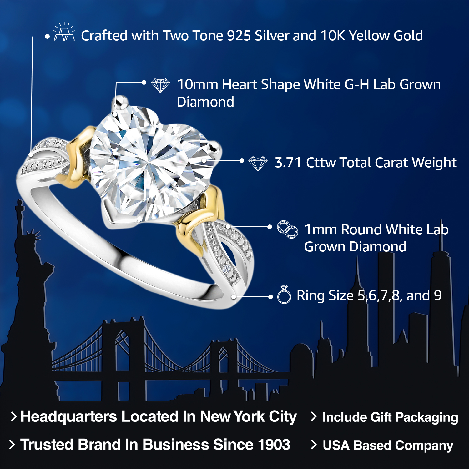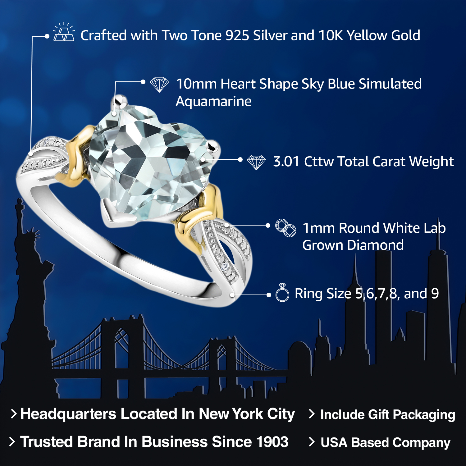 SOPHISTICATED TWO-TONE DESIGN: Combining 925 sterling silver with 10K yellow gold, this ring offers a modern twist on classic engagement jewelry. The sterling silver provides a bright, contemporary feel, while the warm tones of the yellow gold add a traditional elegance, enhancing the overall aesthetic and appeal of the design.