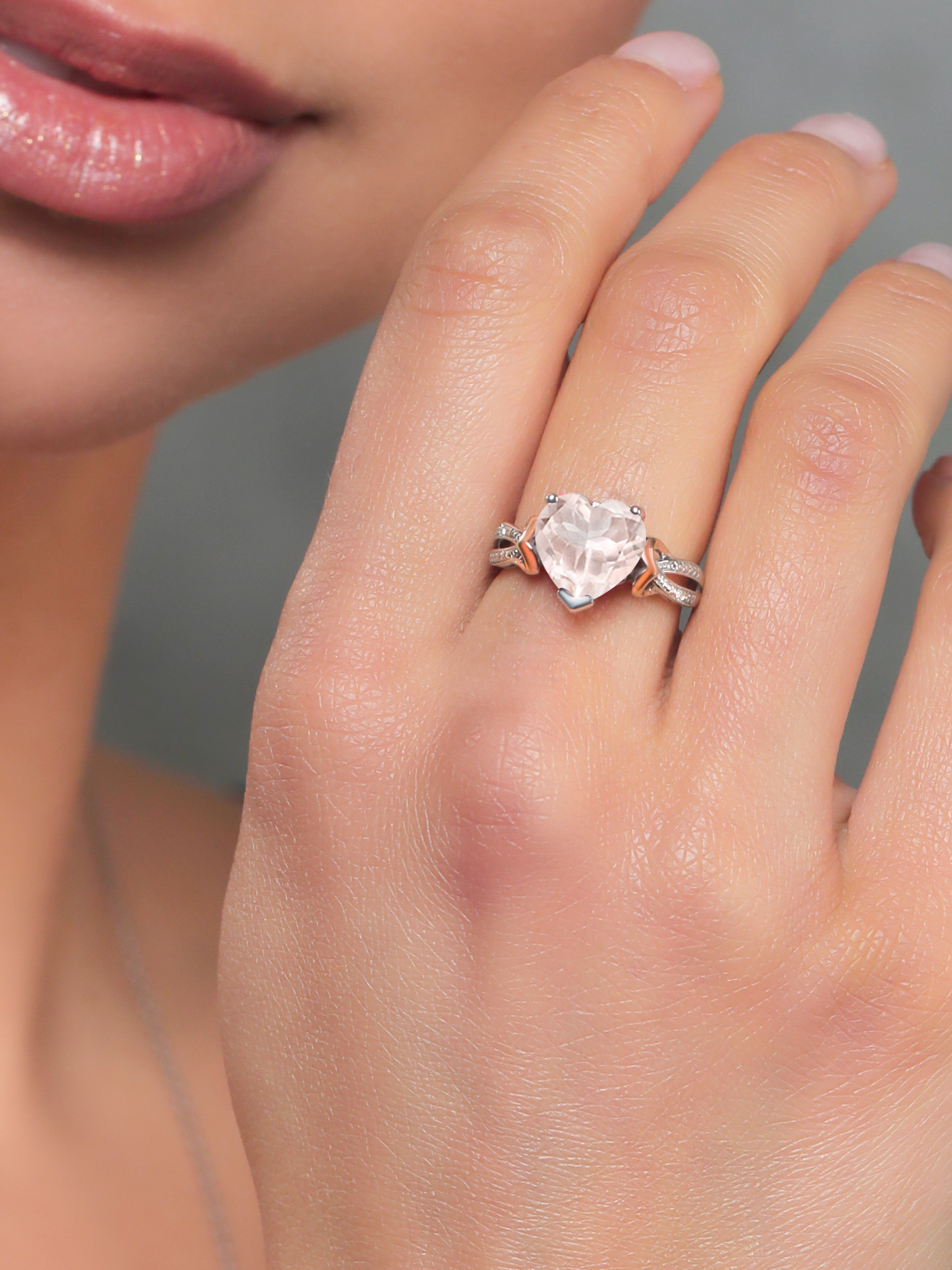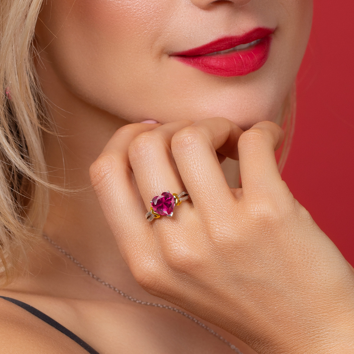 SPARKLING DIAMOND ACCENTS: The ring is adorned with delicate diamonds that complement the central heart-shaped gemstone. These diamonds add an extra layer of sophistication and sparkle, making the ring stand out as a luxurious and cherished piece.
