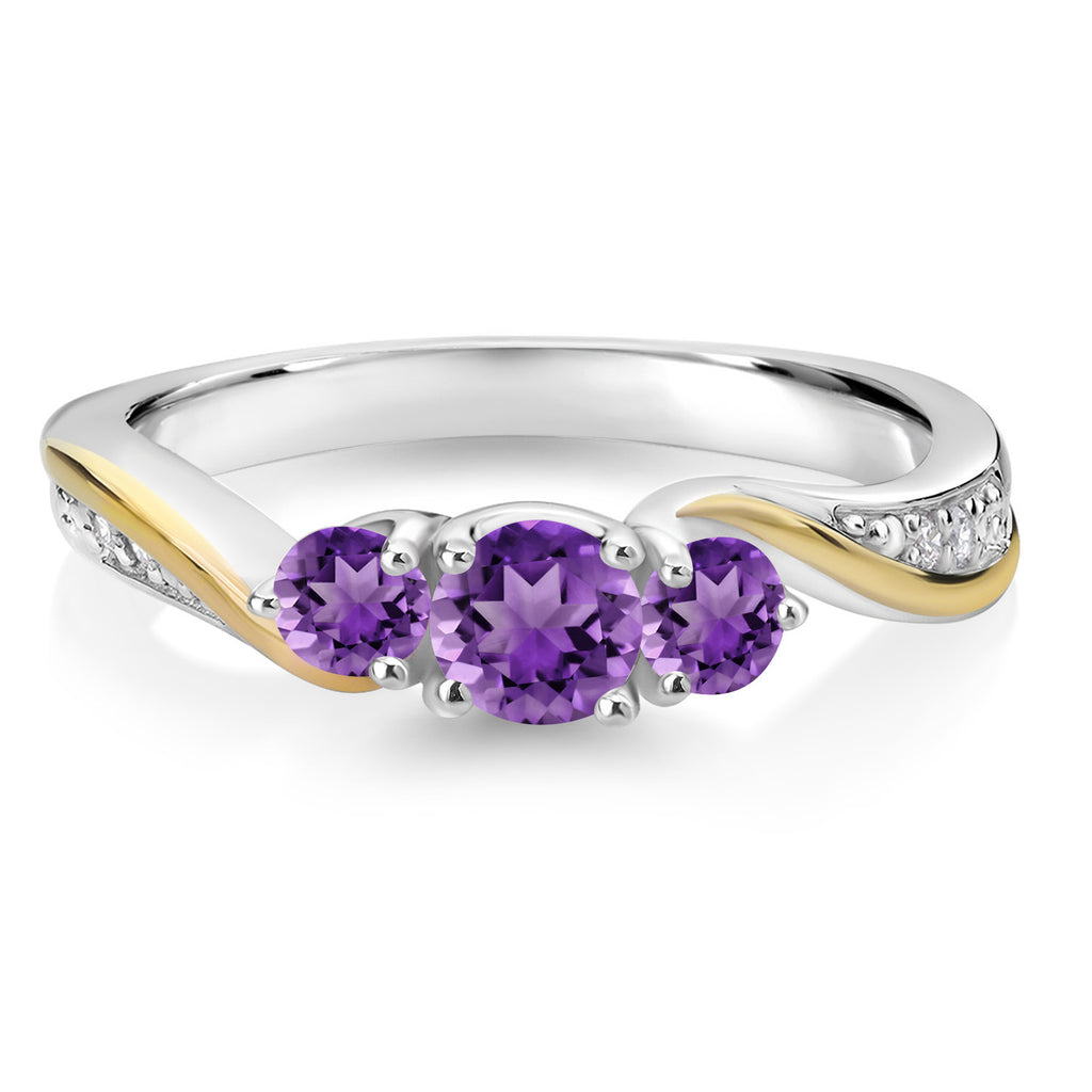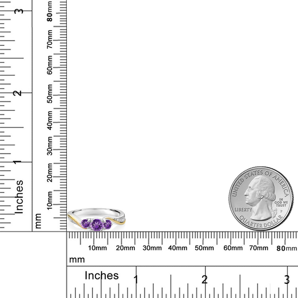 925 Sterling Silver and 10K Yellow Gold Purple Amethyst and White Lab Grown Diamond 3 Stone Engagement Ring For Women (0.48 Cttw, Gemstone February Birthstone)