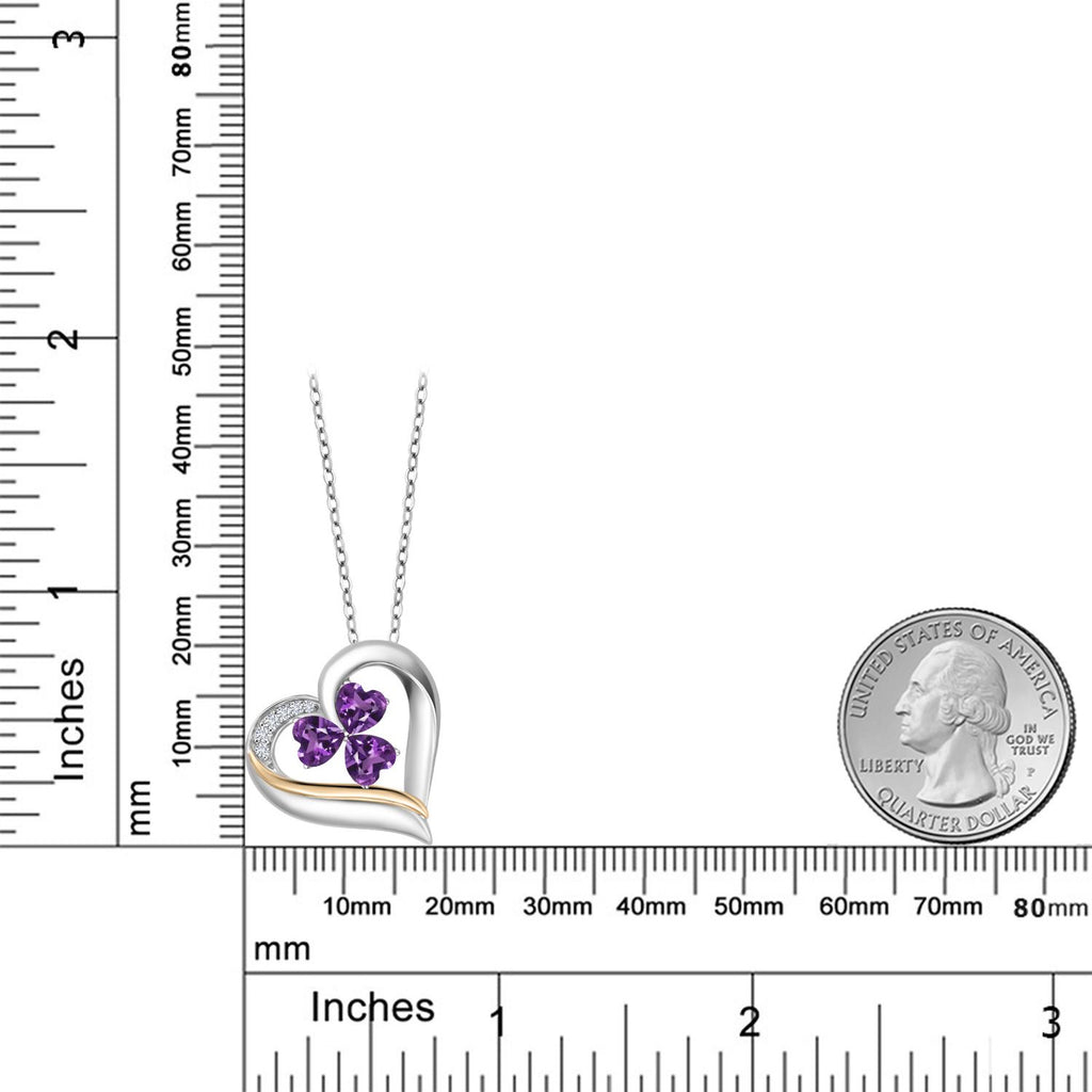 925 Sterling Silver and 10k Yellow Gold Purple Amethyst and White Lab Grown Diamond 3-Stone Pendant Necklace For Women (1.30 Cttw, Gemstone Birthstone, Heart Shape 5MM, 18 Inch Chain)