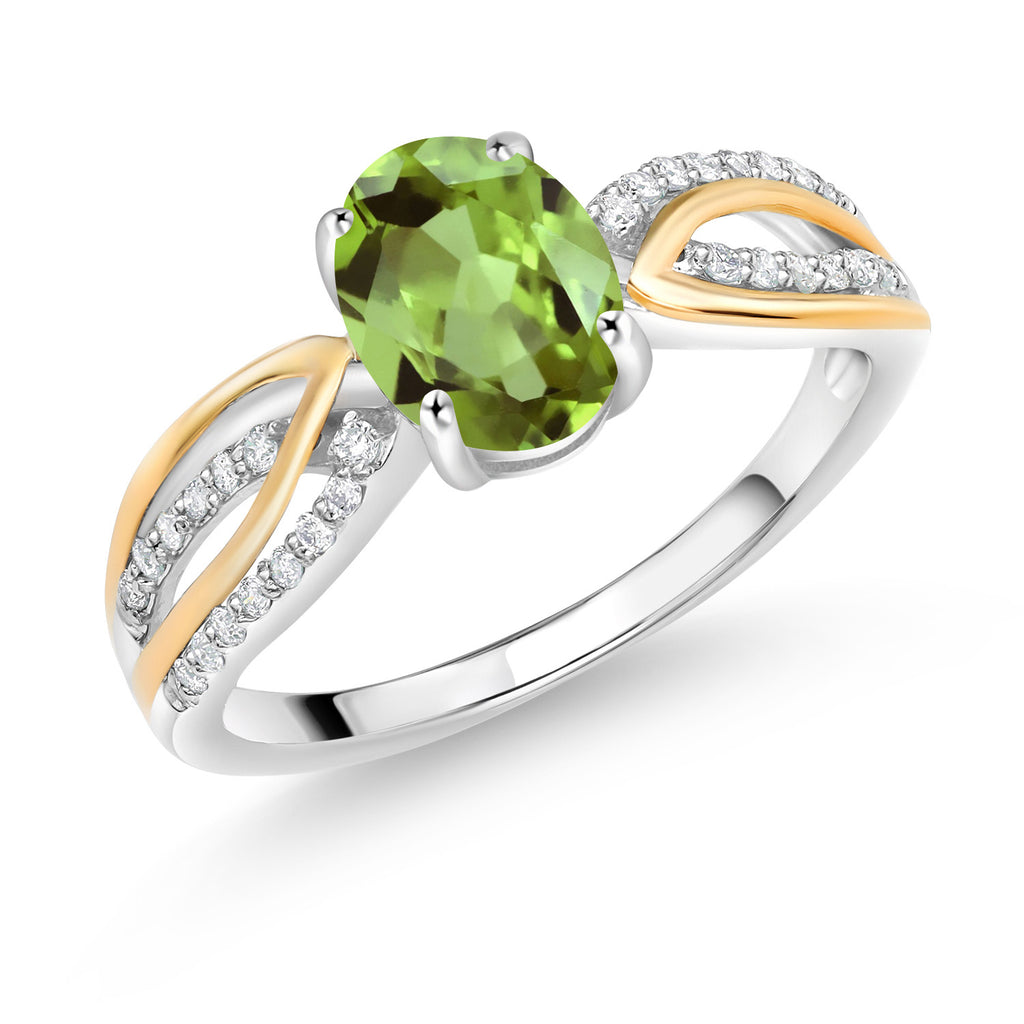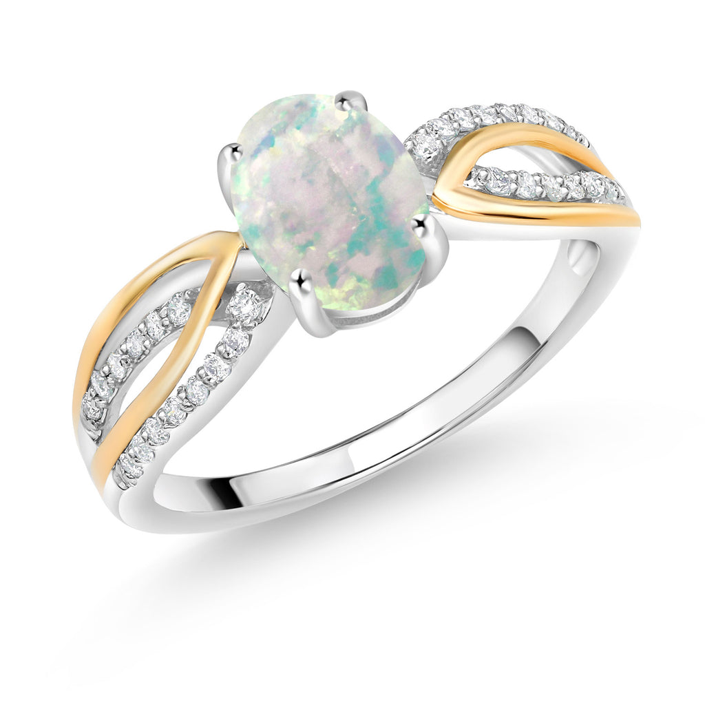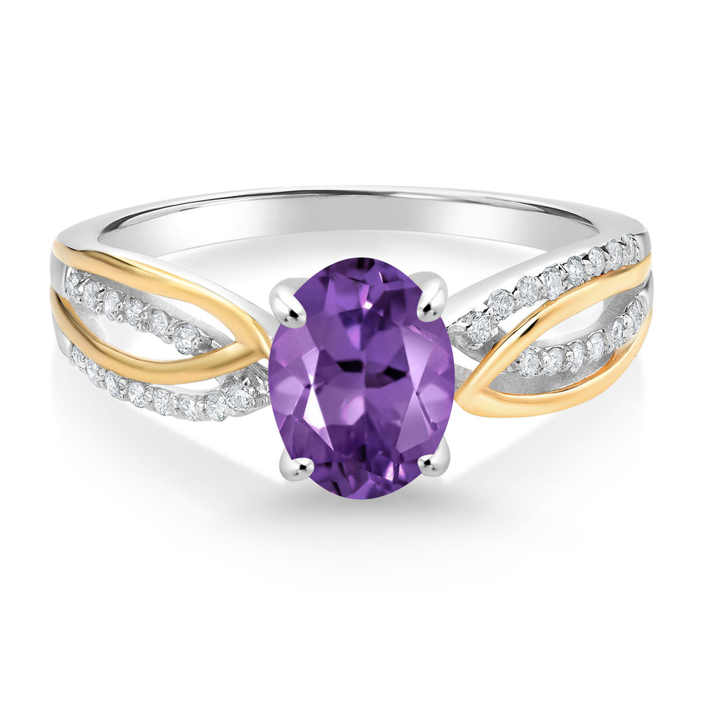 8X6MM Oval Gemstone Birthstone and White Lab Grown Diamond Engagement Ring For Women | 925 Sterling Silver and 10K Yellow Gold | Available In Size 5, 6, 7, 8, 9
