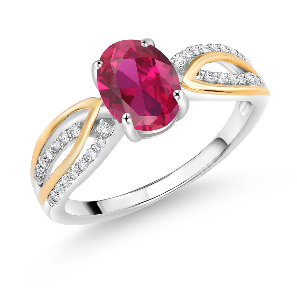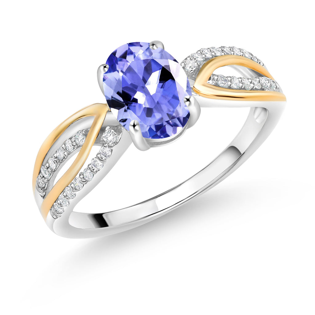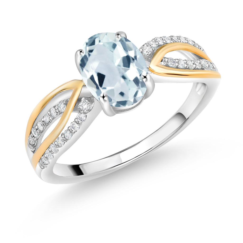 8X6MM Oval Gemstone Birthstone and White Lab Grown Diamond Engagement Ring For Women | 925 Sterling Silver and 10K Yellow Gold | Available In Size 5, 6, 7, 8, 9