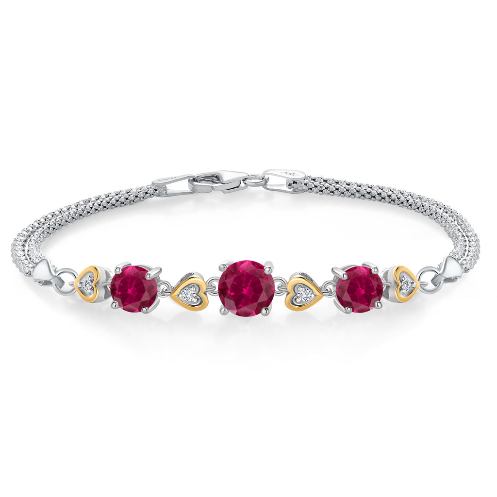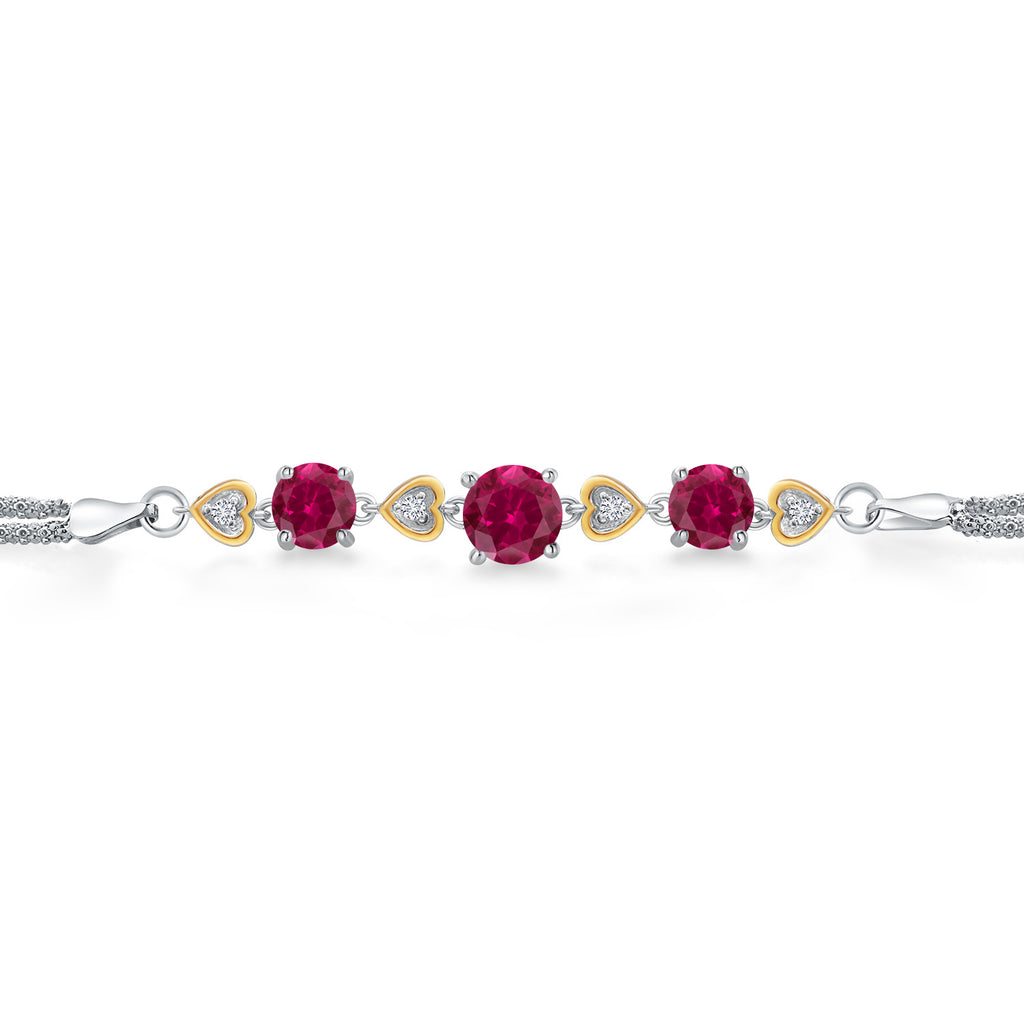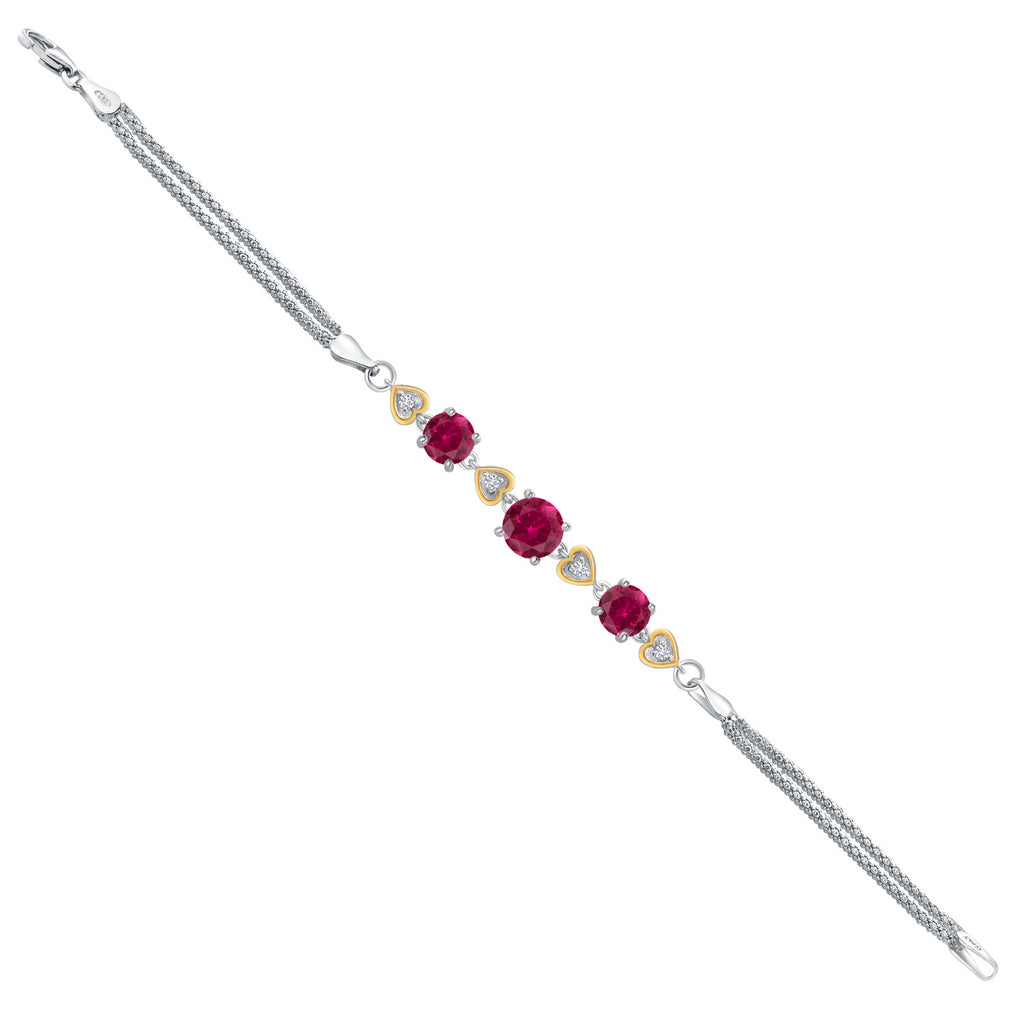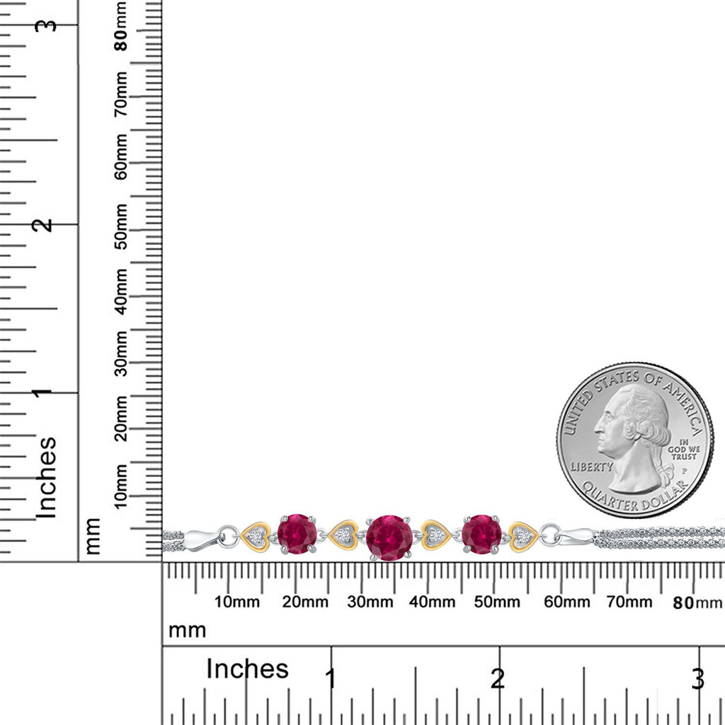 925 Sterling Silver and 10k Yellow Gold Red Created Ruby and White Lab Grown Diamond Bracelet For Women (3.63 Cttw, Round 7MM and 6MM, 6.5/7/7.5 Inch, Made In Italy)